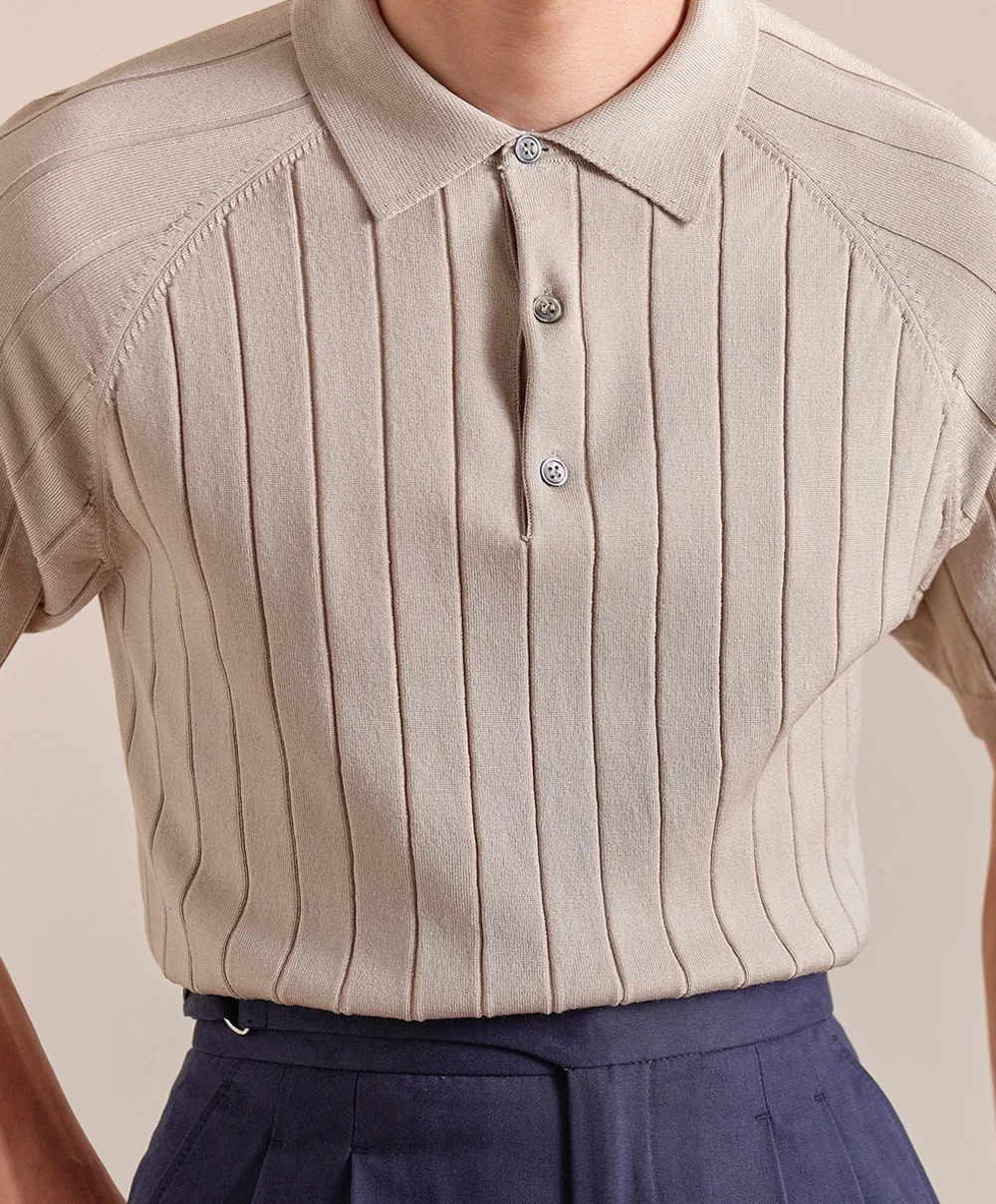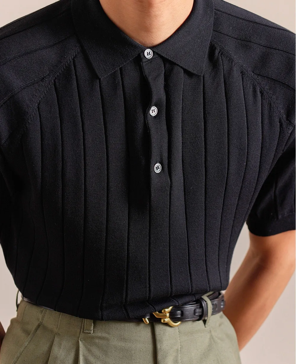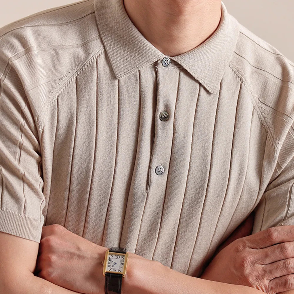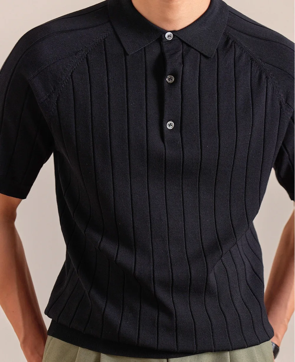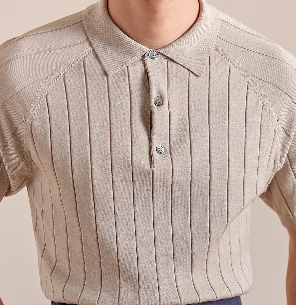 HEARUJOY - Italian Style Lapel Knitted Lightweight Lyocell Blend Polo Shirt For Men's Summer Business Casual T-shirt Polo Camisa Hombre