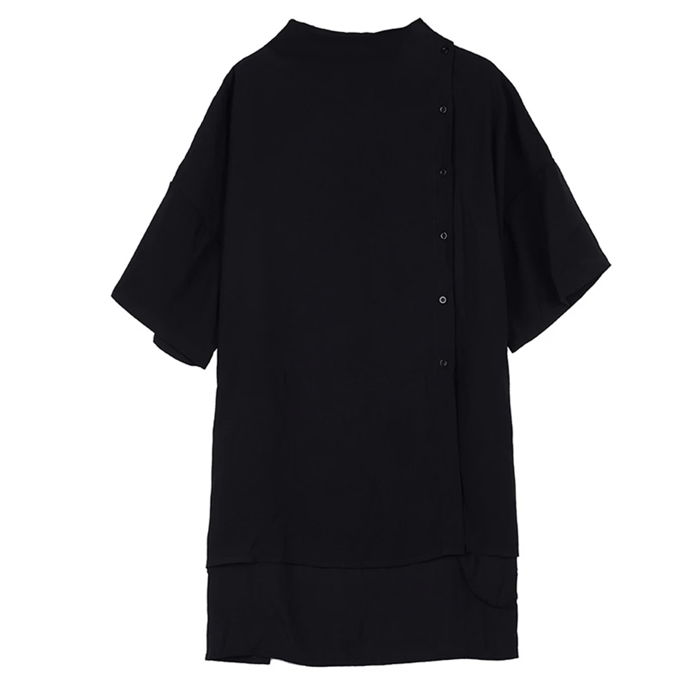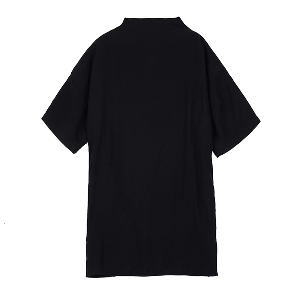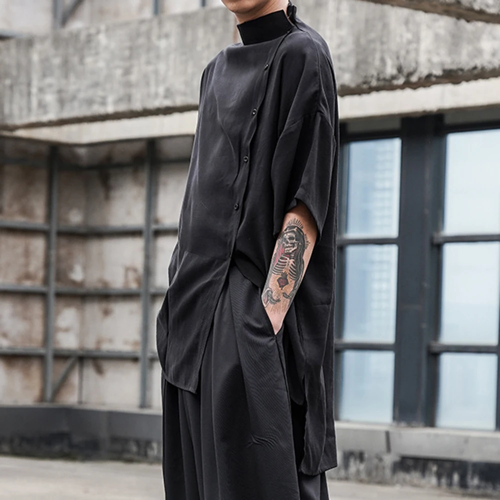 Hearujoy Japanese Mens Dark Tops Model New Loose Small Stand Collar T Shirt Summer Niche Tide Irregular Half Sleeve Shirts
