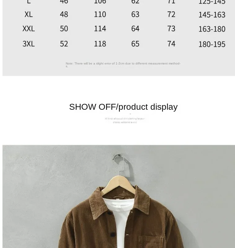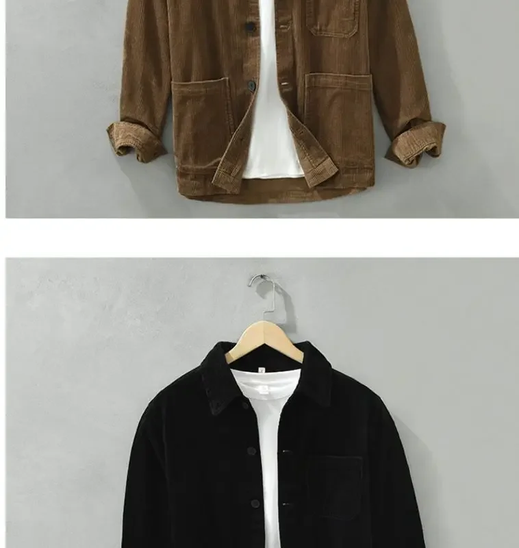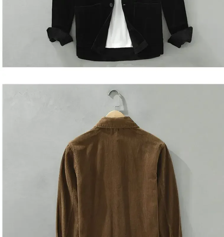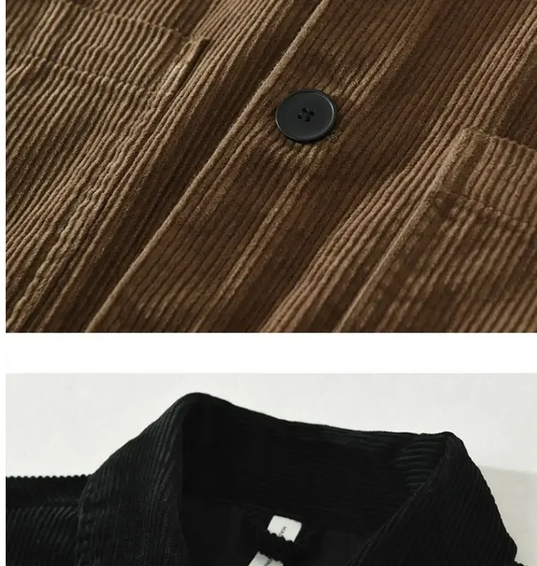 HEARUJOY - Japanese Retro Corduroy Long-sleeved Shirt Men Autumn Jacket American Workwear Casual Cardigan