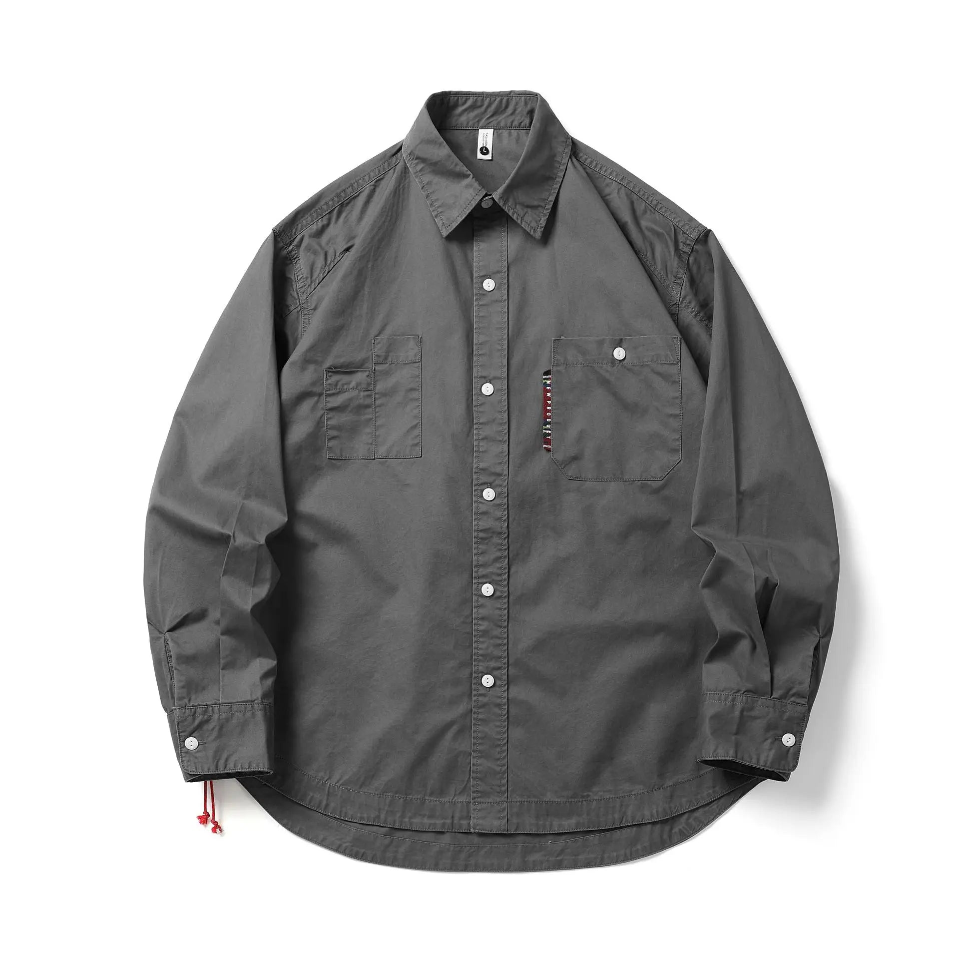 HEARUJOY - Japanese Retro Washed Cotton Work Shirt Men's Stylish Oversized Lapel Long Sleeve Top Versatile Casual Wear for Spring/Autumn
