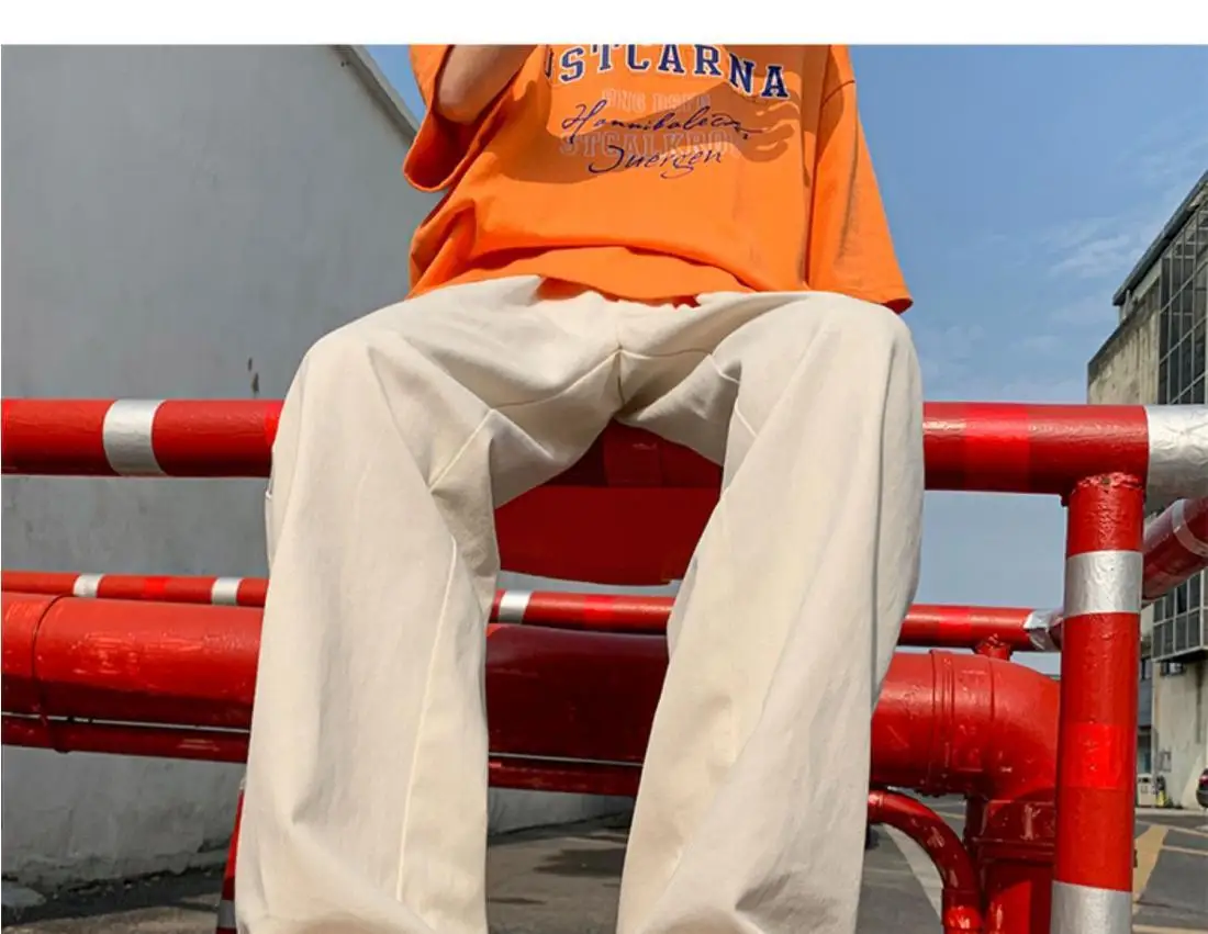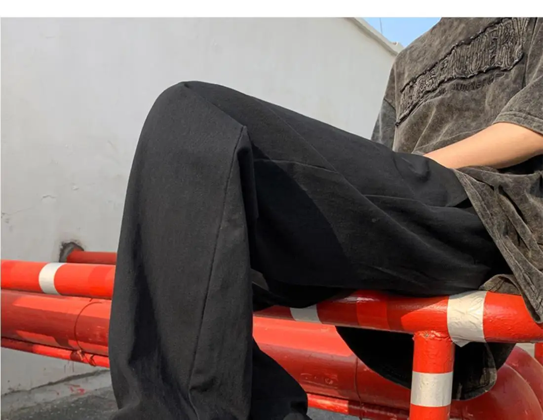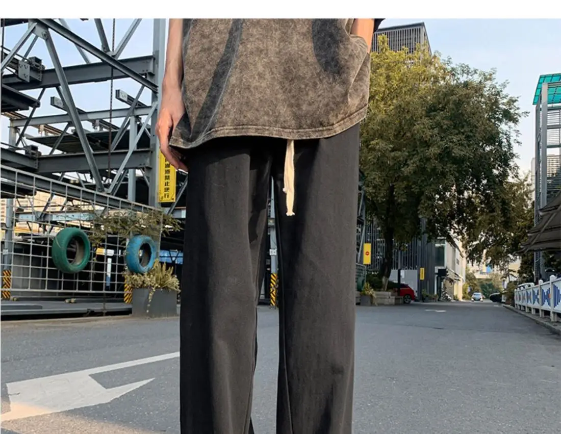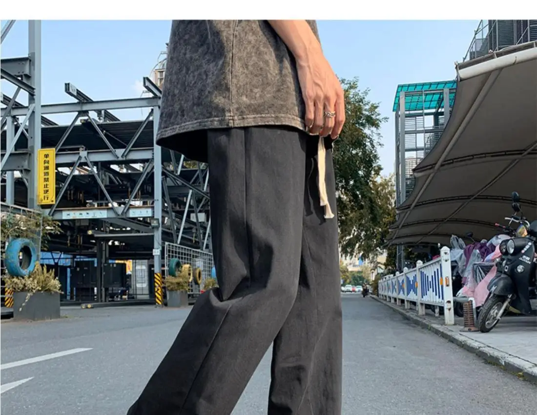 Hearujoy Japanese Style Pants Men's Summer Work Bottoms Loose and Thin Cotton Linen Straight Leg Trousers High Street Casual Cargo Pants