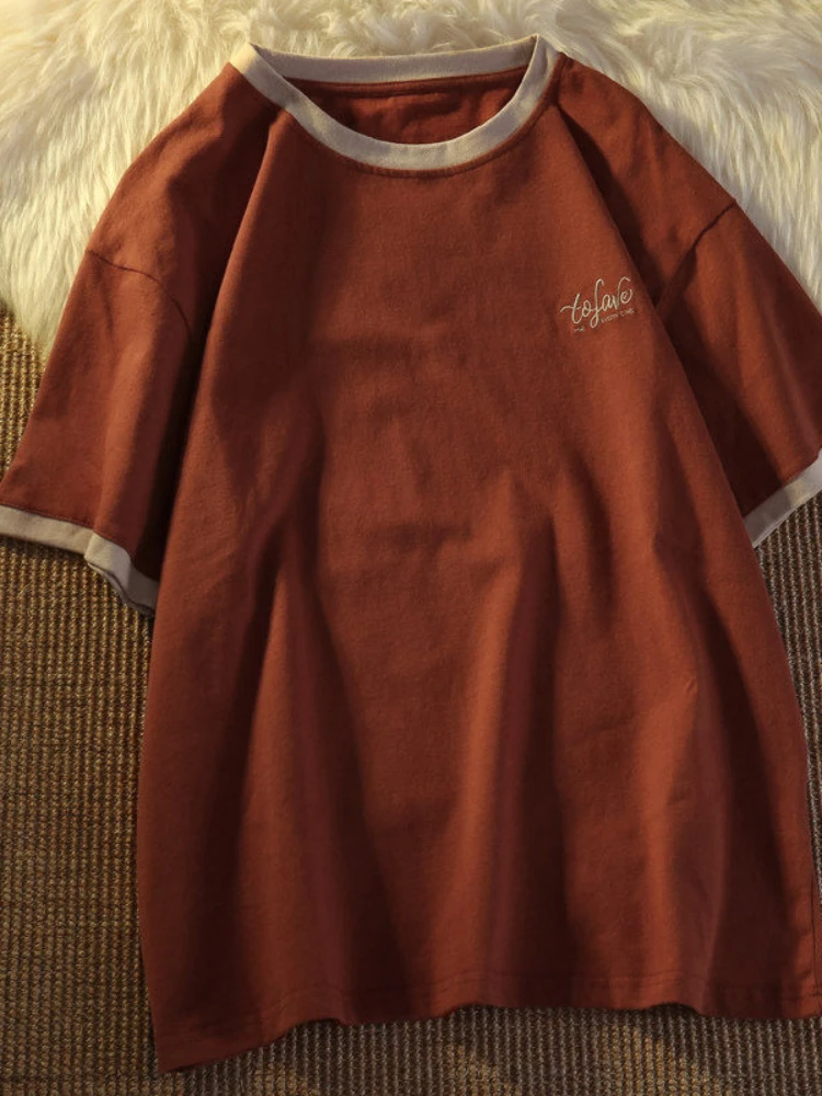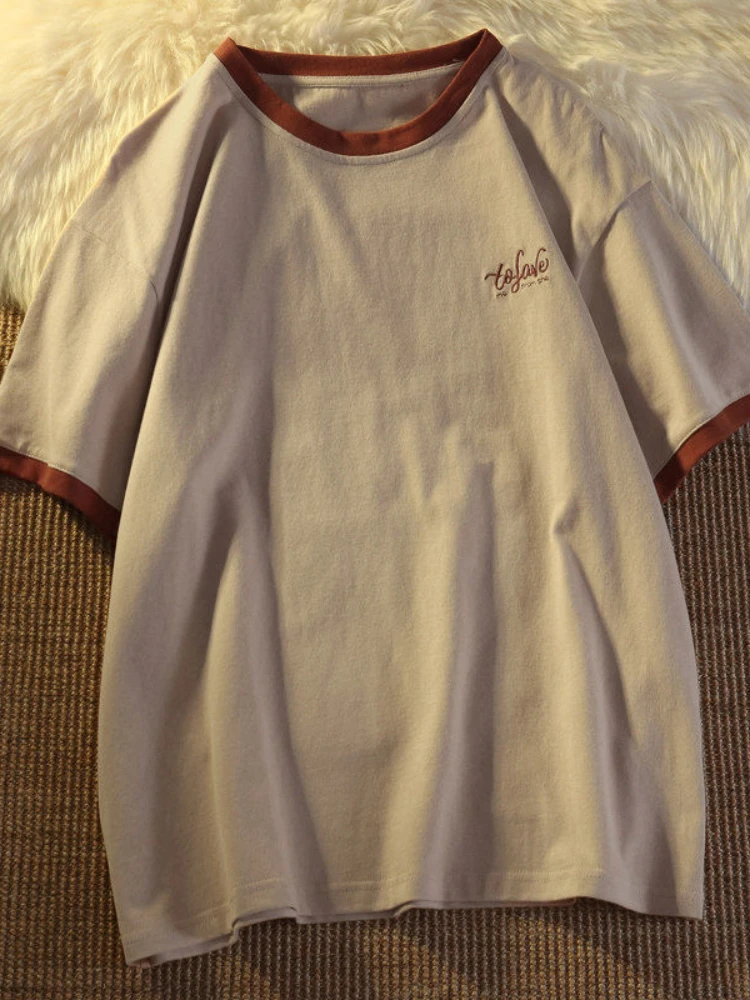 Hearujoy Japanese Vintage Shirt Fake Two-piece Short-sleeved T-shirt Women's Summer Loose Korean Trend Harajuku Bf Letter Embroidery Top