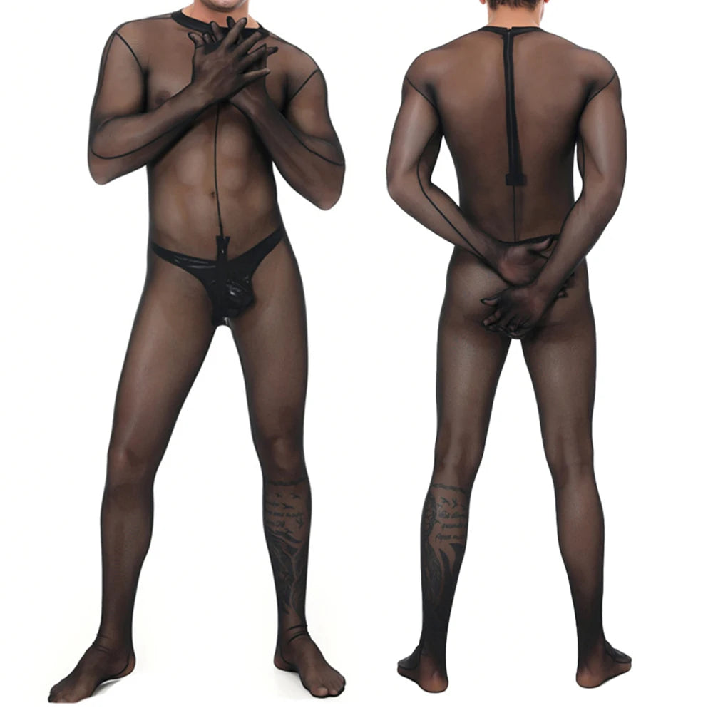 Hearujoy Jumpsuits Black Romper Wrestling Suit Mesh Smooth Tights Body Shaping Bodysuit Men Sexy See-Through Men One-piece Rompers Suit