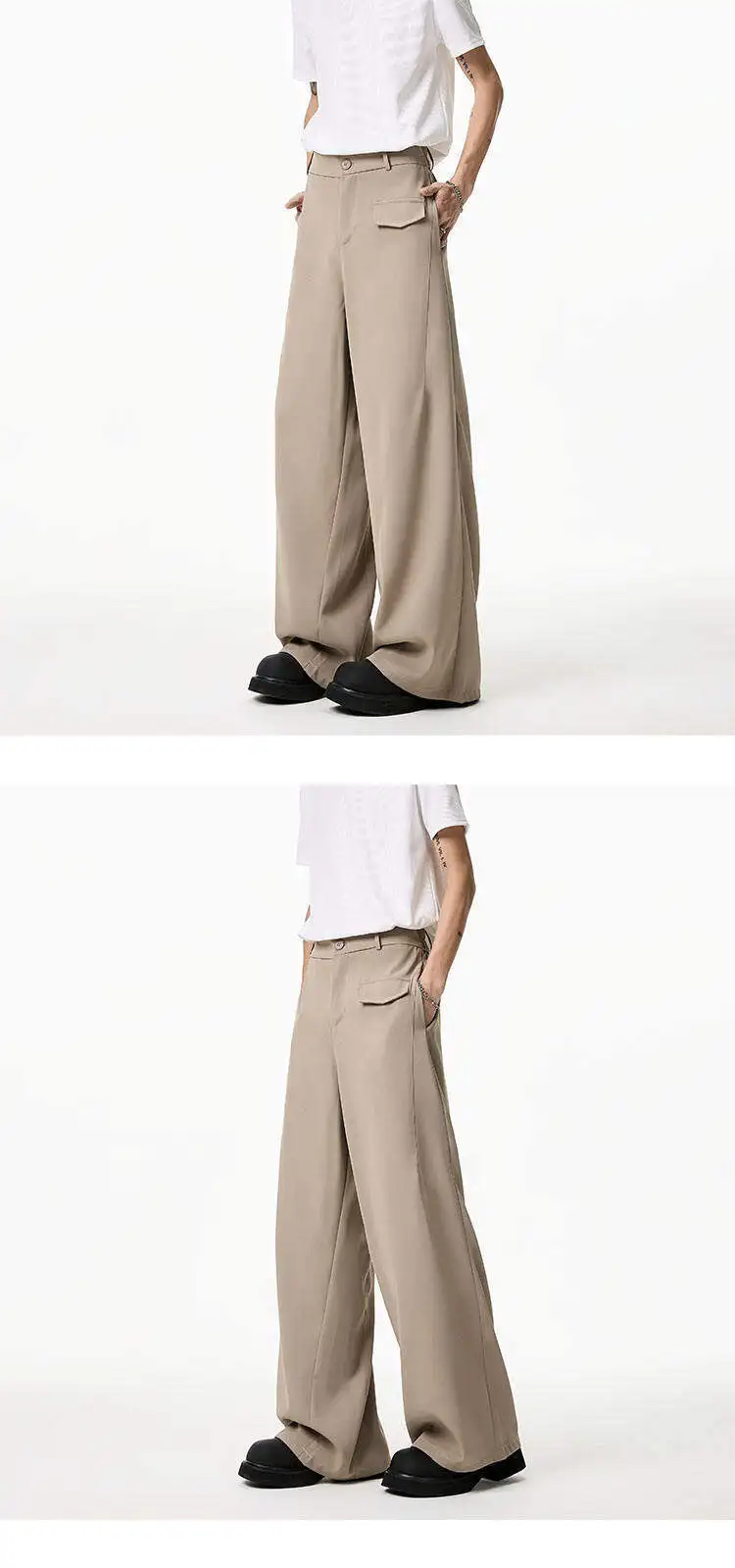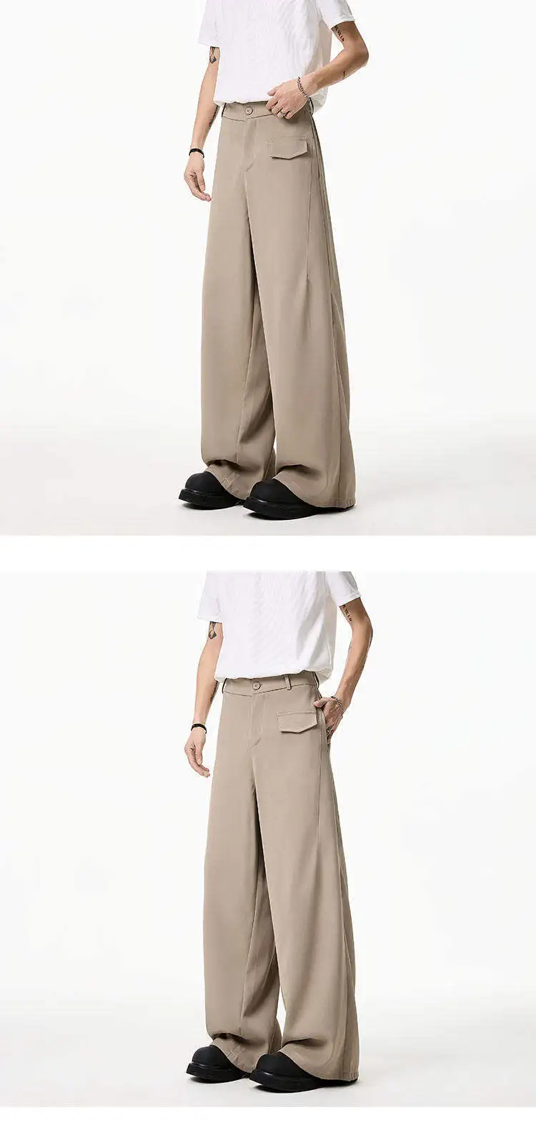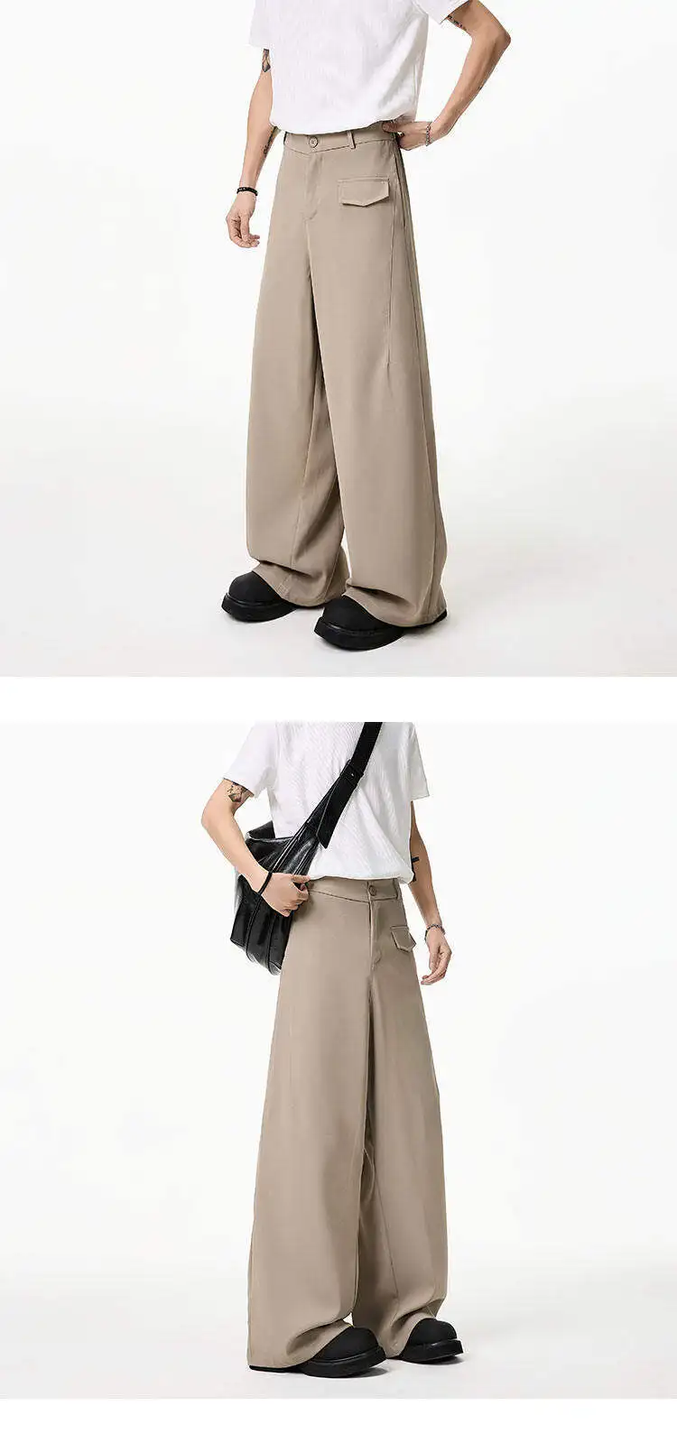 HEARUJOY - Khaki Black Suit Pants Men Fashion Society Mens Dress Pants Korean Loose Wide Leg Pants Mens Office Formal Trousers M-3XL