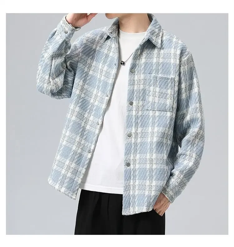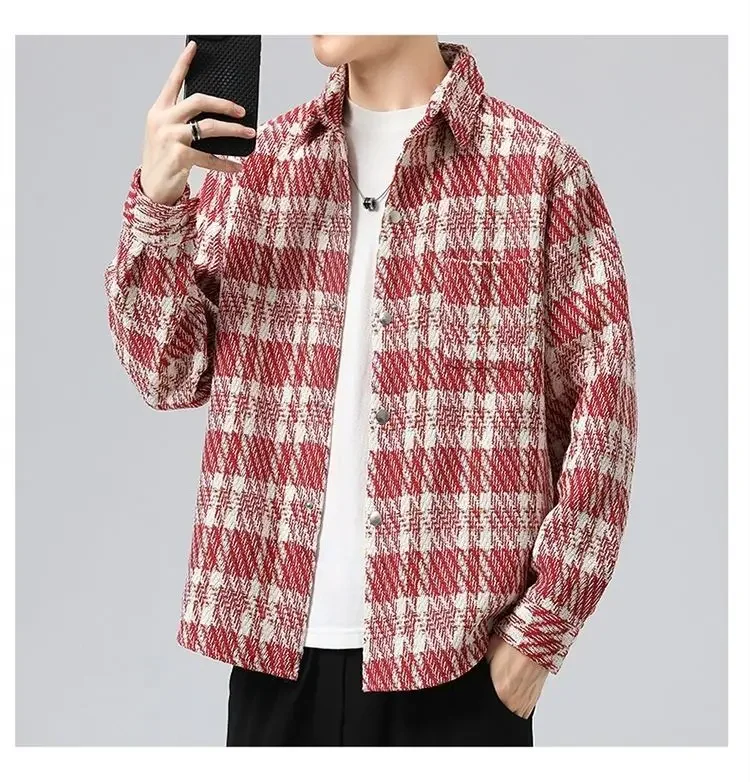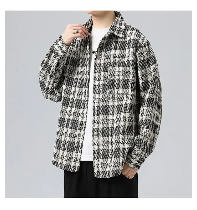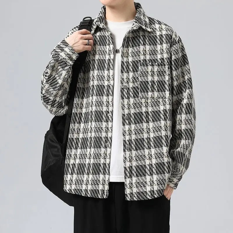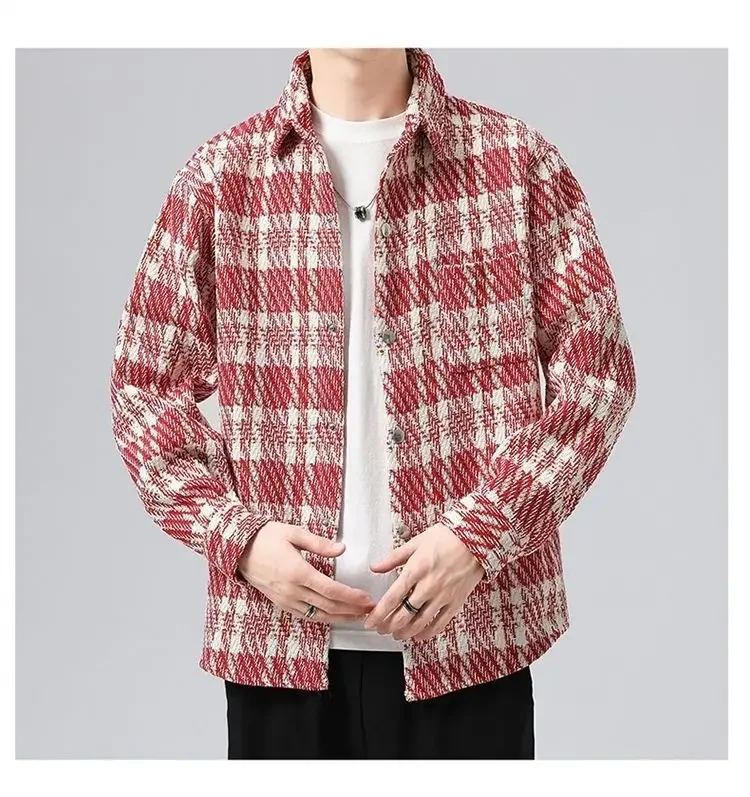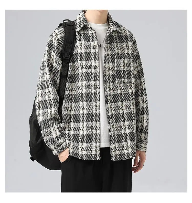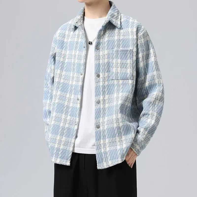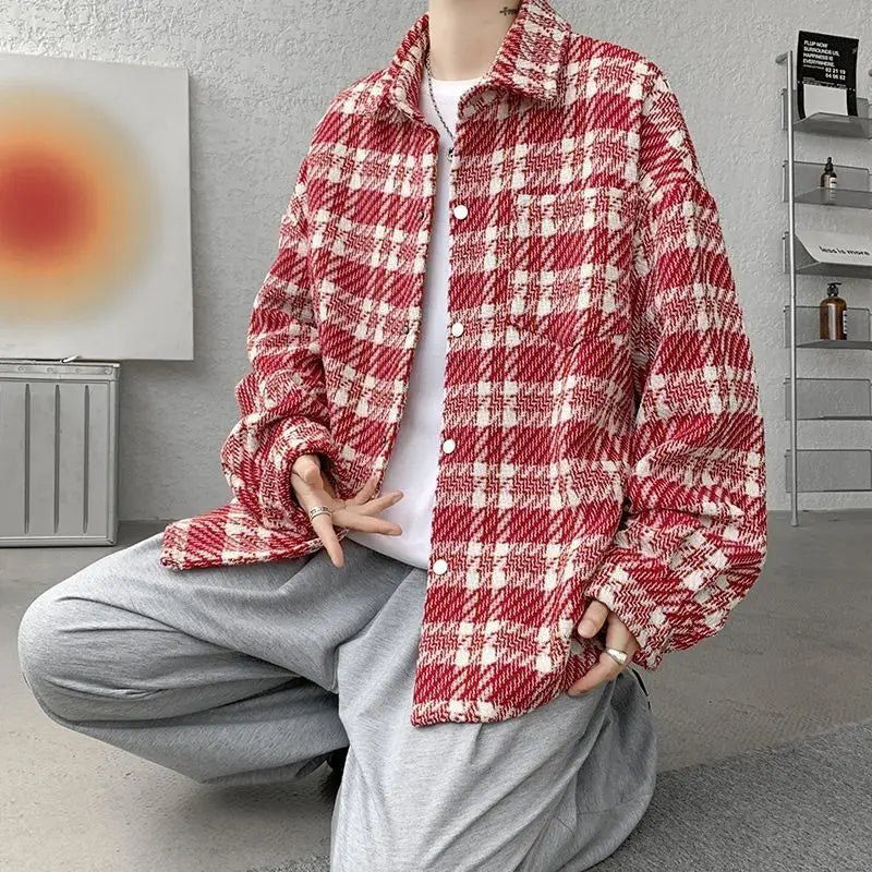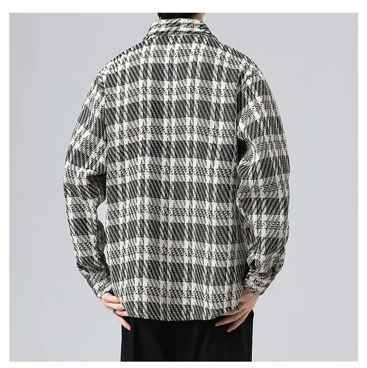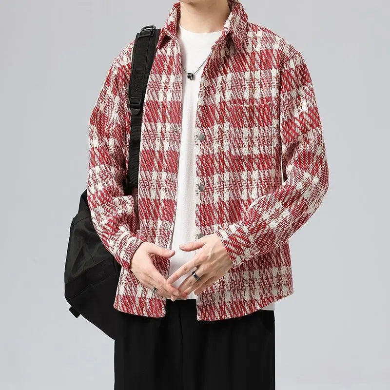 HEARUJOY - Knitted Men's Trendy Brand Loose Casual Cardigan Jacket Plaid Shirt