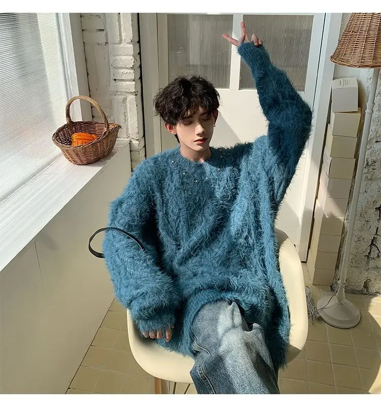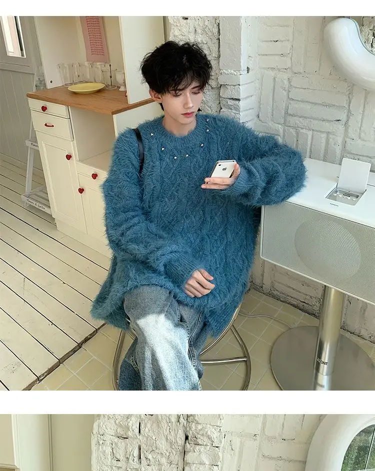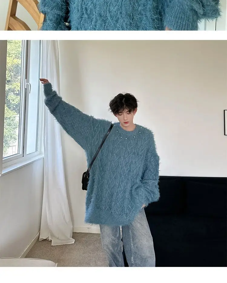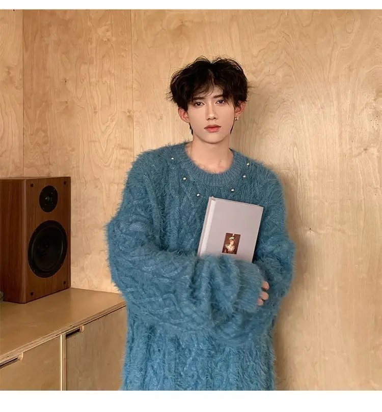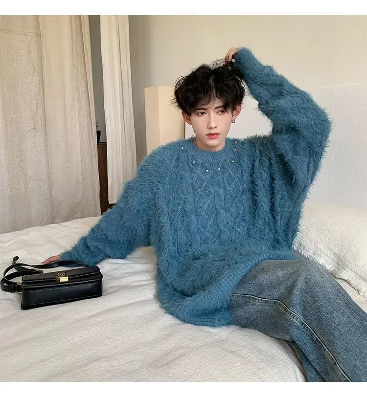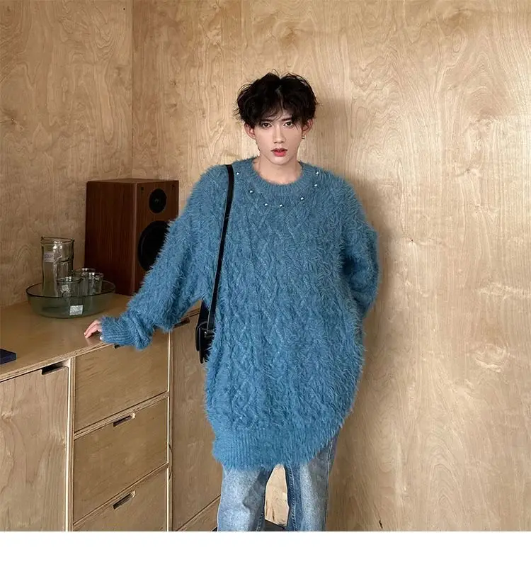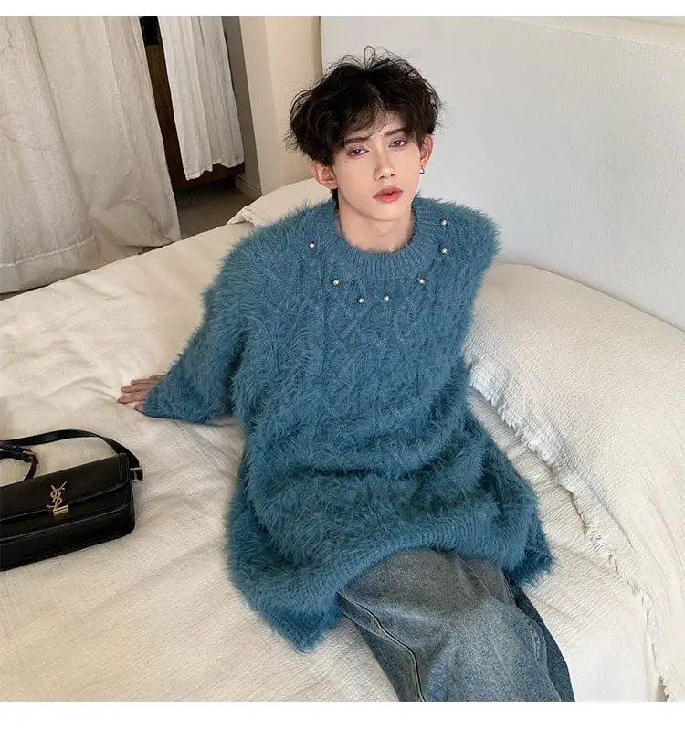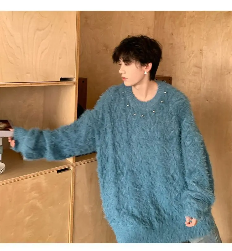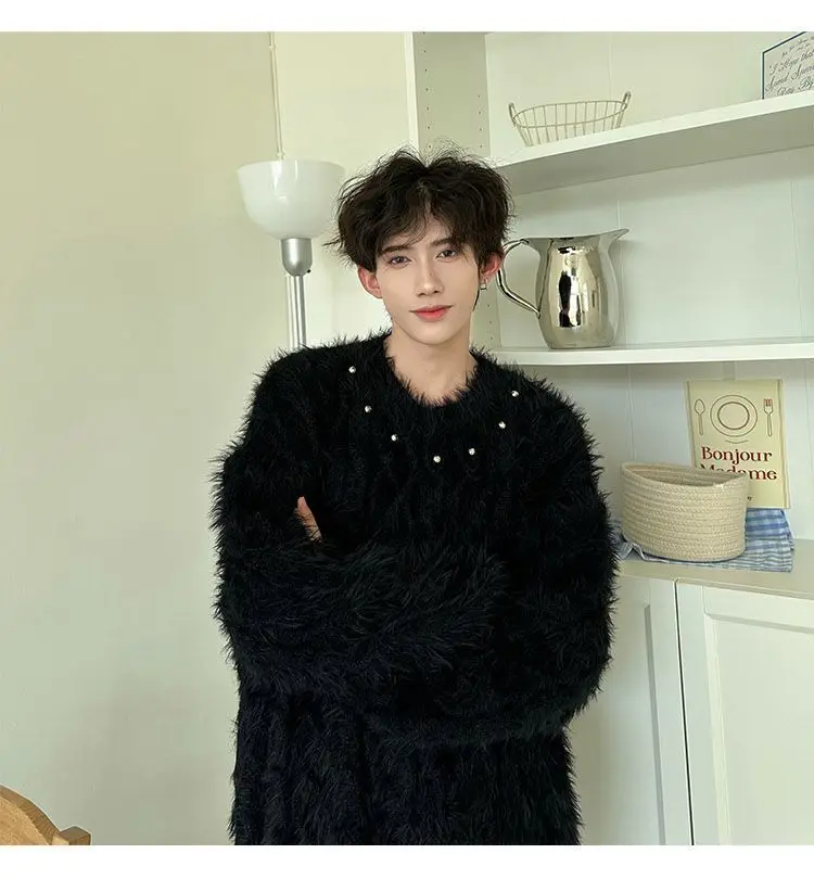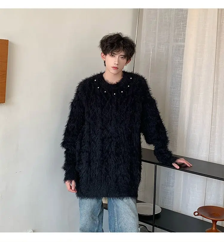 Hearujoy Korean Fashion Black Jumper Beaded Decoration Autumn and Winter Streetwear High Street Loose Pullover Men Gothic Harajuku Jumper