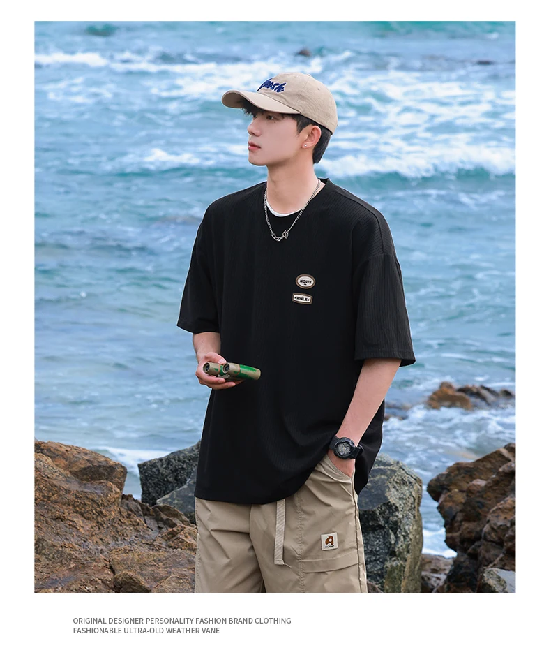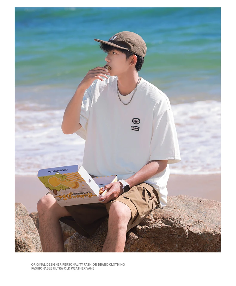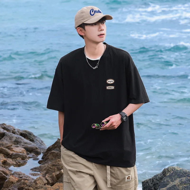 HEARUJOY - Korean Fashion Ins Trendy Brand Street Printed T Shirt Couple Summer Y2k Simple Hip-hop White Black Round Neck Sports Top Tees