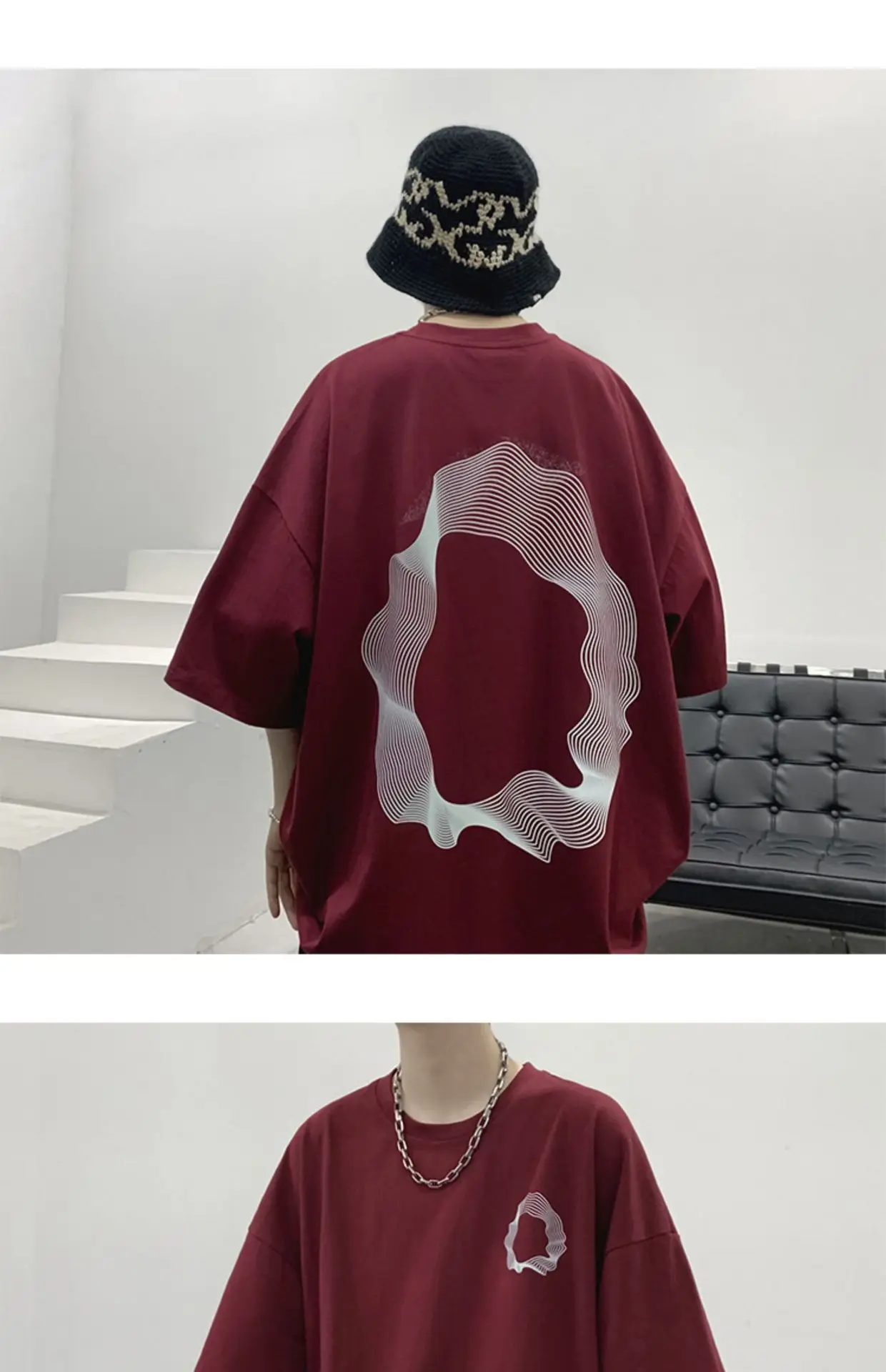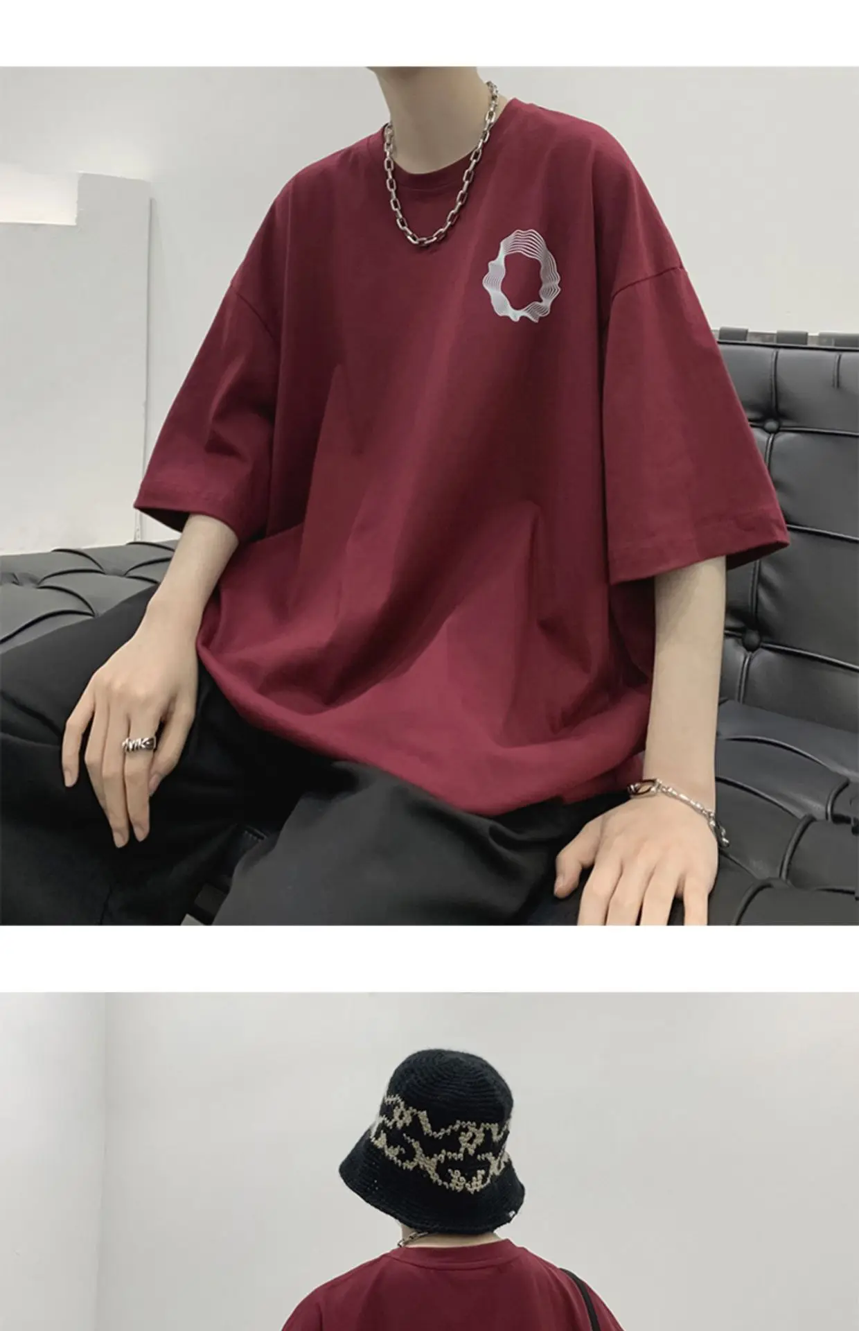 Hearujoy Korean Fashion Oversized T Shirt Summer Burgundy Retro Graphic T Shirts Short-sleeved Cotton Loose Streetwear Y2K Tops for Women