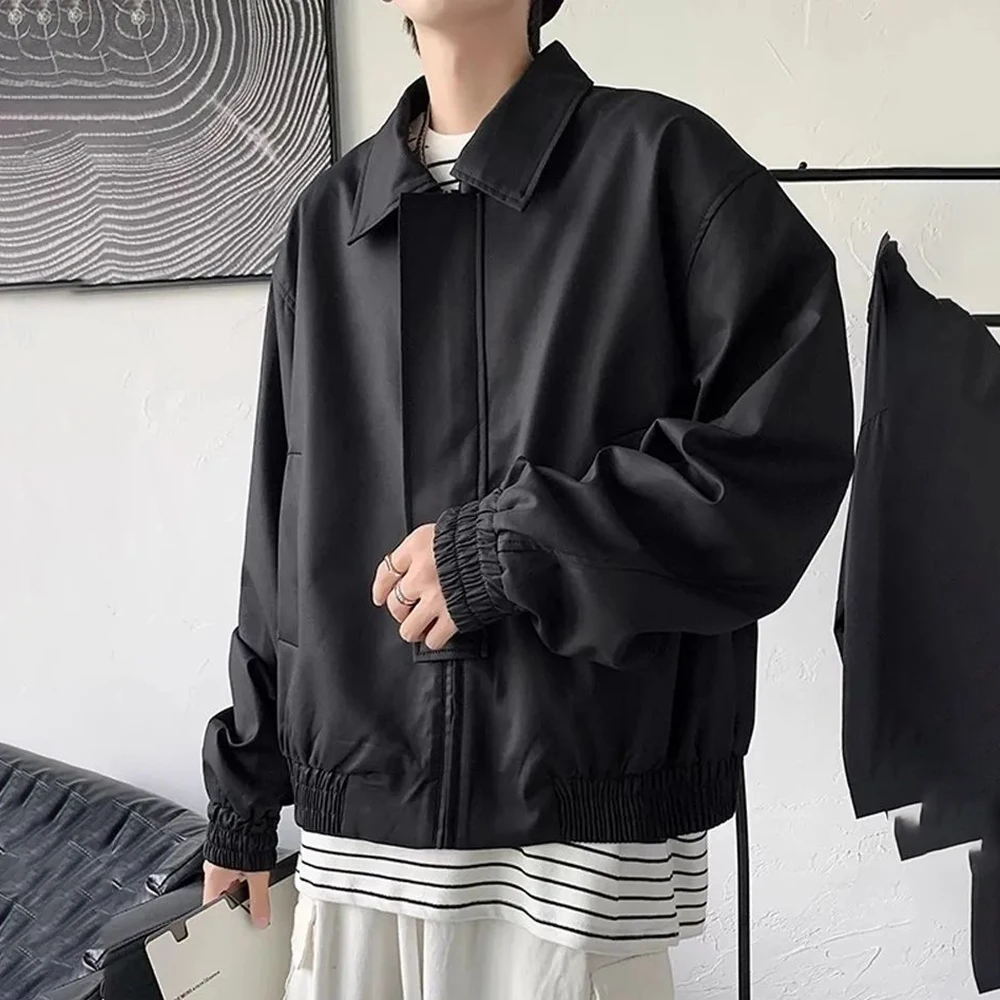 Hearujoy Korean Fashion Solid Color Y2k Jacket Men Autumn And Winter High-End Trend Short Shoulder Pad American High Street Pilot Jacket