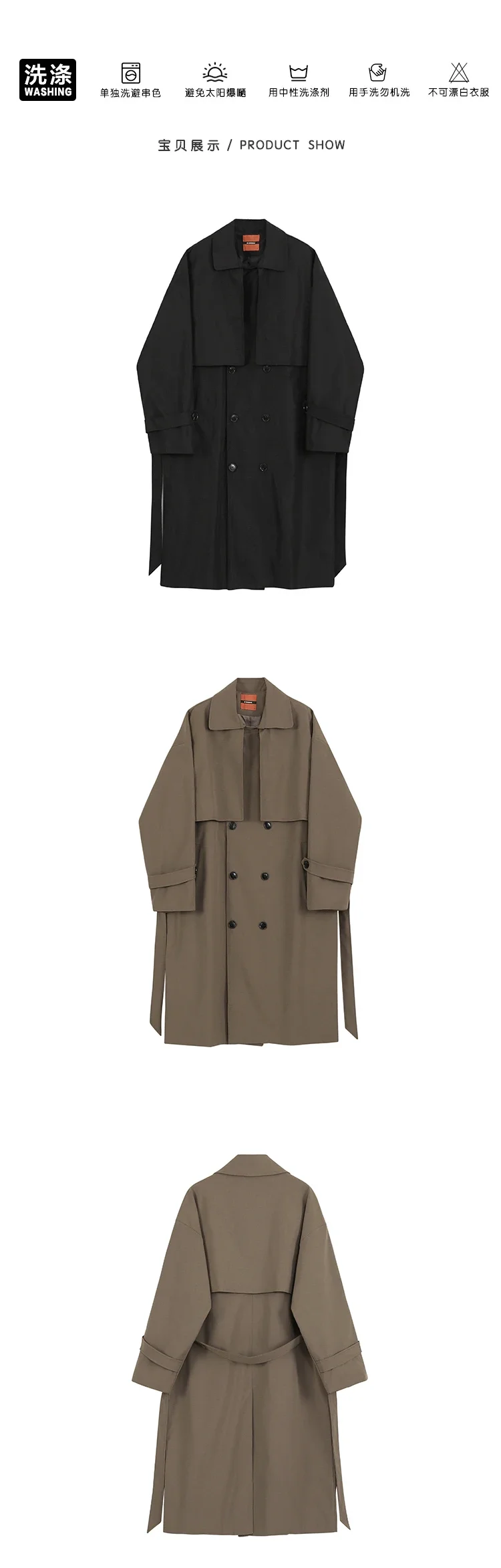 Hearujoy Korean Fashion Trench Coat Autumn New Streetwear Double-breasted Trench Coat Men's Long Loose Jacket Men's Clothing Mens Jacket