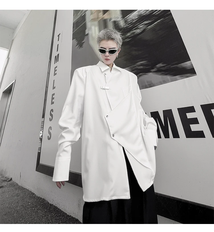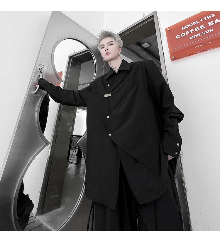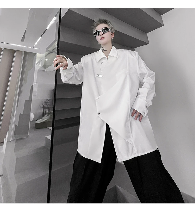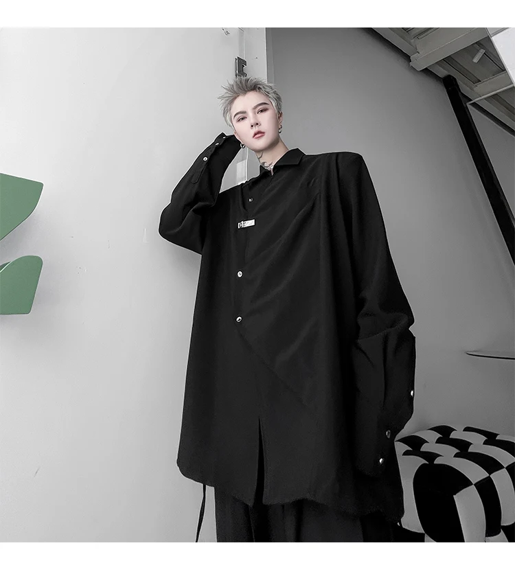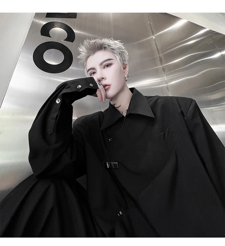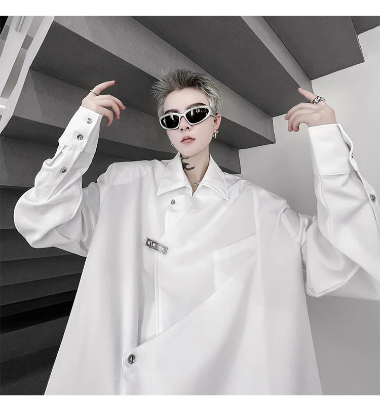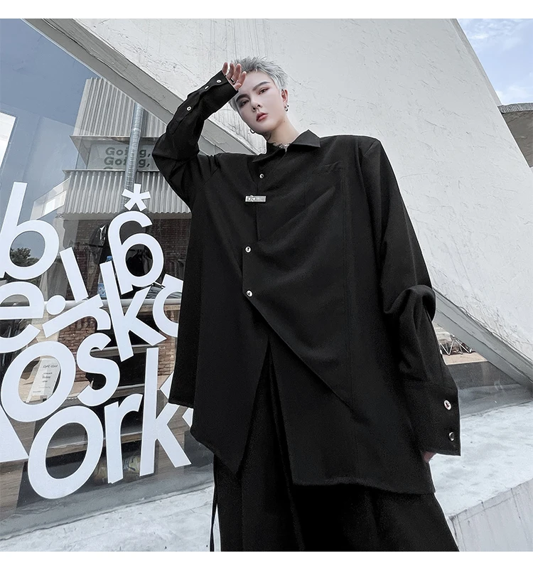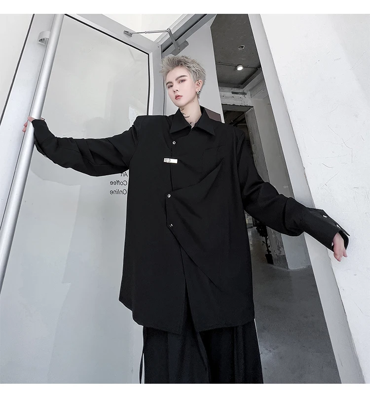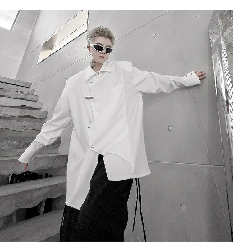Hearujoy Korean Spring Streetwear Men's Shirts Irregular Korean Chic Metal Shoulder Pad Long Sleeve Shirt Versatile Casual Top