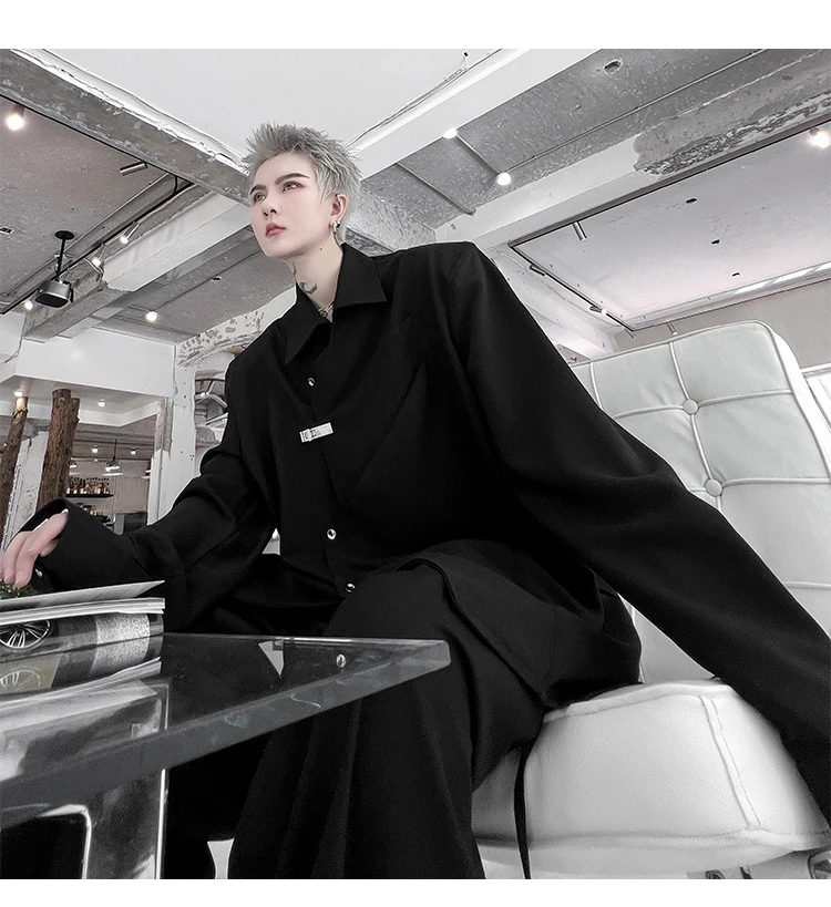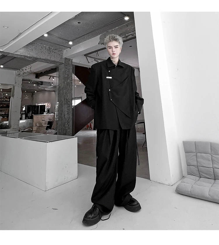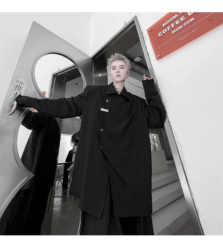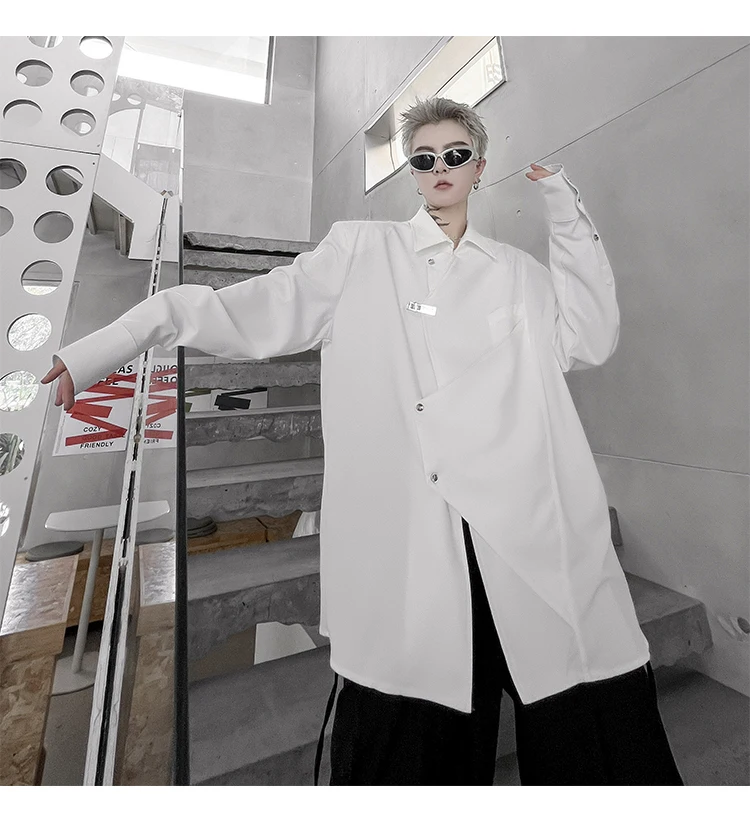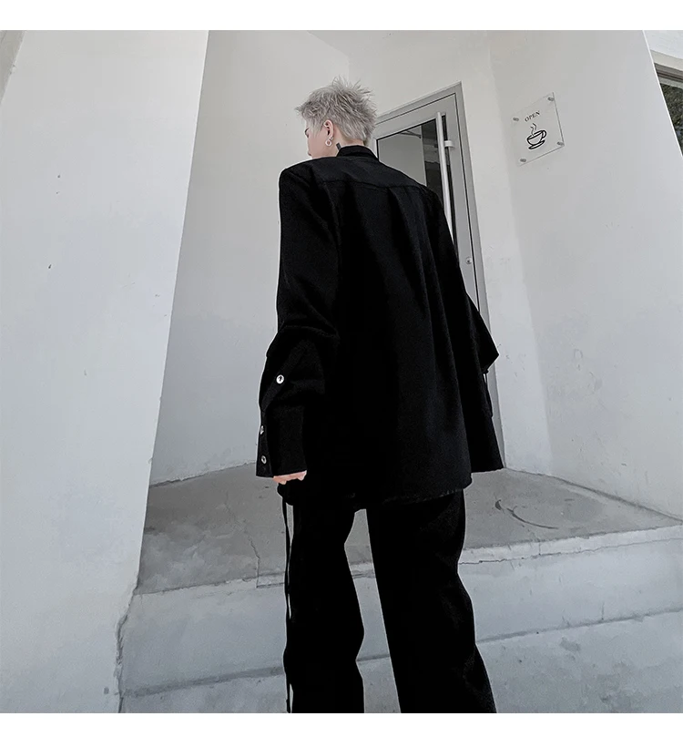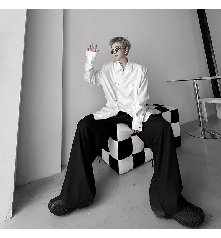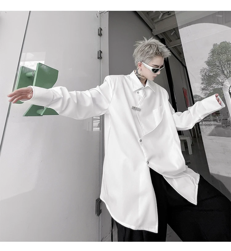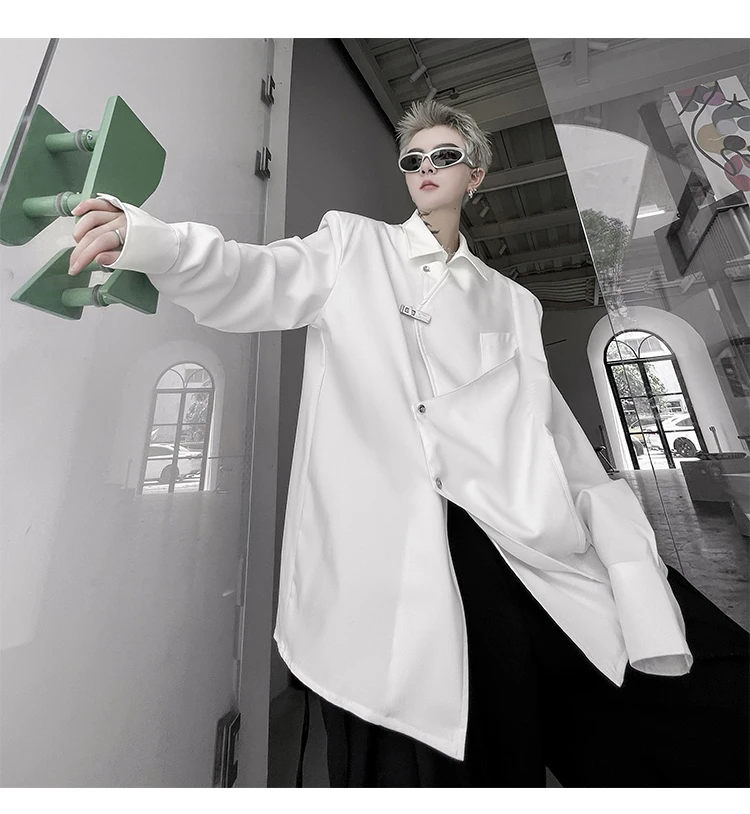 Hearujoy Korean Spring Streetwear Men's Shirts Irregular Korean Chic Metal Shoulder Pad Long Sleeve Shirt Versatile Casual Top