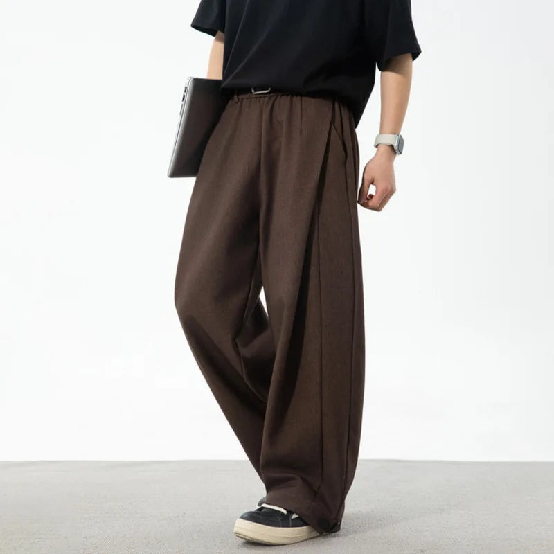 HEARUJOY - Korean Style Men's Suit Pants Solid Color Pleated Design Botton Drawstring Simple Elastic Waist Summer Male Trousers