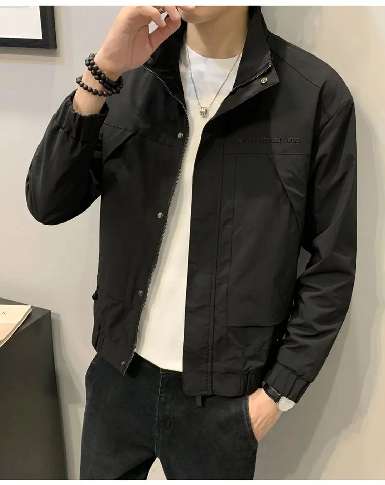 Hearujoy Korean Style Stand Up Collar Jacket for Men New Trendy Men's Jacket Cool Baseball Jacket Cool and Trendy Top