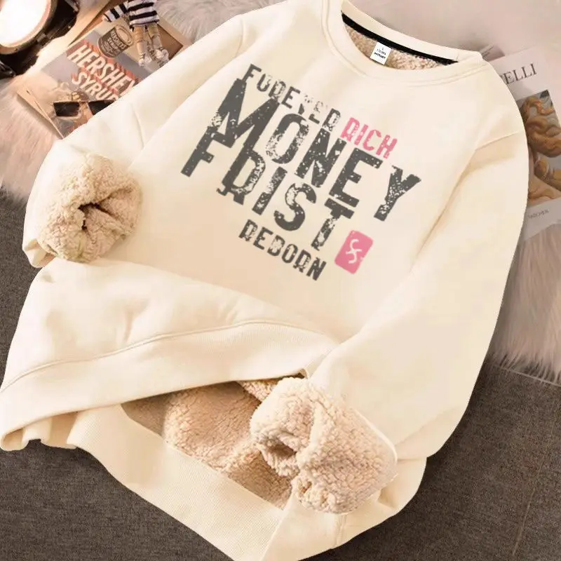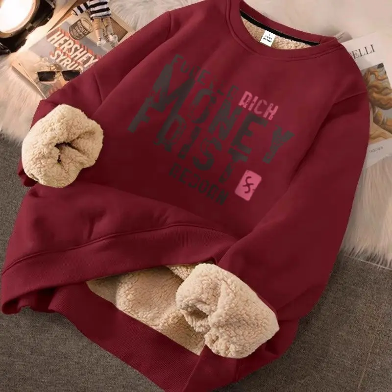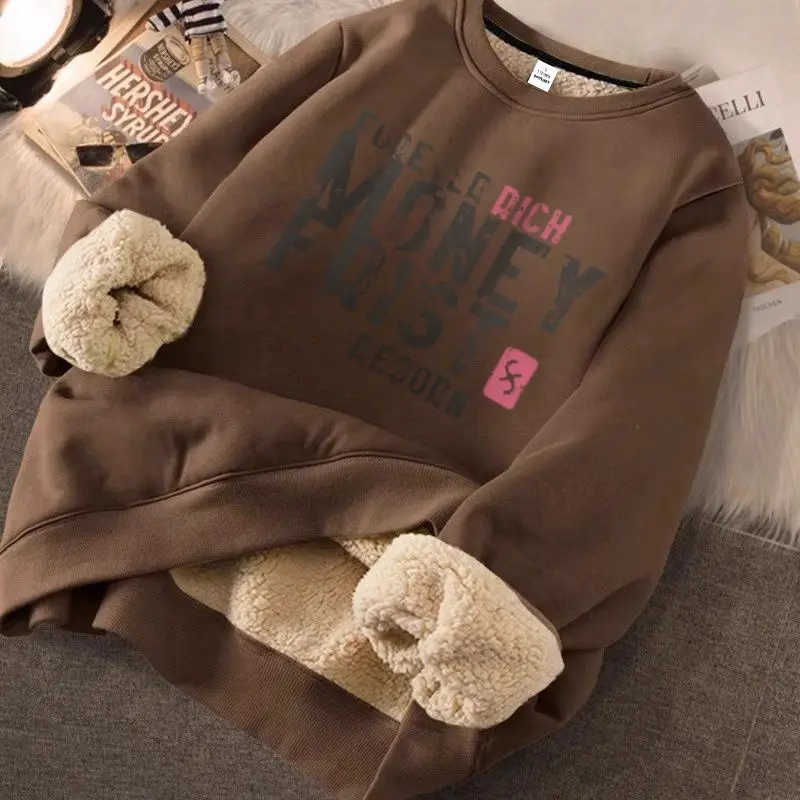 Hearujoy Lamb Fleece Plus Fleece Hoodie Round Neck Top Loose New Warm Couple Outfit Trendy
