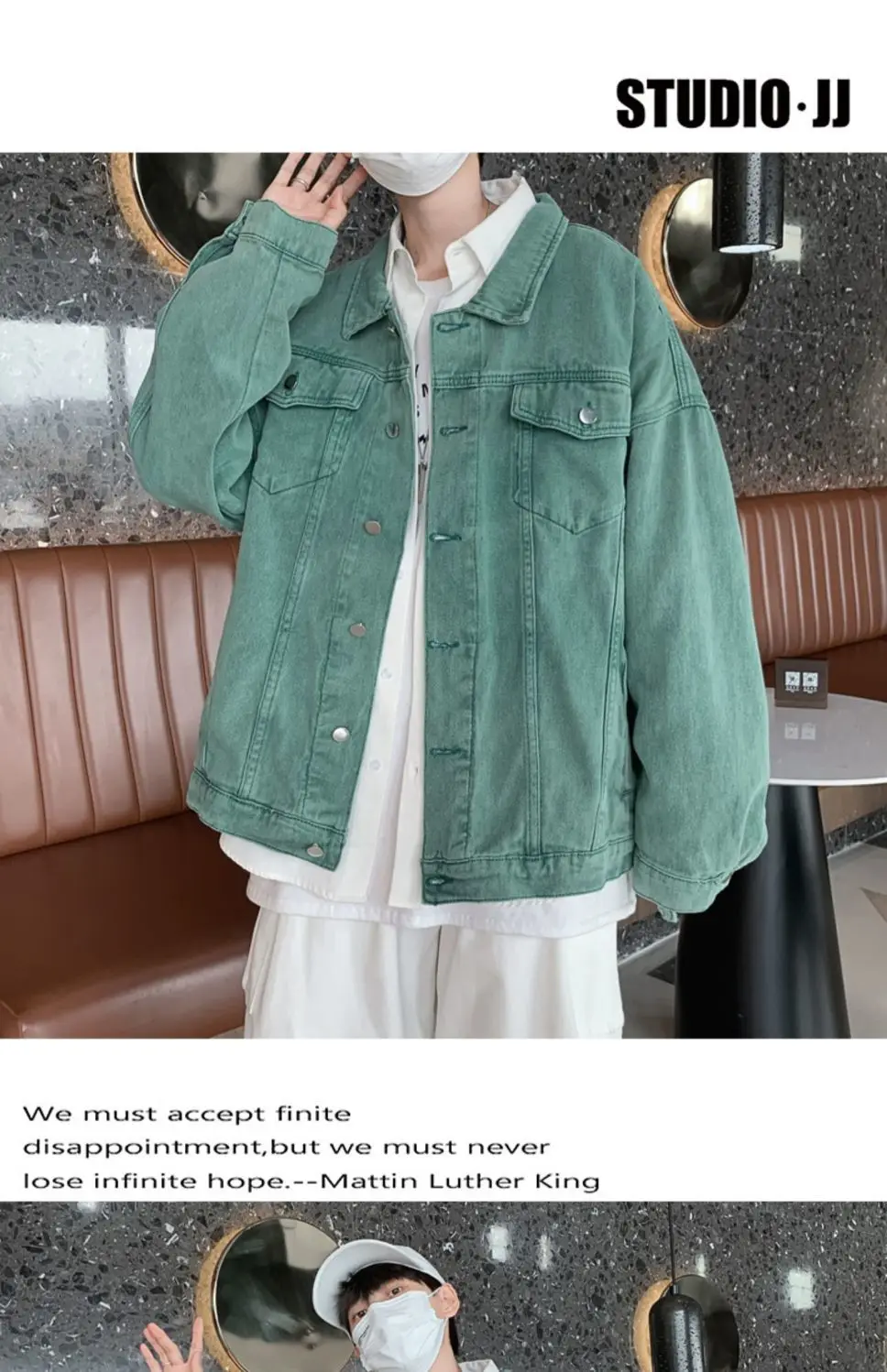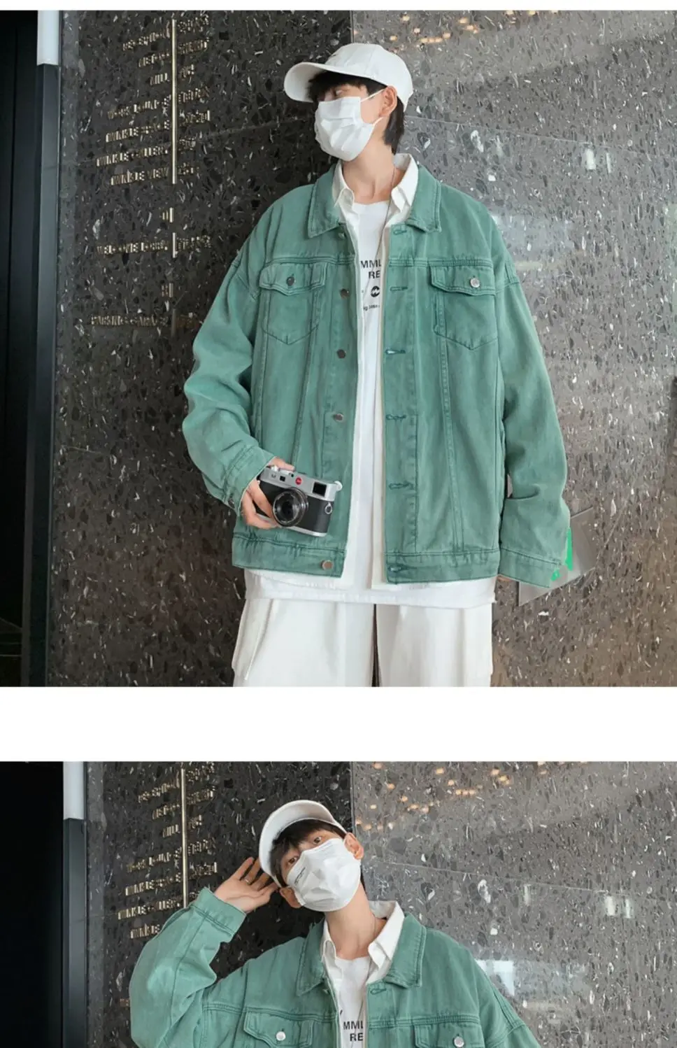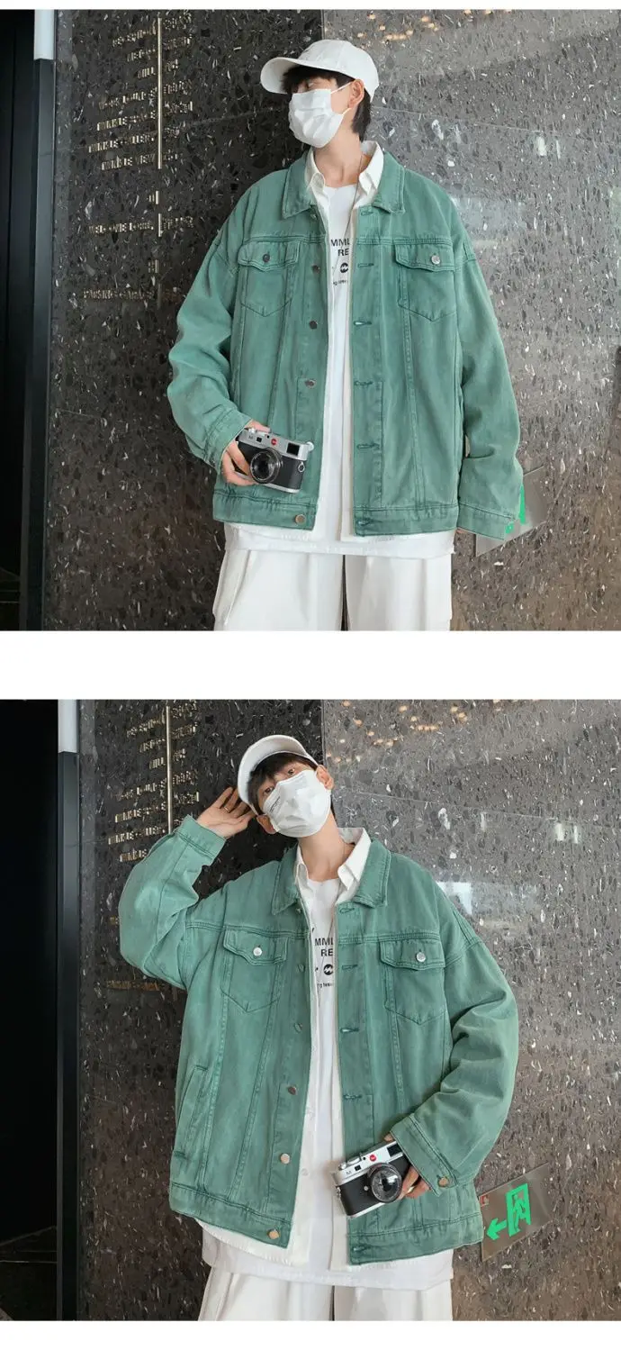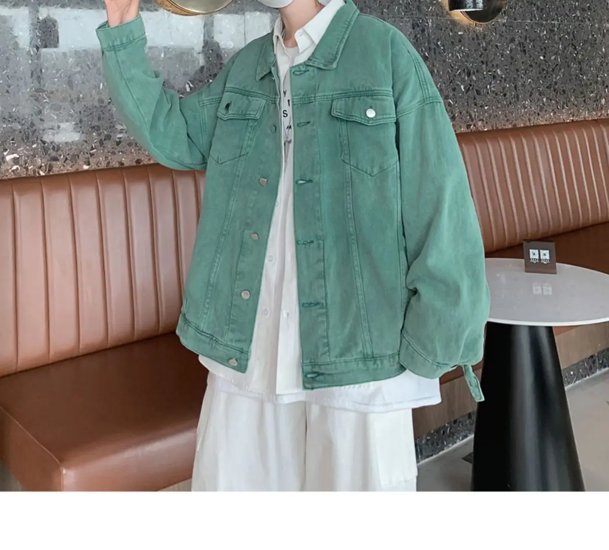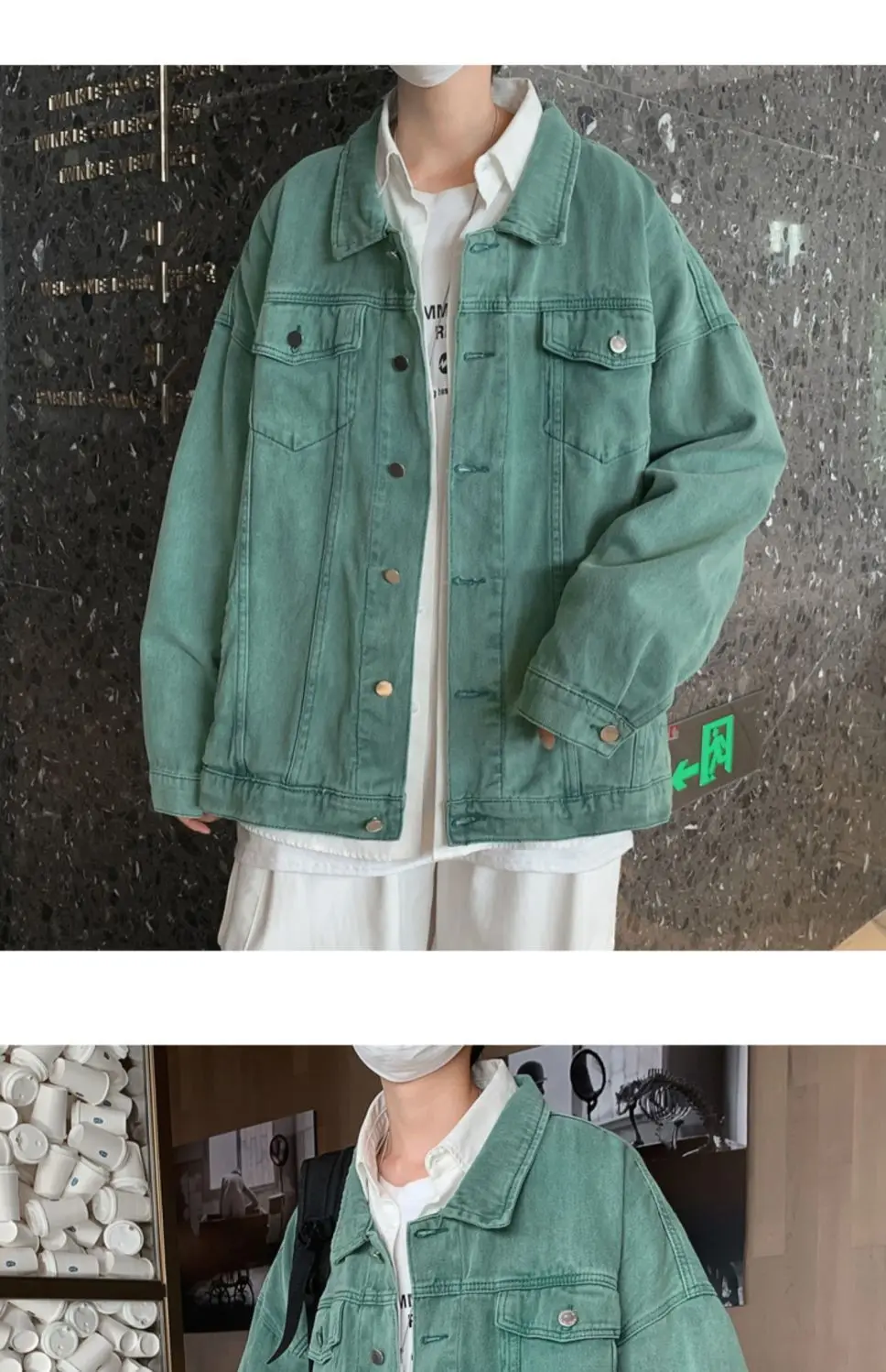 HEARUJOY - Lapel Design Versatile Spring Autumn Denim Jackets for Men Trendy Brands Loose Boys Couples Versatile Solid Color Jacket Tops