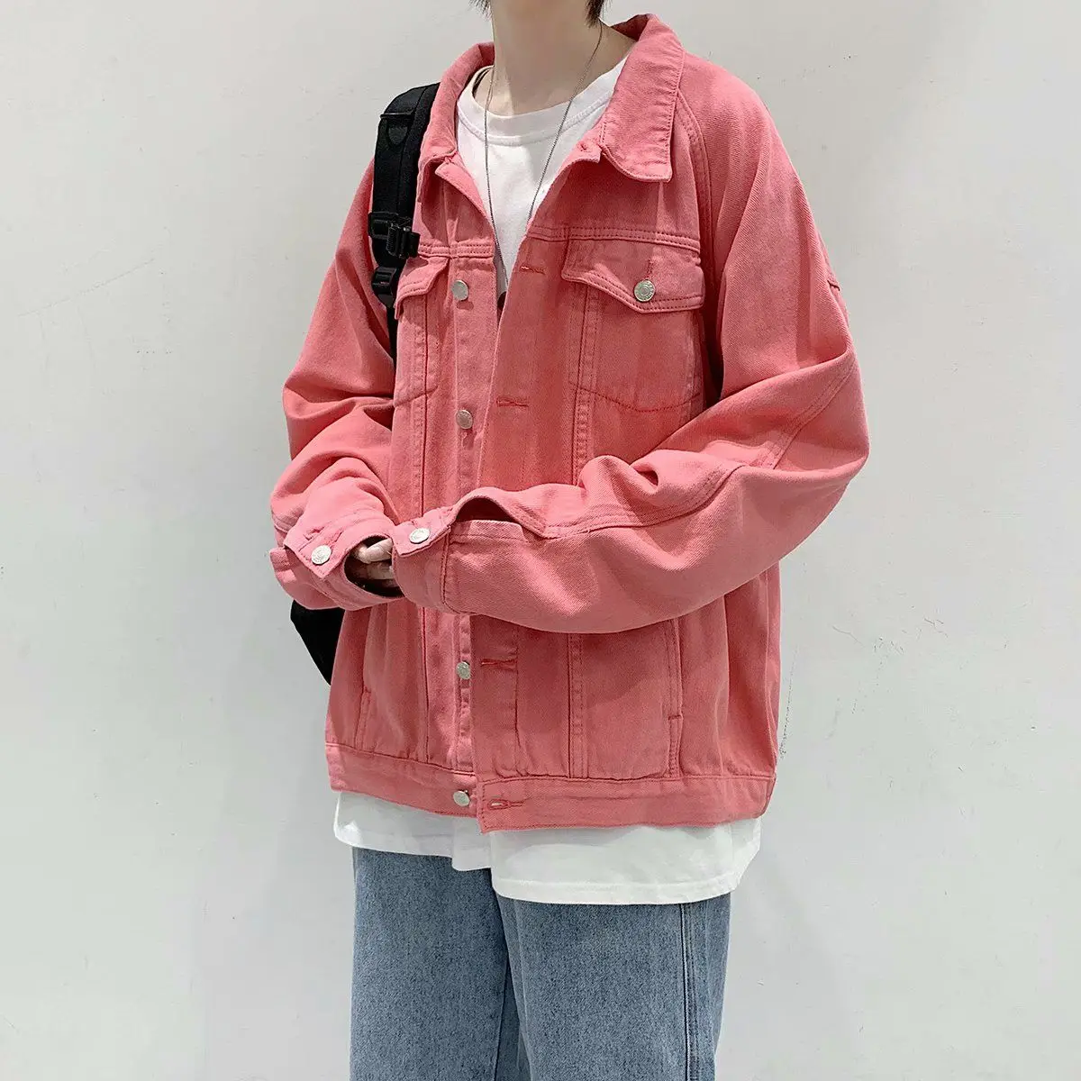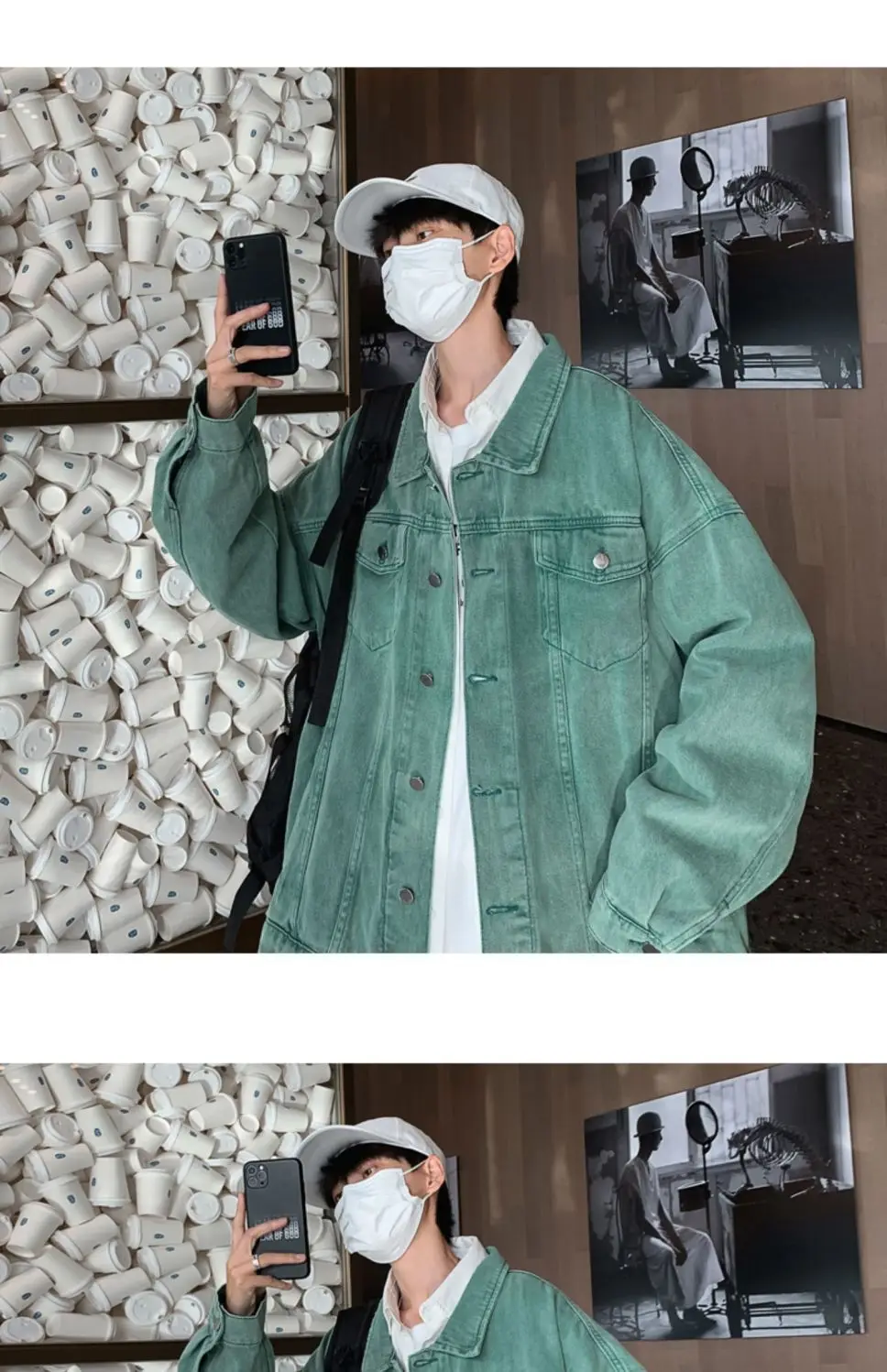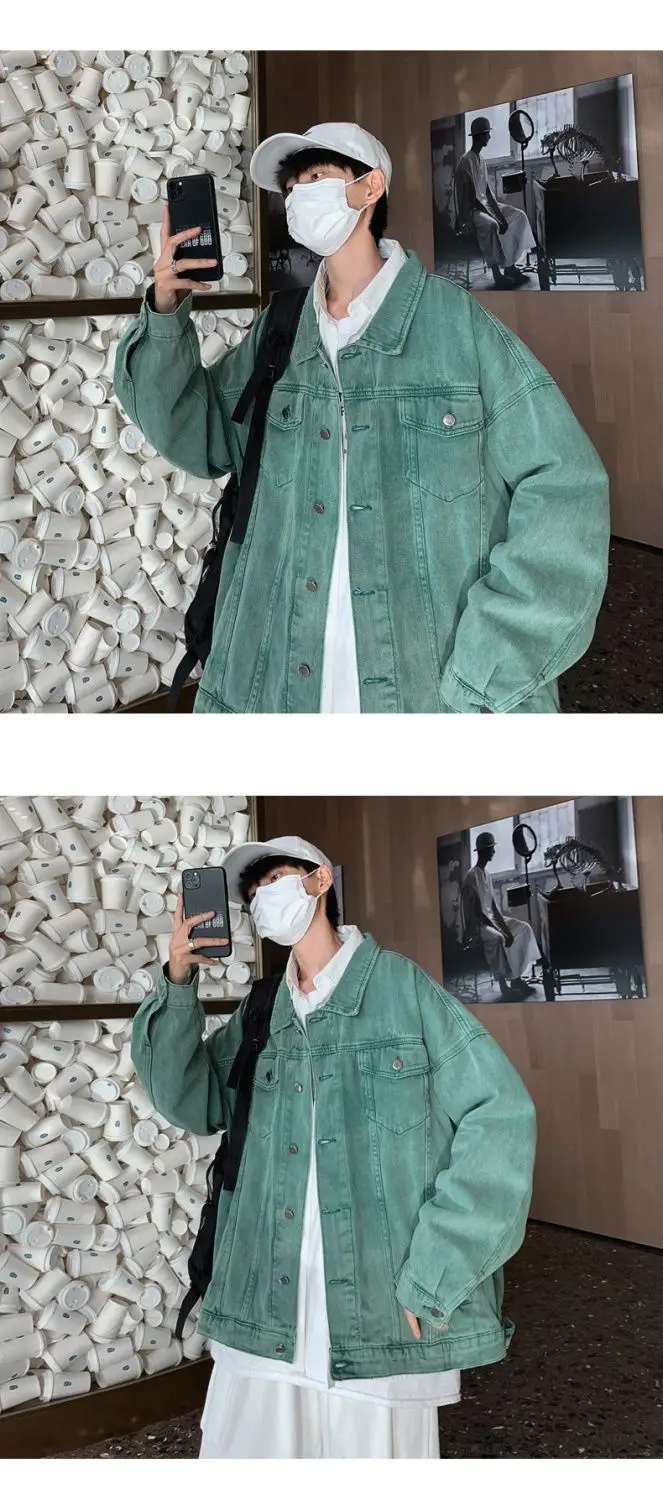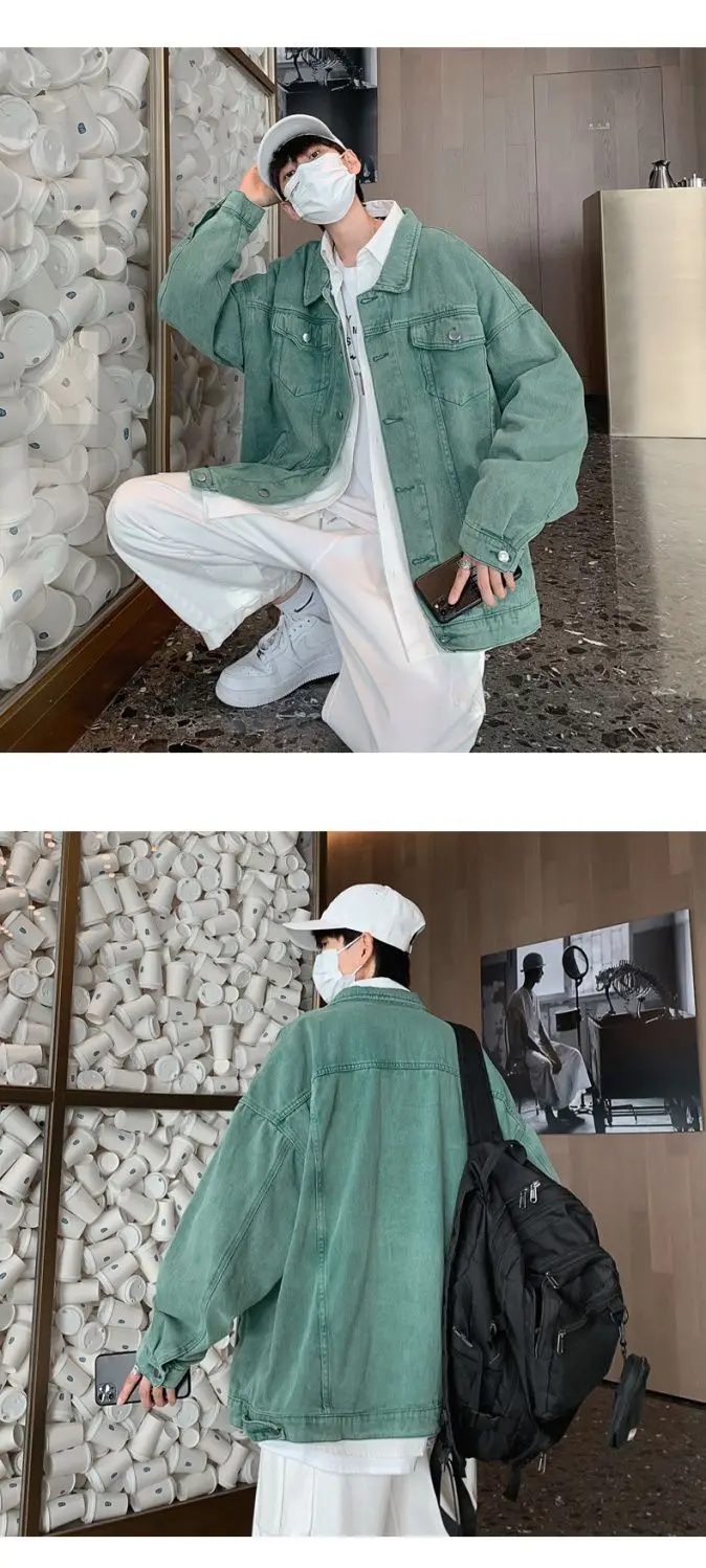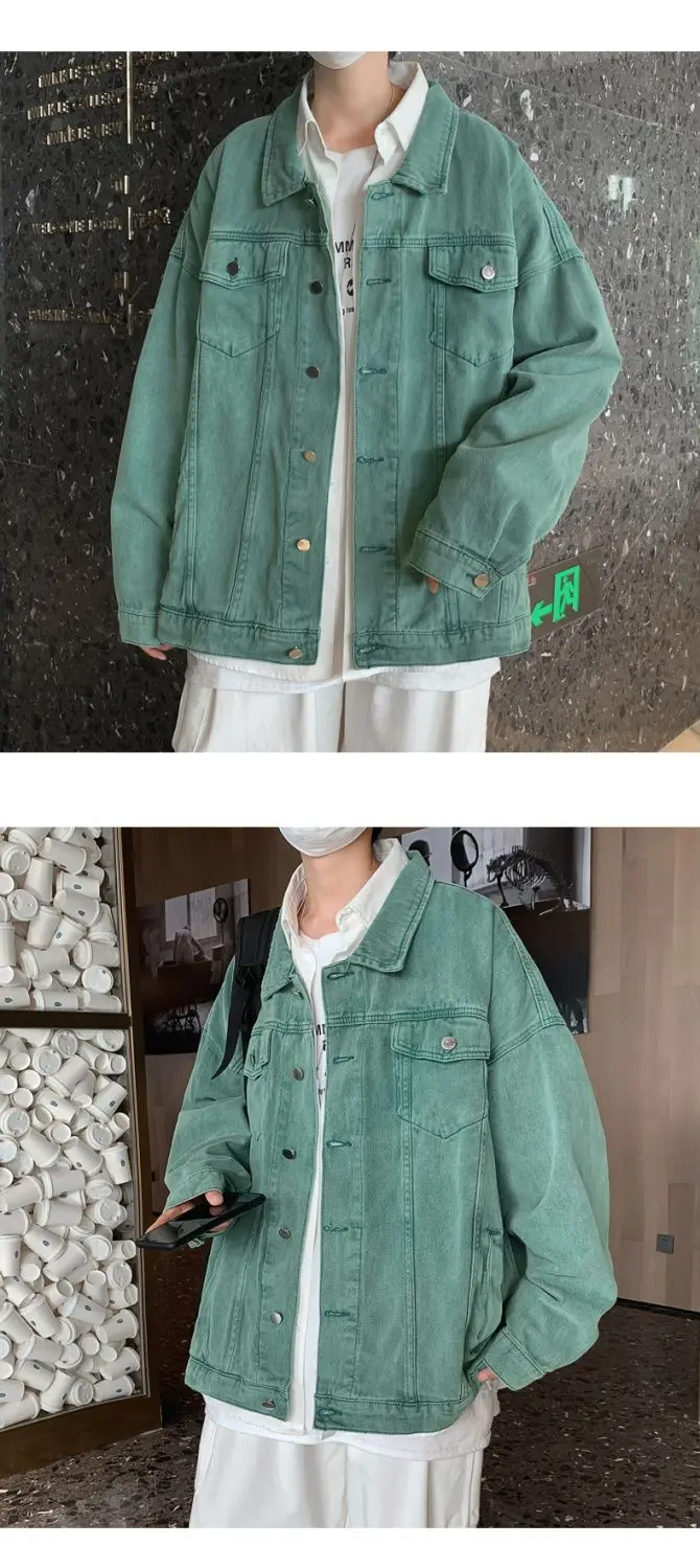 HEARUJOY - Lapel Design Versatile Spring Autumn Denim Jackets for Men Trendy Brands Loose Boys Couples Versatile Solid Color Jacket Tops