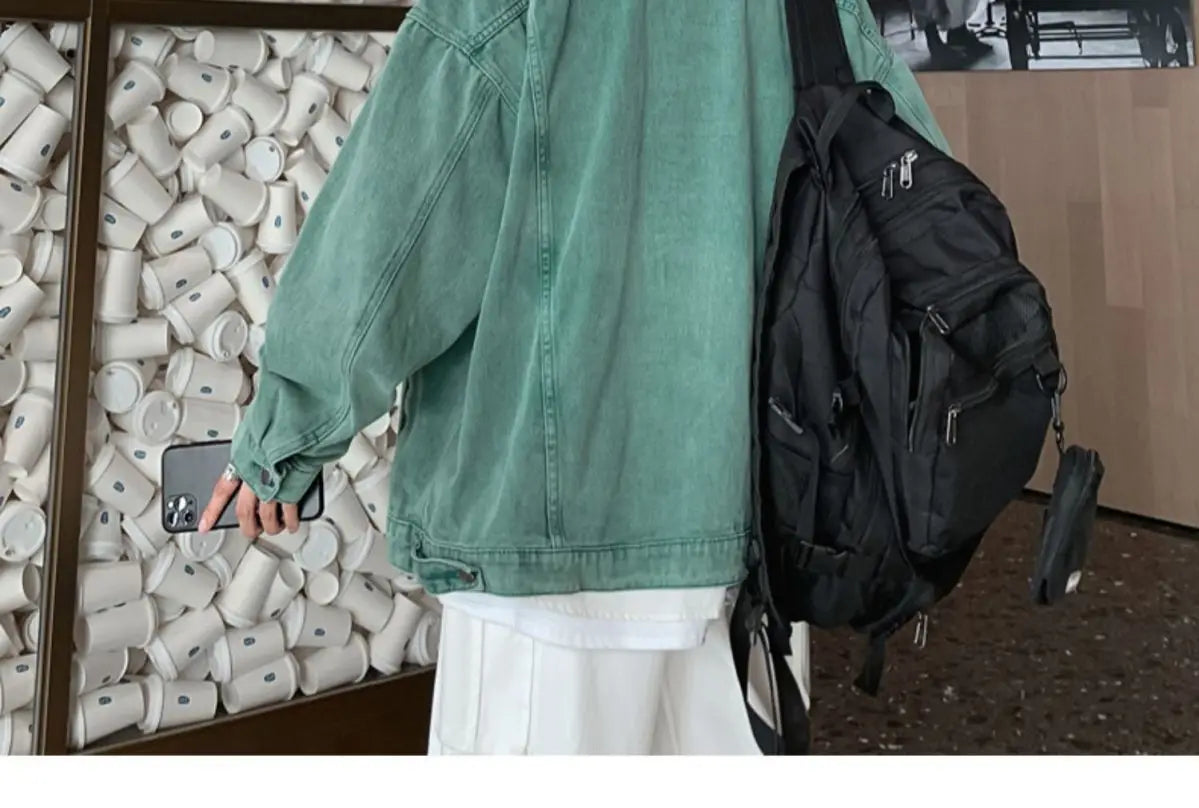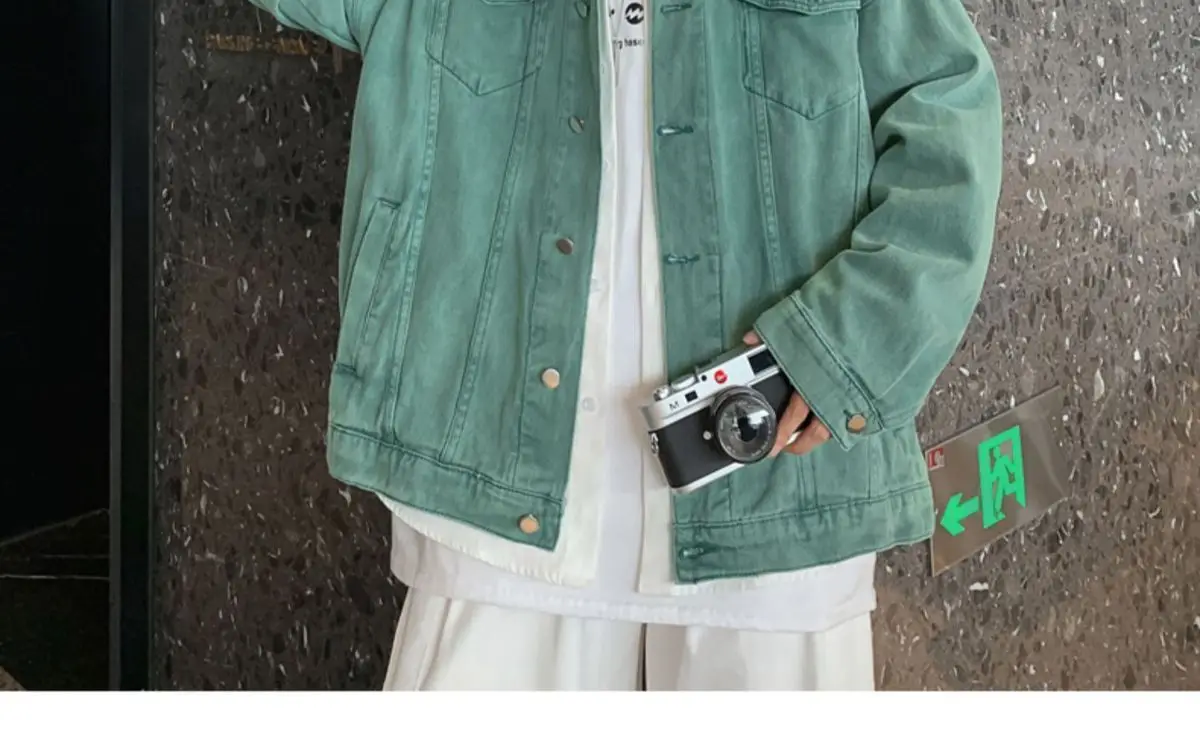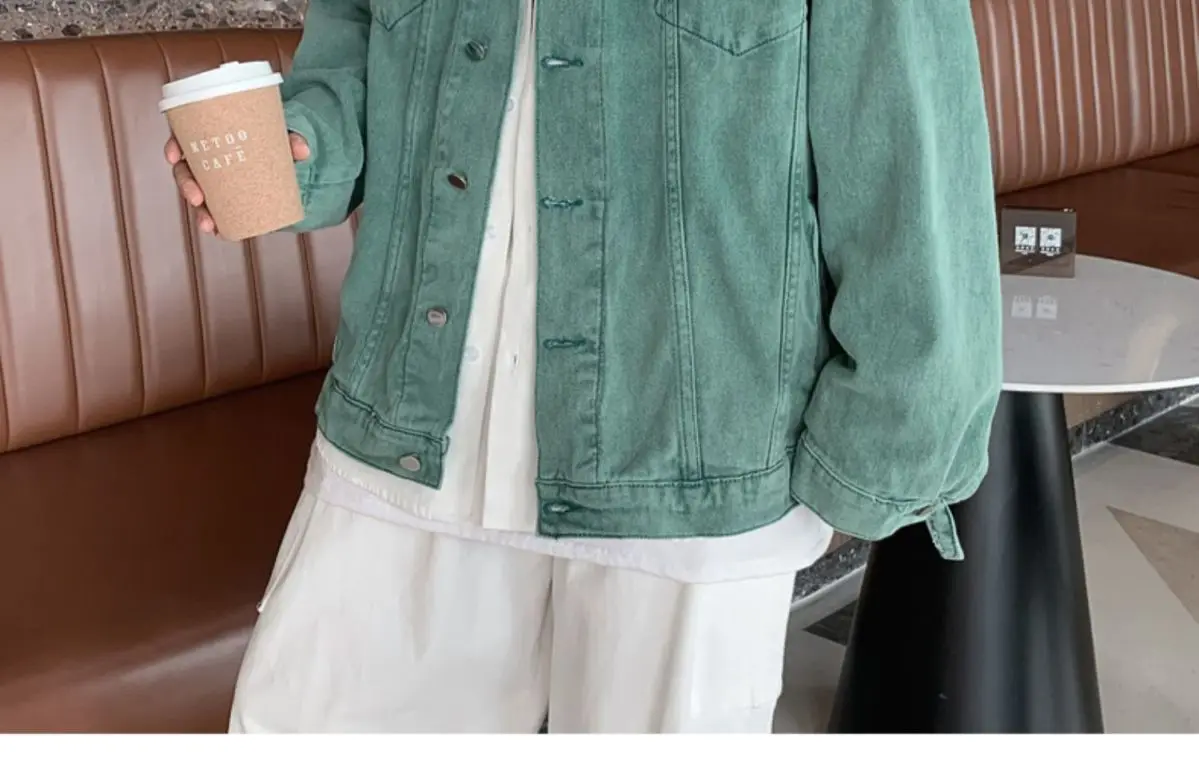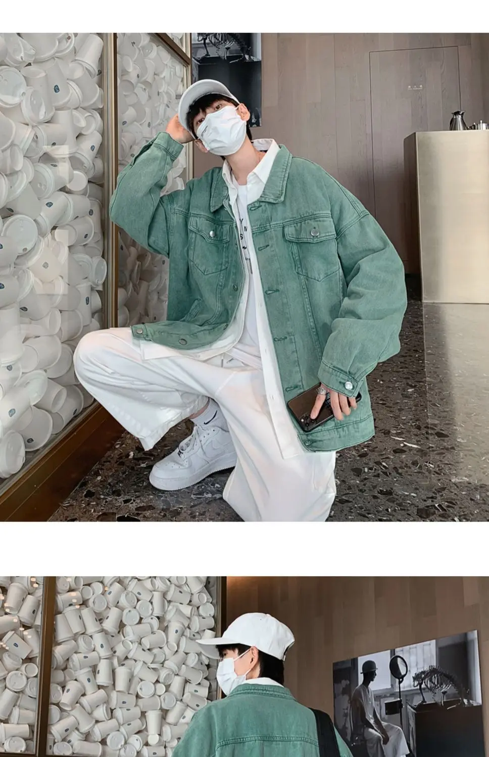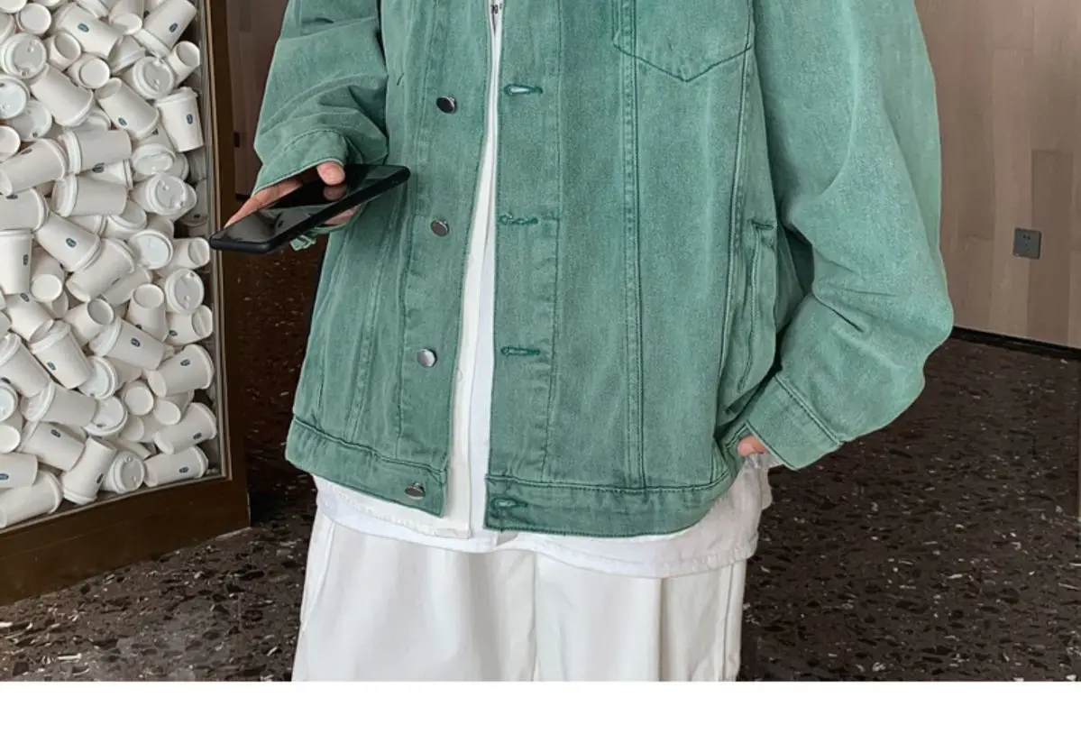 HEARUJOY - Lapel Design Versatile Spring Autumn Denim Jackets for Men Trendy Brands Loose Boys Couples Versatile Solid Color Jacket Tops