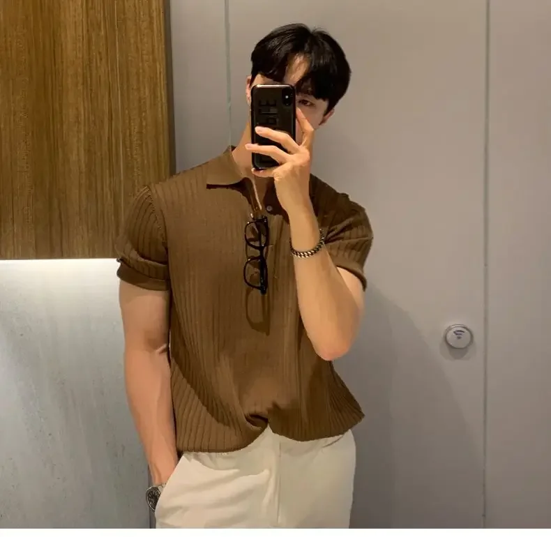 HEARUJOY - Lapel Polo Shirt Short-sleeved Men's Trendy Brand Loose Casual Summer Thin Solid Color Knitted Sweater T-shirt Base Shirt