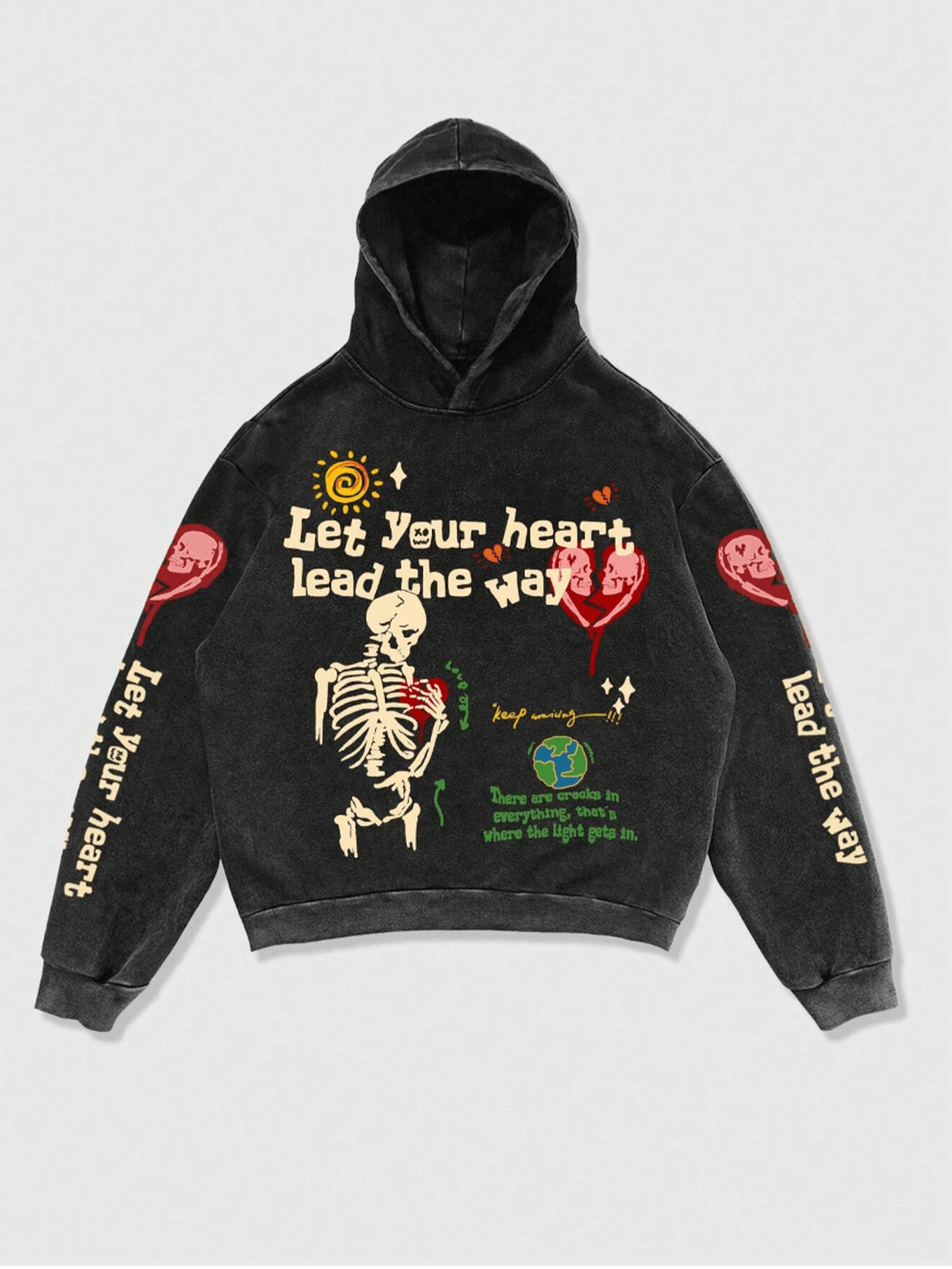 Hearujoy Let your heart lead the way Retro Y2K Hoodie Gothic Casual Alphabet Blast Print Pattern Skull Fashion Hoodie Men Harajuku Men Clothing