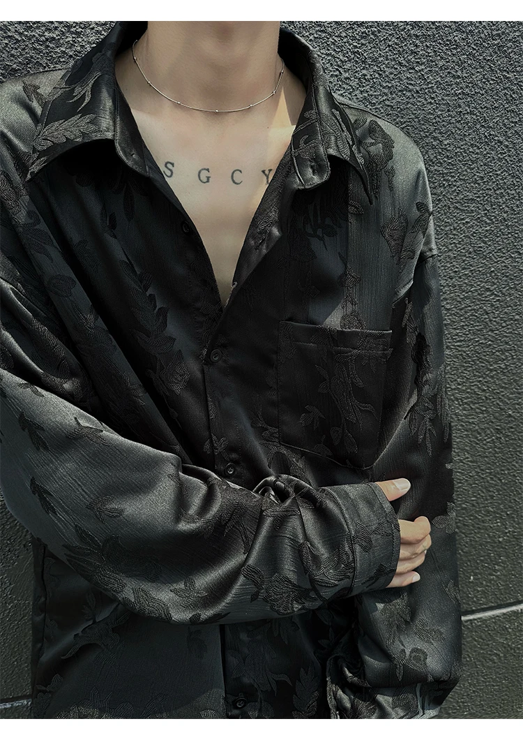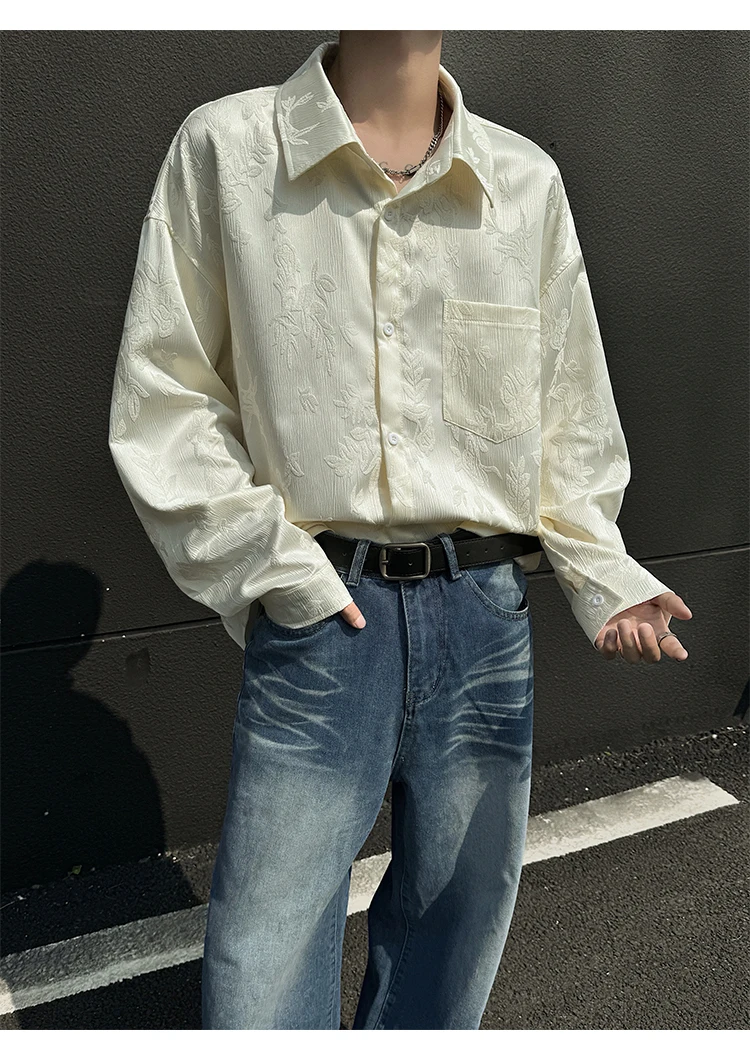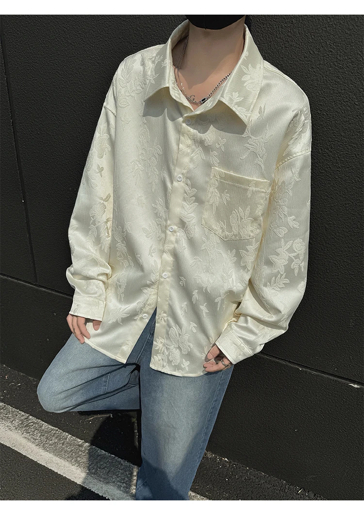 Hearujoy Long Sleeved Shirt Men Oversized Fashion Society Mens Dress Shirt Korean Loose Casual Shirts Mens Flower Shirt Large Size 5XL