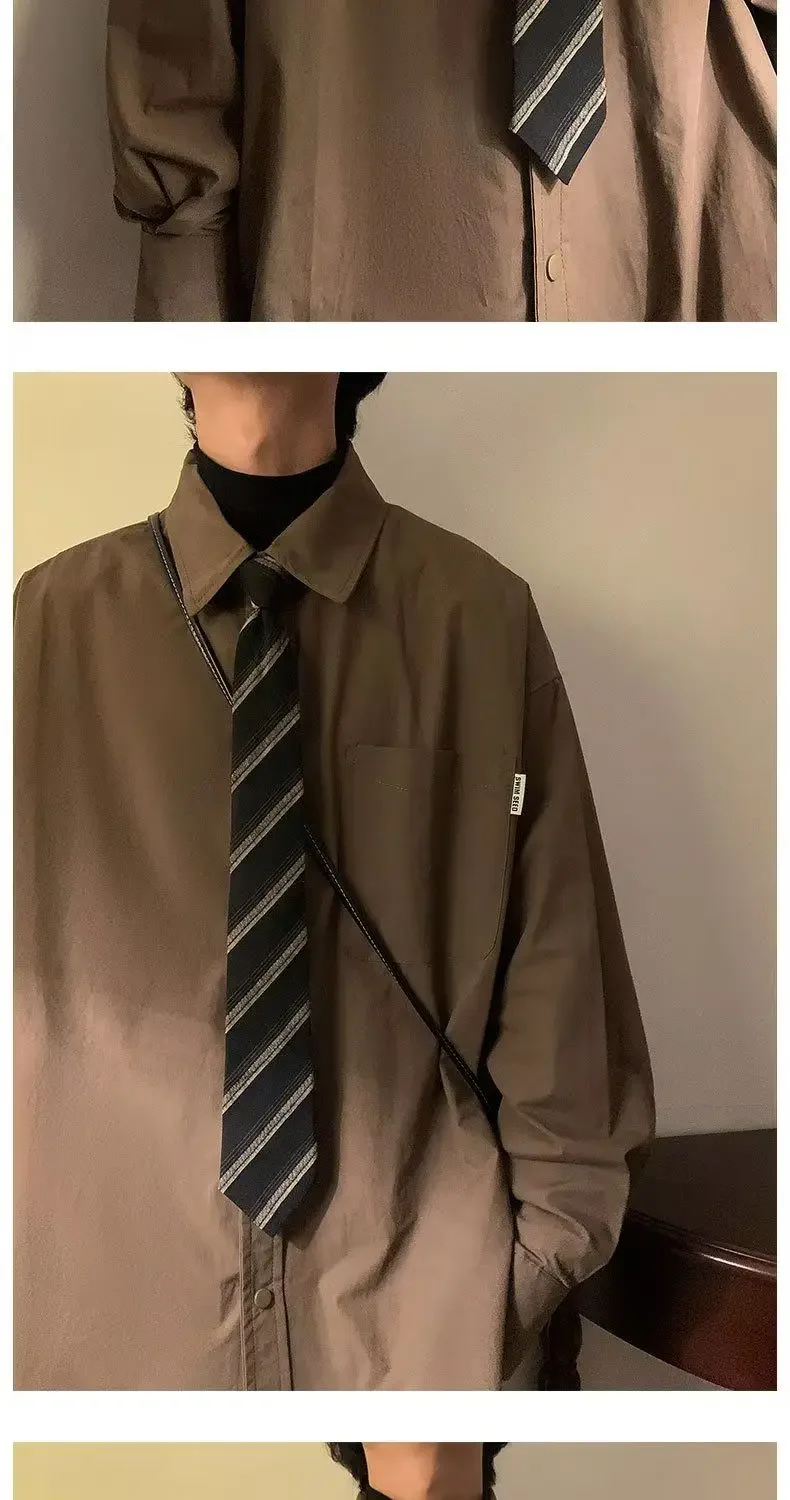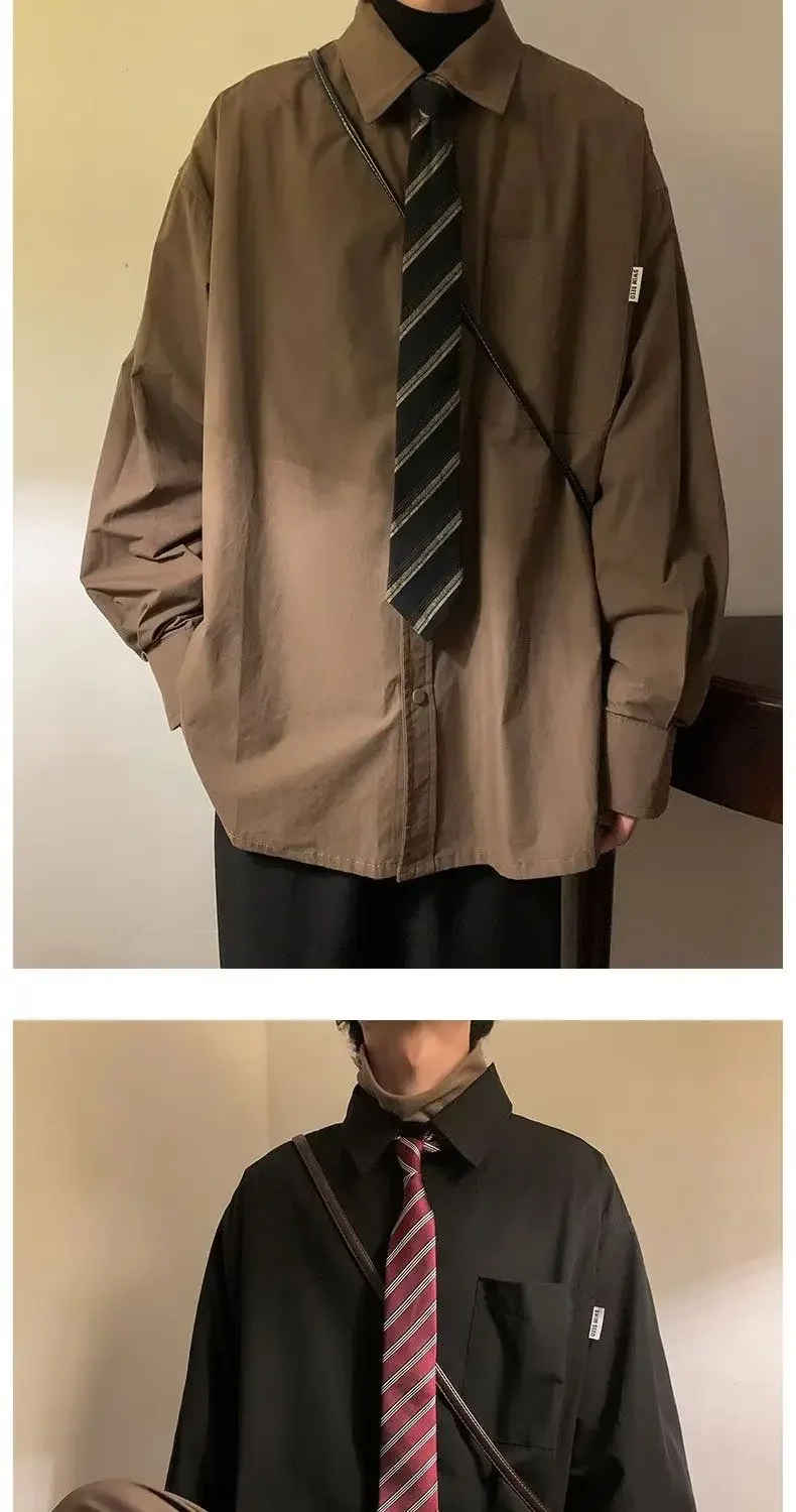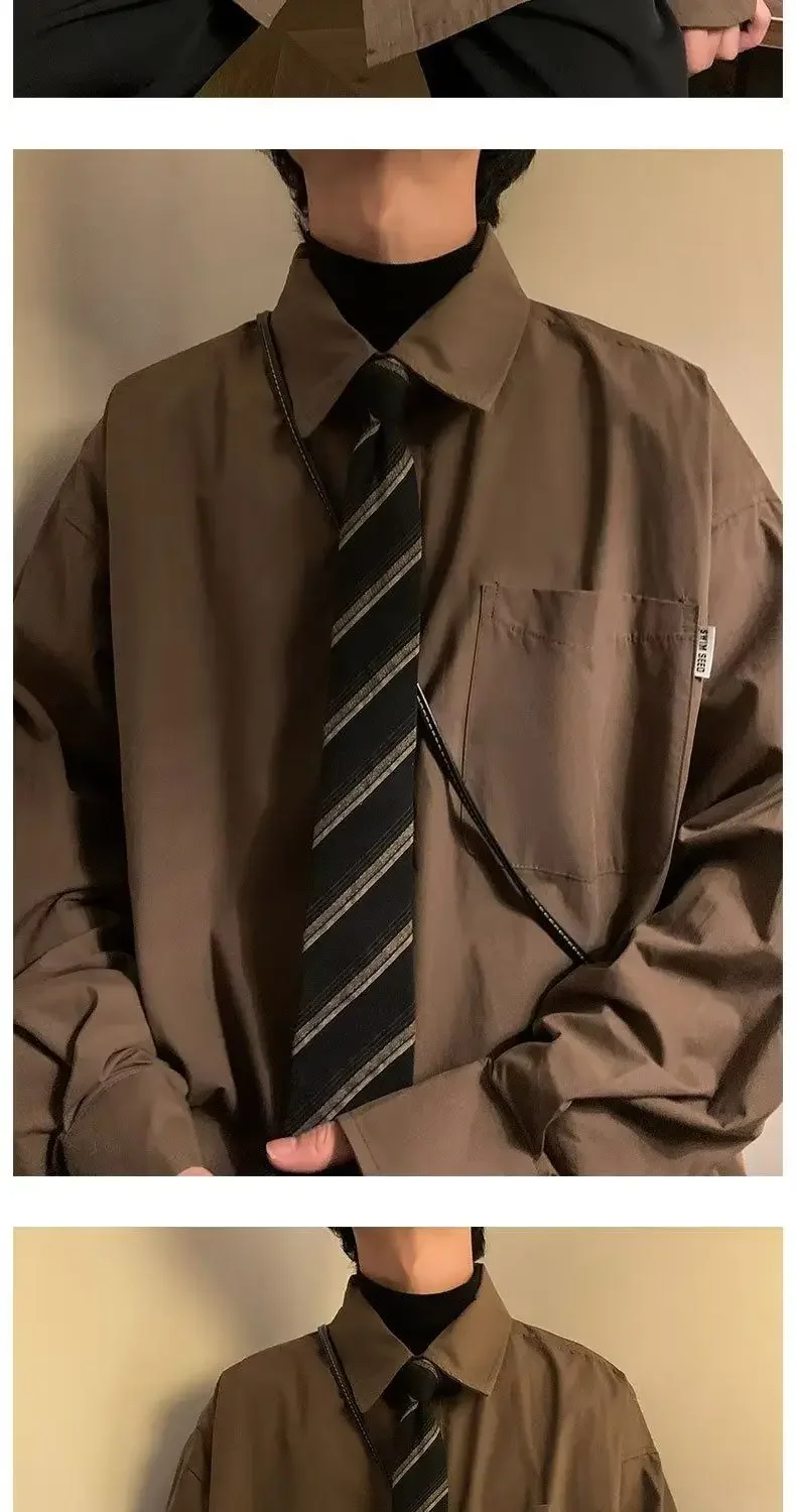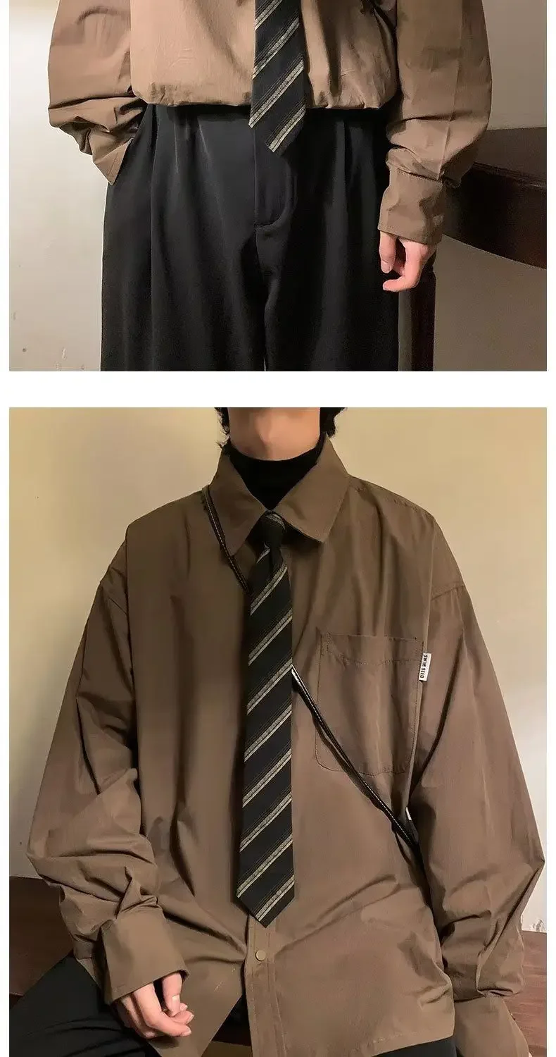HEARUJOY - Long-sleeved Shirt Men Solid Color Japanese Retro Spring Loose Brown Trendy Versatile Cardigan