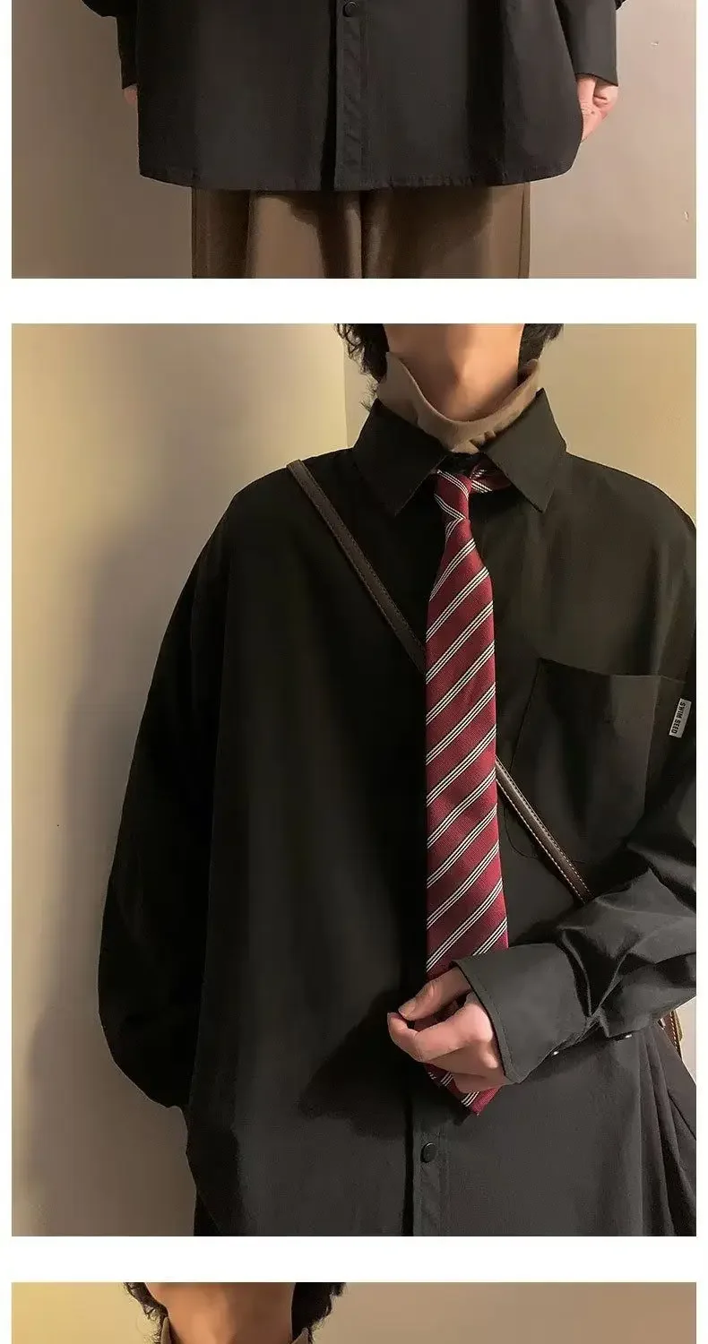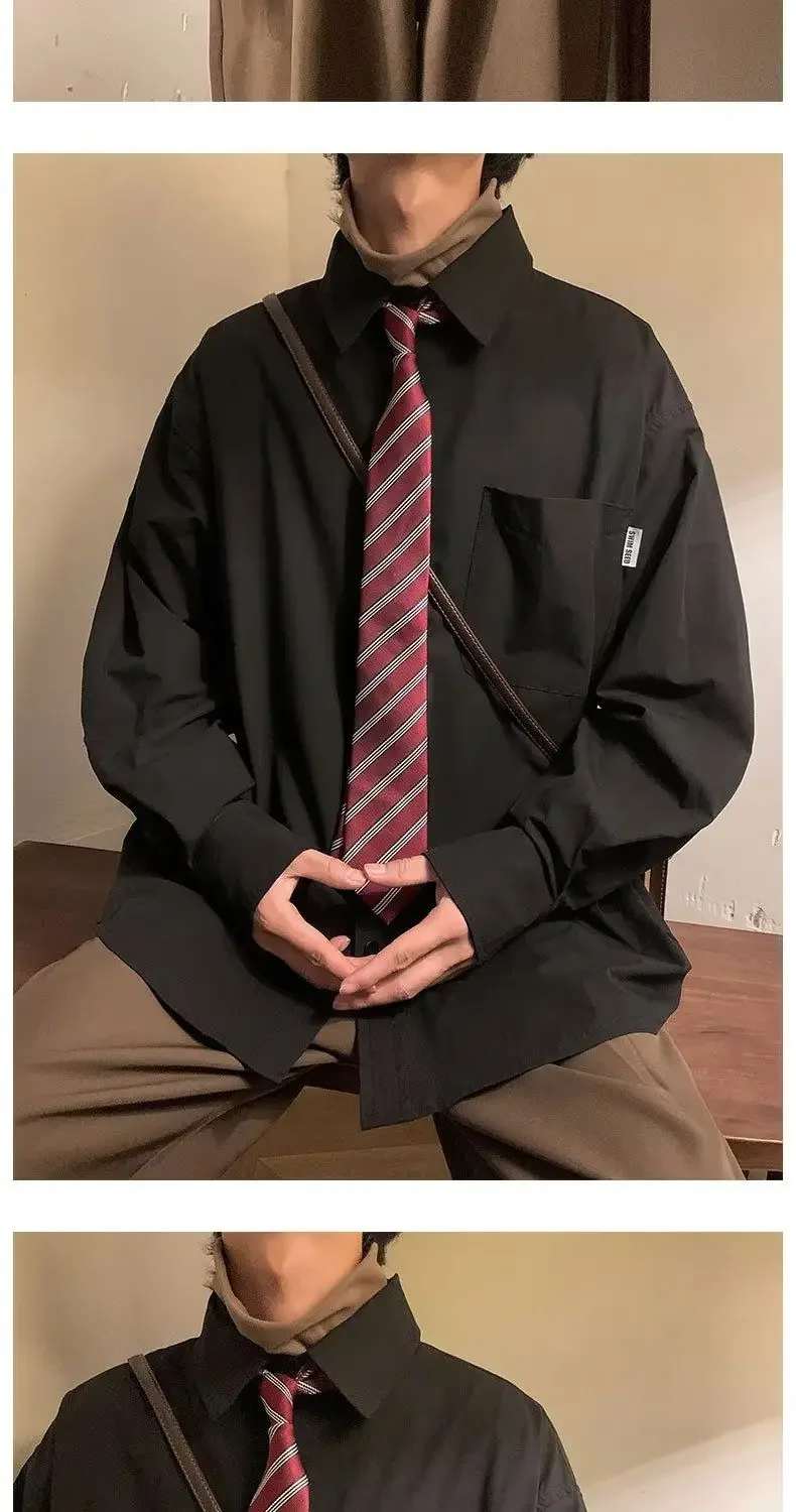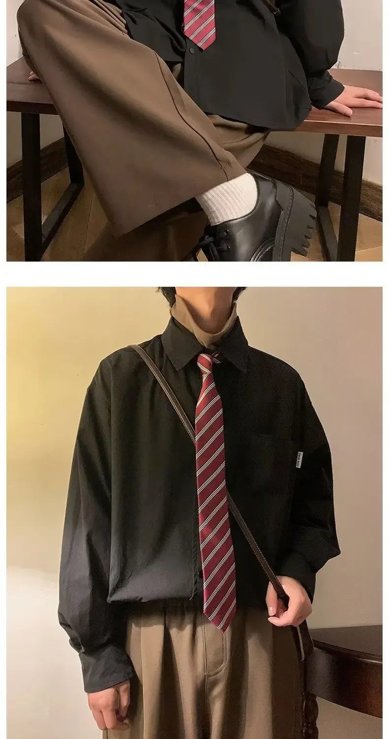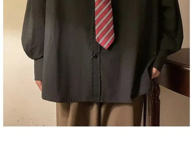 HEARUJOY - Long-sleeved Shirt Men Solid Color Japanese Retro Spring Loose Brown Trendy Versatile Cardigan