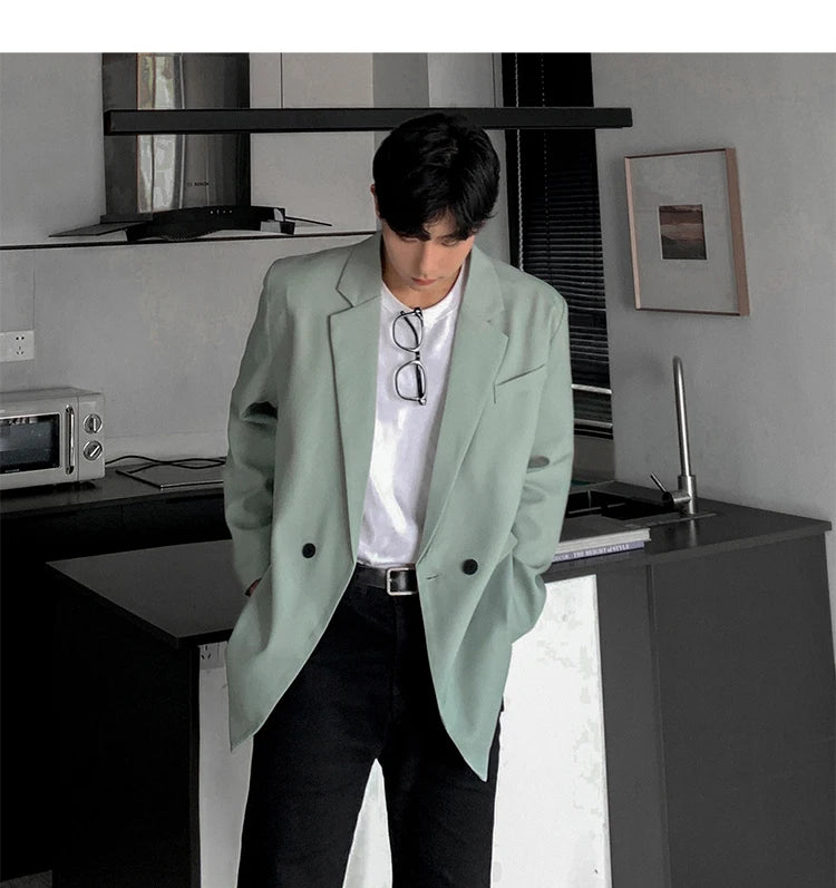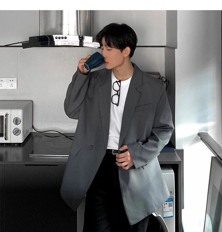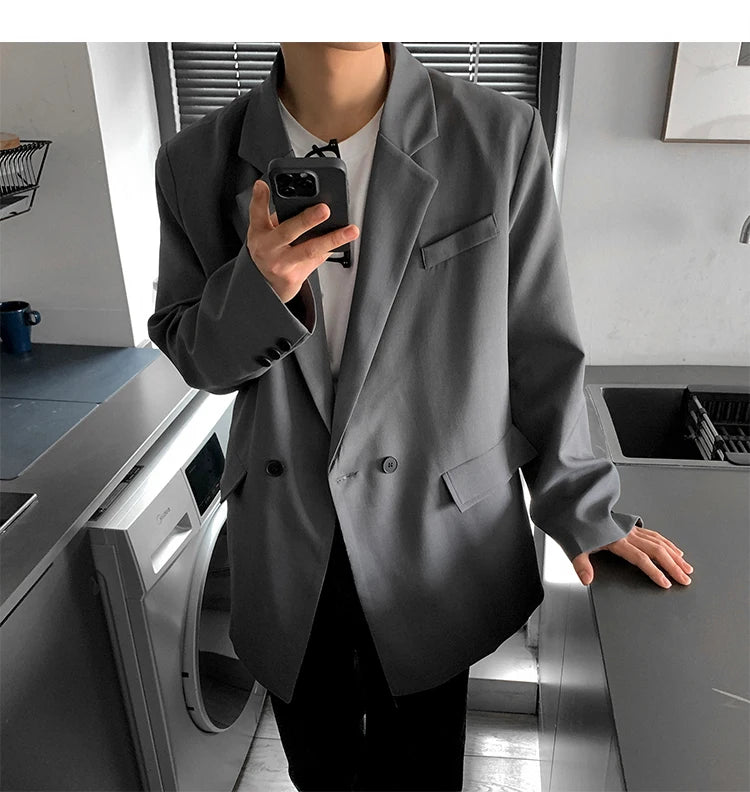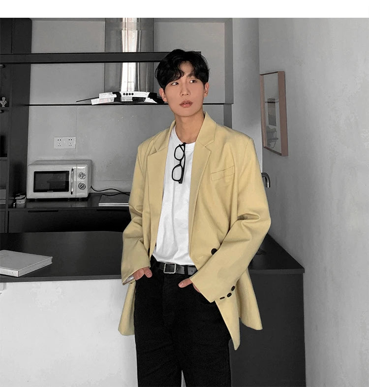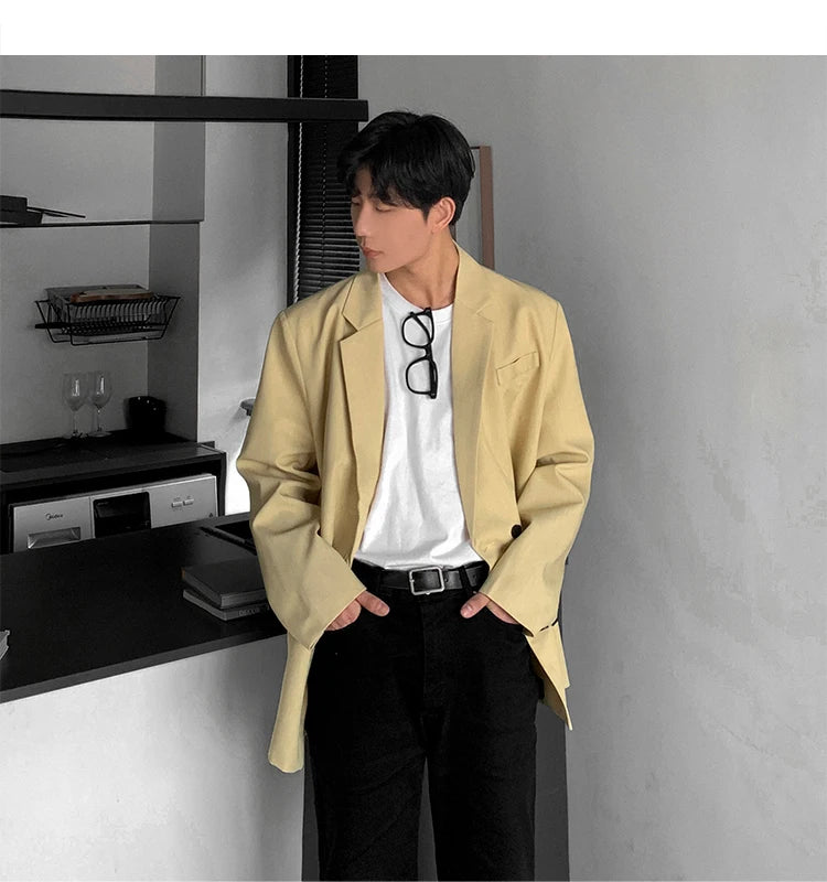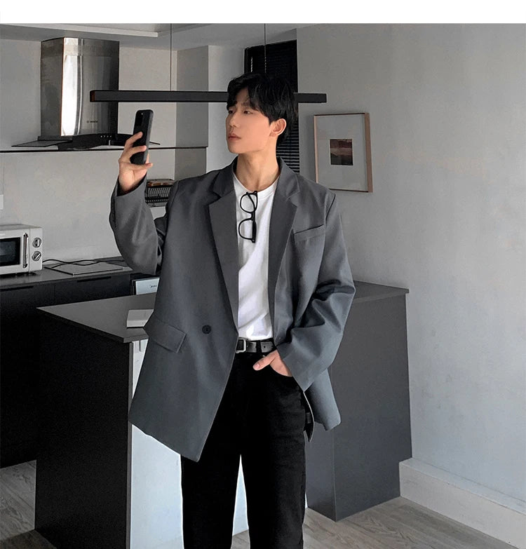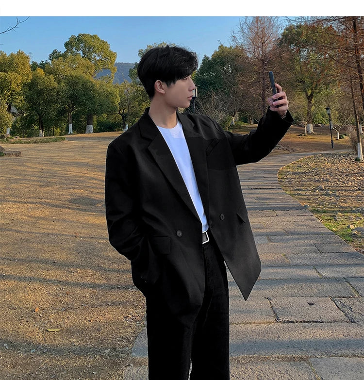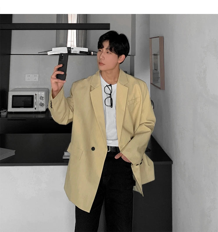 HEARUJOY - Loose Blazers Men Leisure Trendy Coat One Button Suit Jackets fashion Male Daily Streetwear All-match Simple Suit-tops hip hop