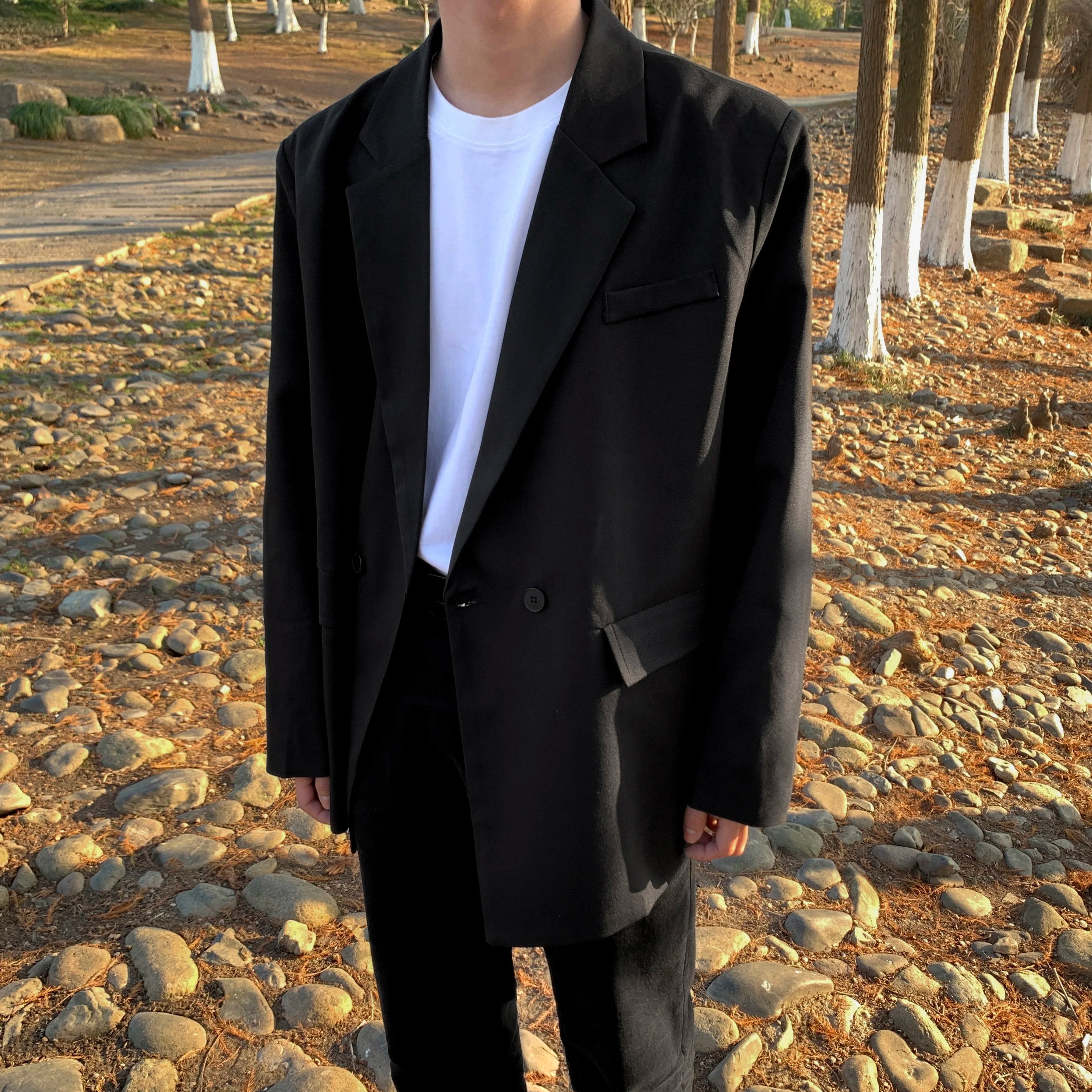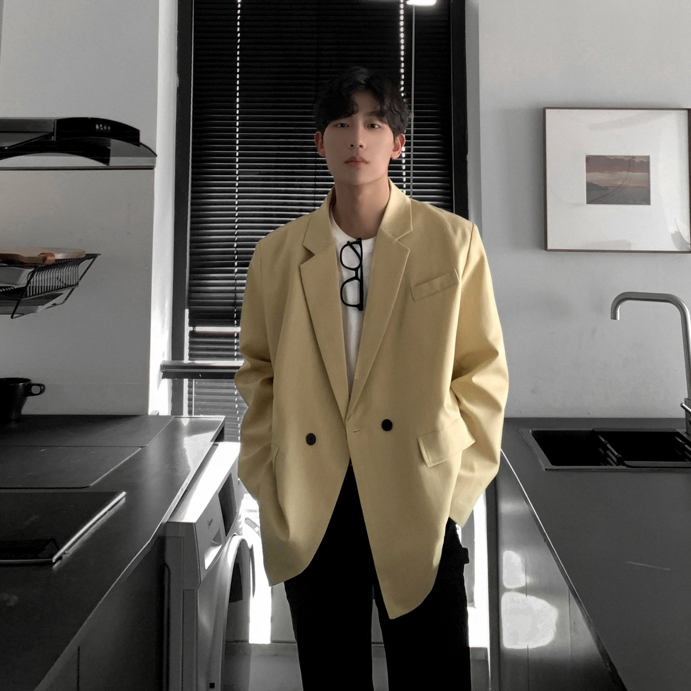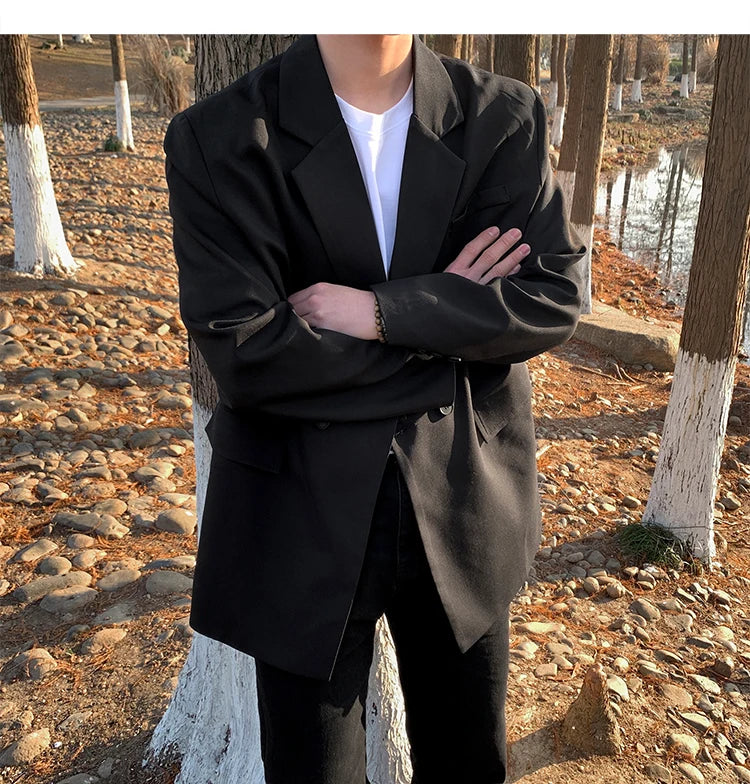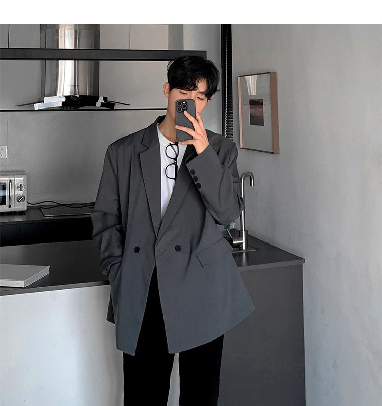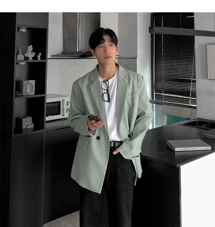 HEARUJOY - Loose Blazers Men Leisure Trendy Coat One Button Suit Jackets fashion Male Daily Streetwear All-match Simple Suit-tops hip hop