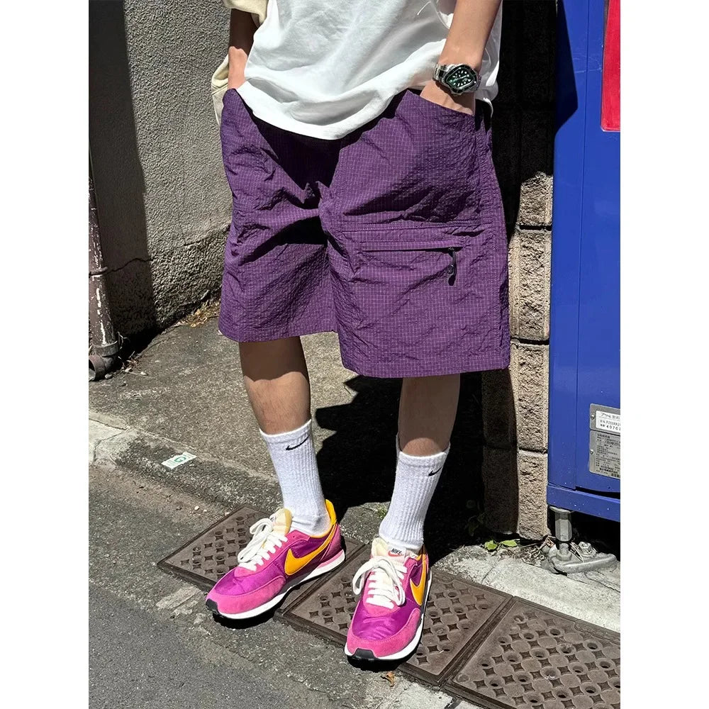HEARUJOY - Loose Fit Korean Retro Drawstring Cargo Shorts Men's Casual Summer New Style Waterproof Versatile Five-Pocket Shorts