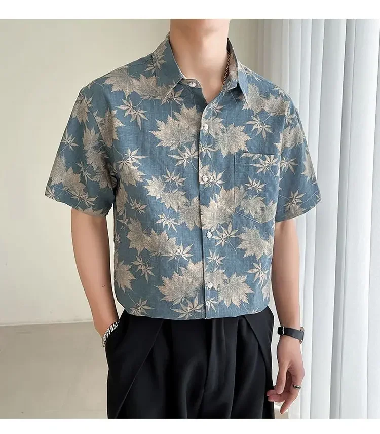 HEARUJOY - Loose Maple Leaf Flower Shirt Men's Short-sleeved Mature Style Casual Five-point Sleeves