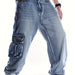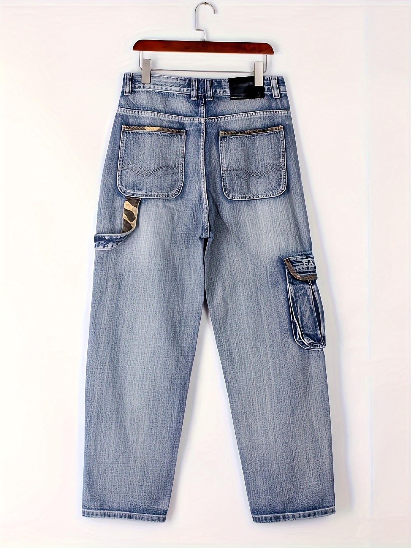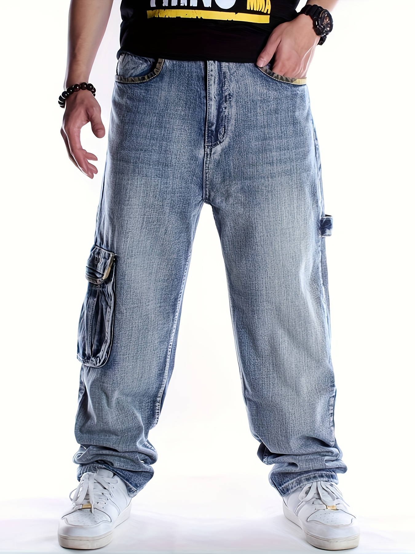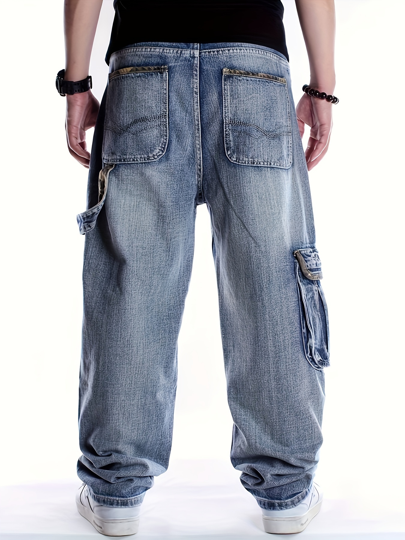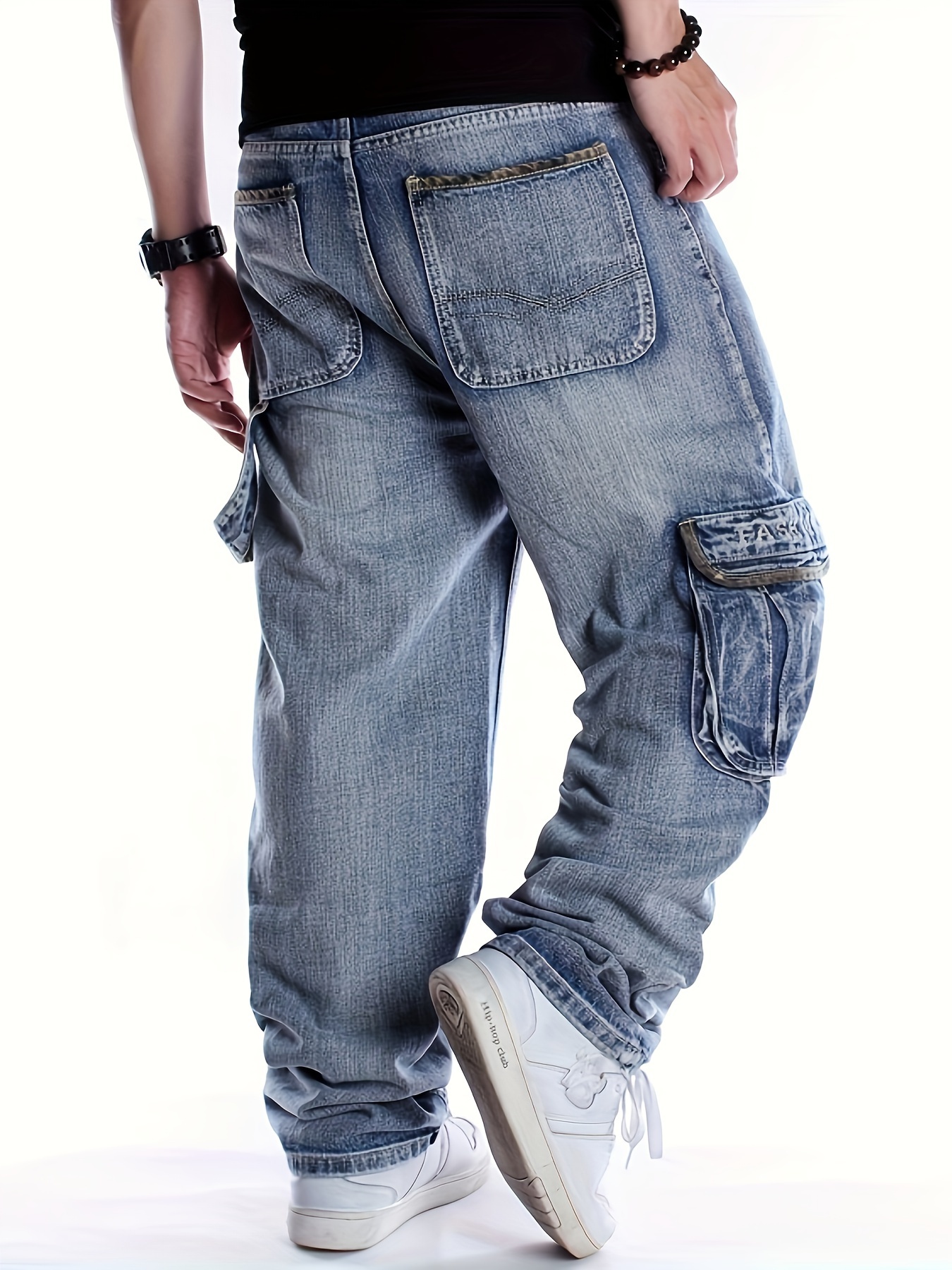 Hearujoy [Loose Oversized Light Jeans] Men's multi pocket light colored jeans, loose and oversized long pants, men's street trend hip-hop oversized street dance skateboard pants, suitable for all seasons