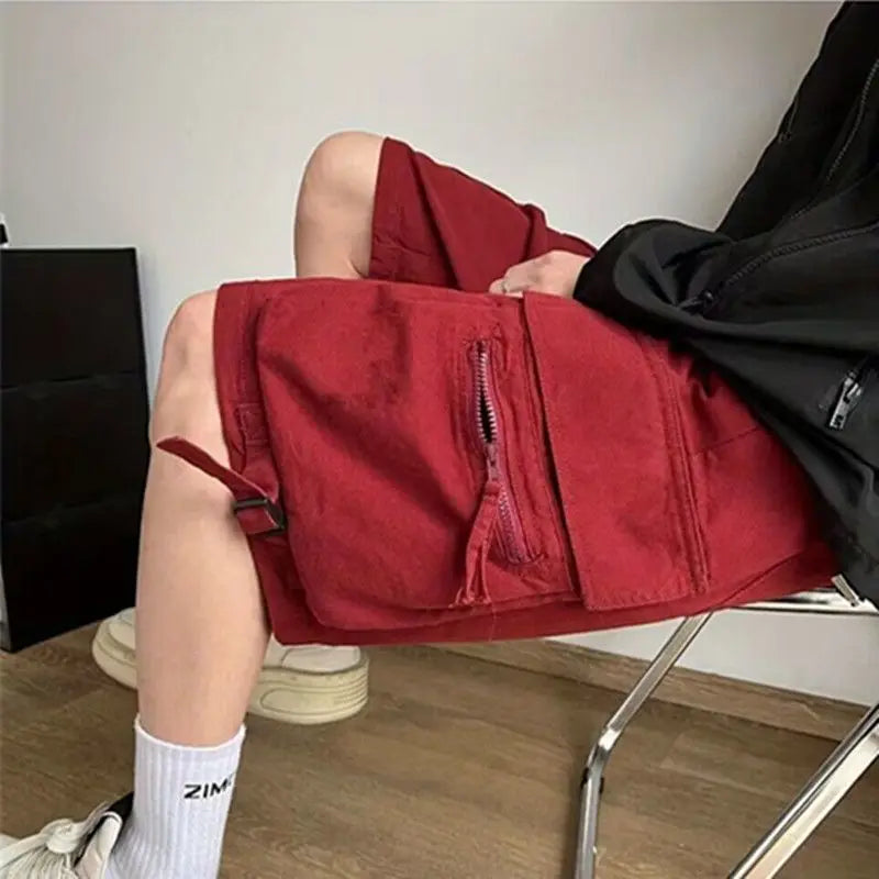 HEARUJOY - Men Clothing Trendy Vintage Japanese Style Streetwear Y2K Loose Cargo Shorts Summer Casual Solid Multi Pockets Short Baggy Pants