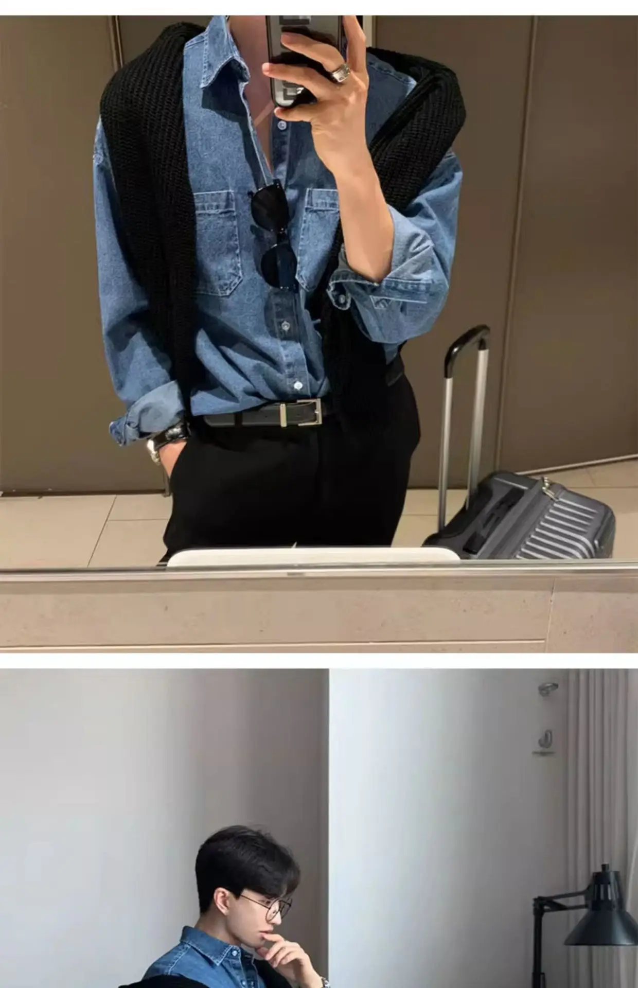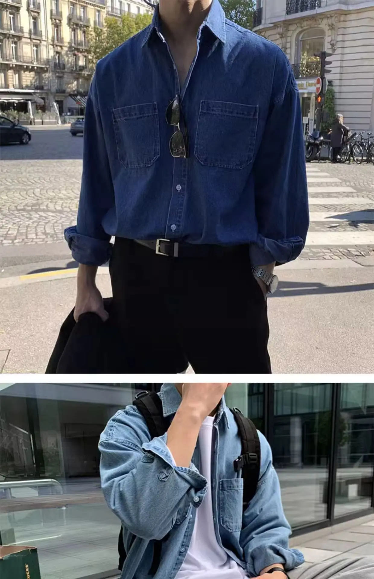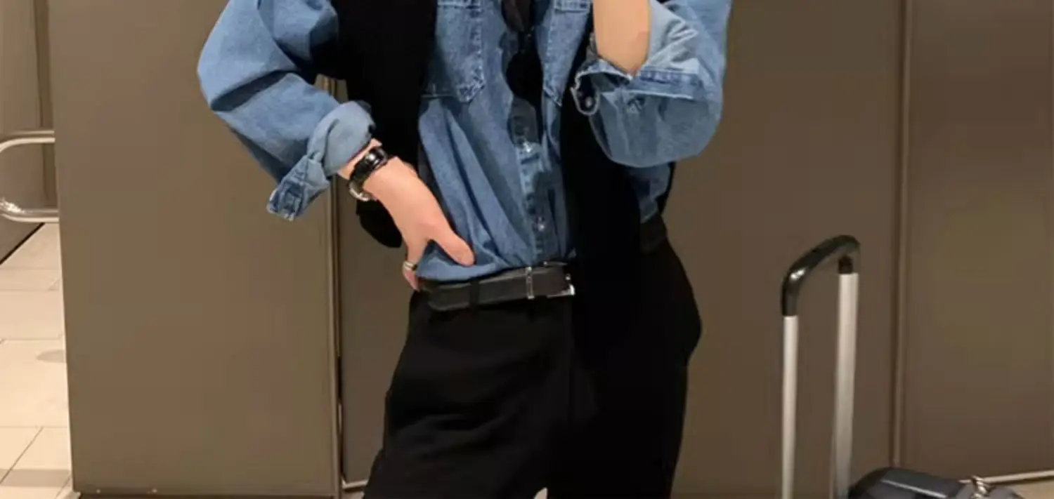 HEARUJOY - Men Denim Long Sleeve Shirt High End Outfit British Yuppie Style Shirt Spring Autumn New Versatile Outerwear