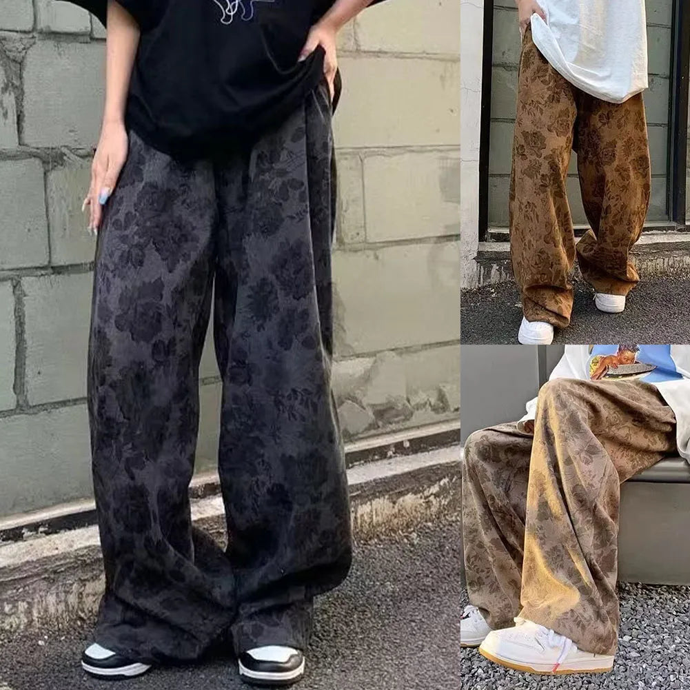 HEARUJOY - Men Loose Vintage Casual Jogging Pants Printing Korean Style High Street Trouser Wide Leg Streetwear