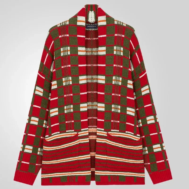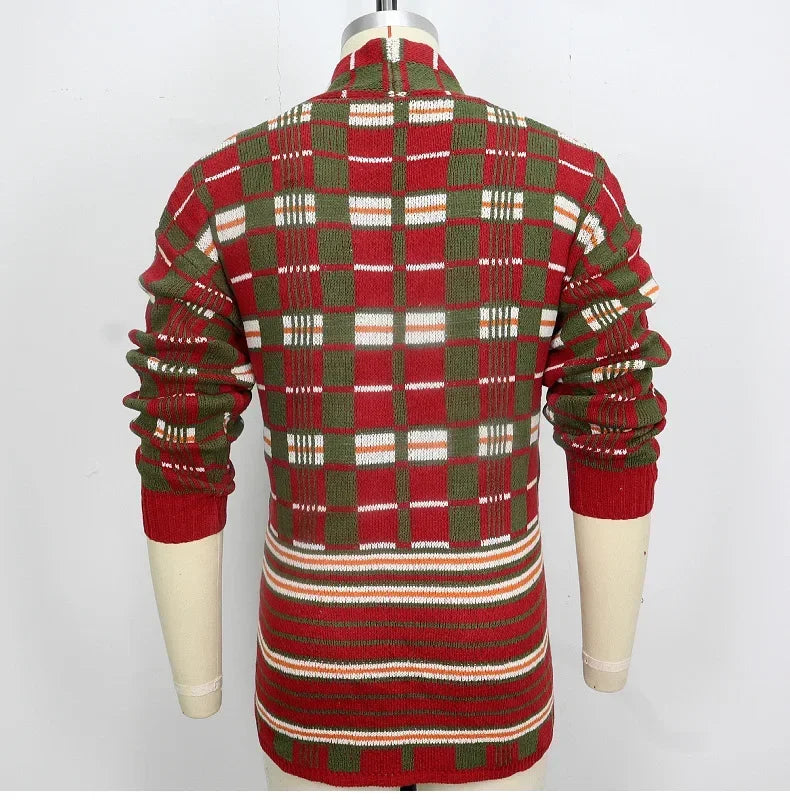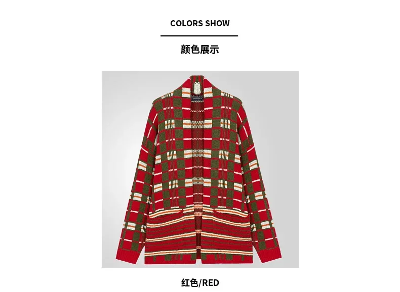HEARUJOY - Men New Mid Length Coat Cardigan Sweaters Turn Down Collar Print Plaid Coats Loose Casual Splice Open Stitch Autumn Winter 2025