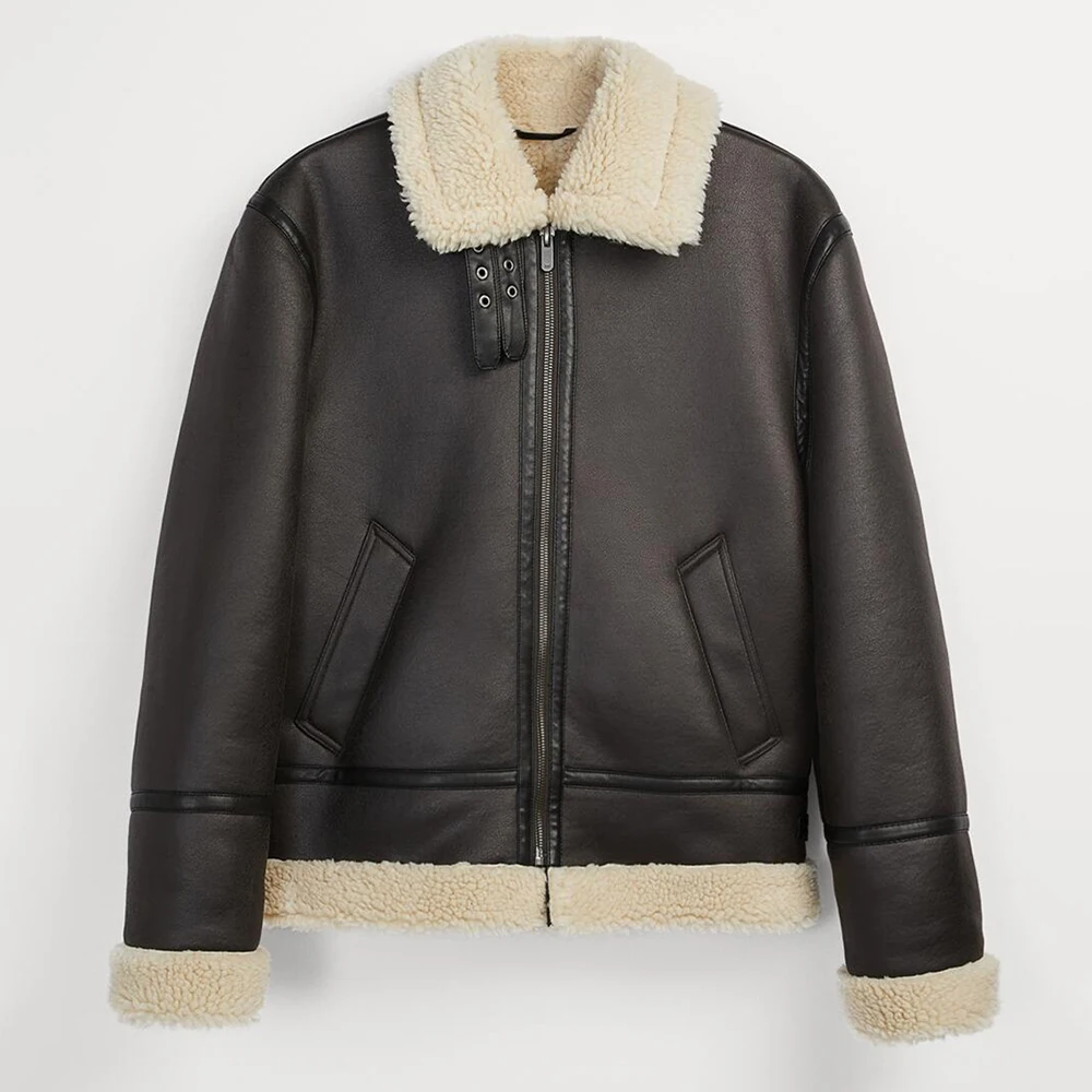 Hearujoy Men Retro Functional Plus Velvet Warm Imitation Leather Jacket Autumn Winter Genderless Casual Simple Comfort Jacket Unisex