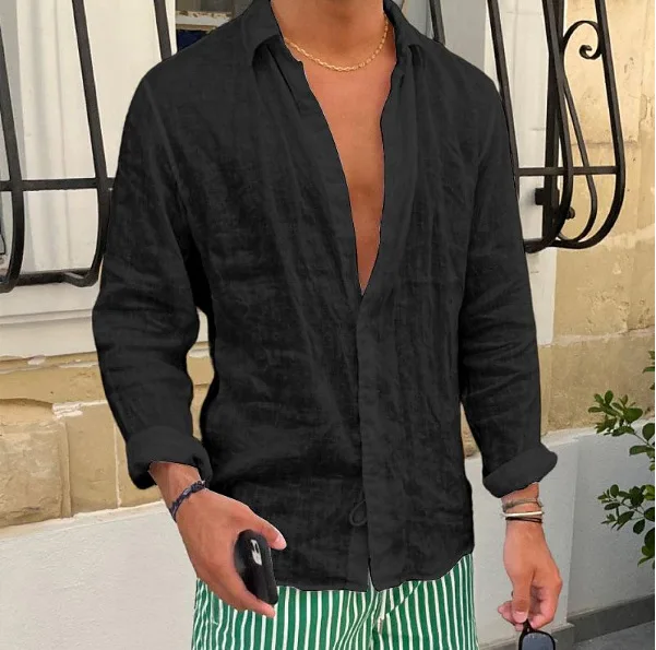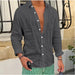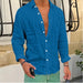 HEARUJOY - Men Seaside Beach Vintage Solid Cardigans Top Spring New Casual Linen Shirts Mens Long Sleeve Button-up Turn-down Collar Shirt