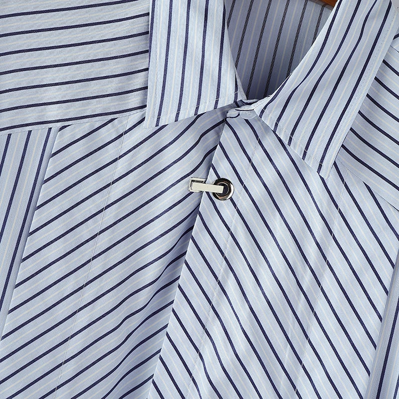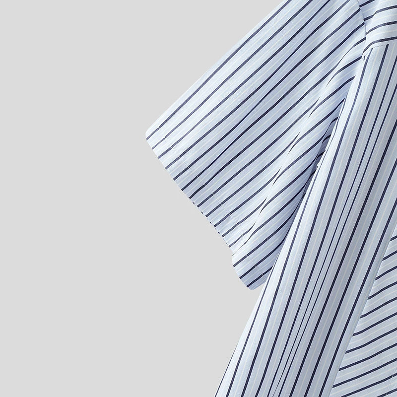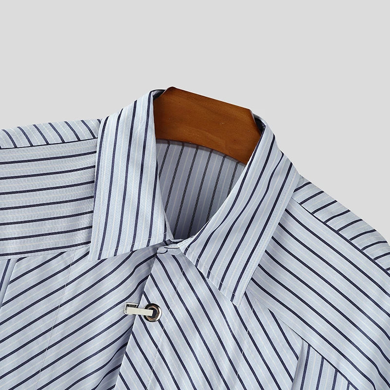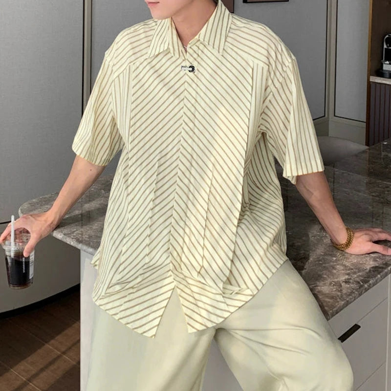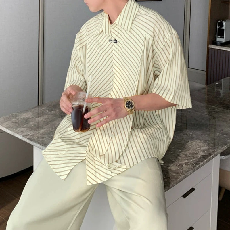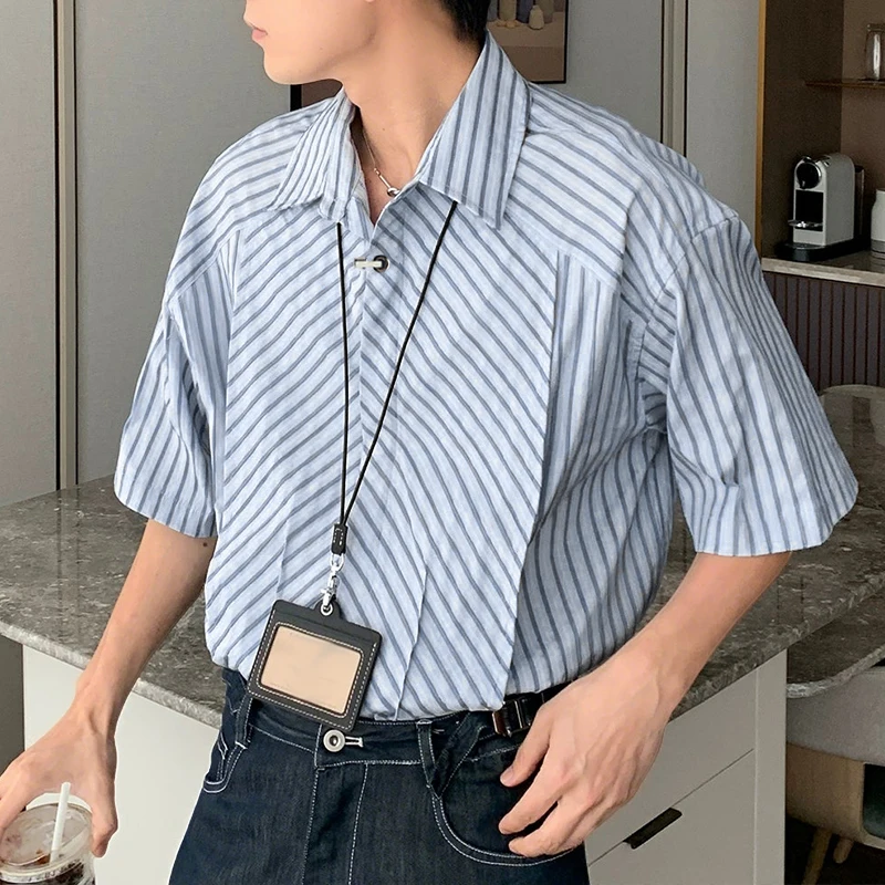 HEARUJOY - Men Shirt Striped Patchwork Lapel Short Sleeve Button Men Clothing Streetwear Korean Style Loose Fashion Casual Tops Men