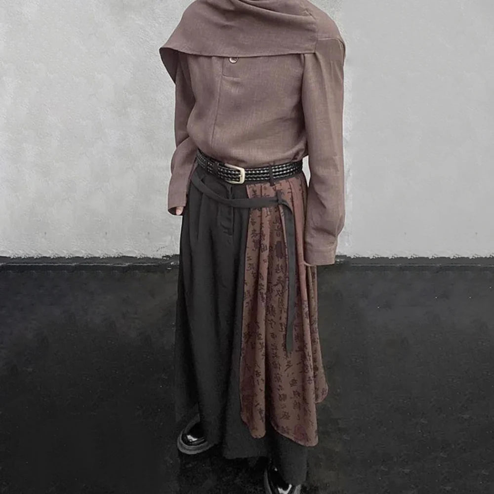 Hearujoy Men Splice Contrasting Color Chinese Calligraphy Casual Wide-Leg Pants 2024 New Genderless Retro Double-Layer Loose Pants Unisex