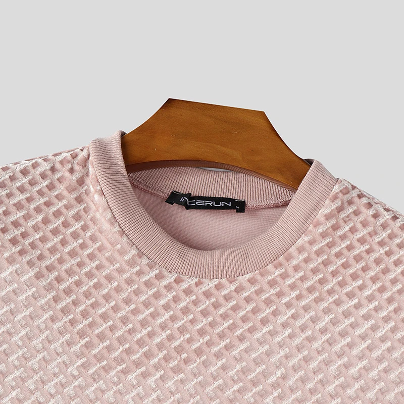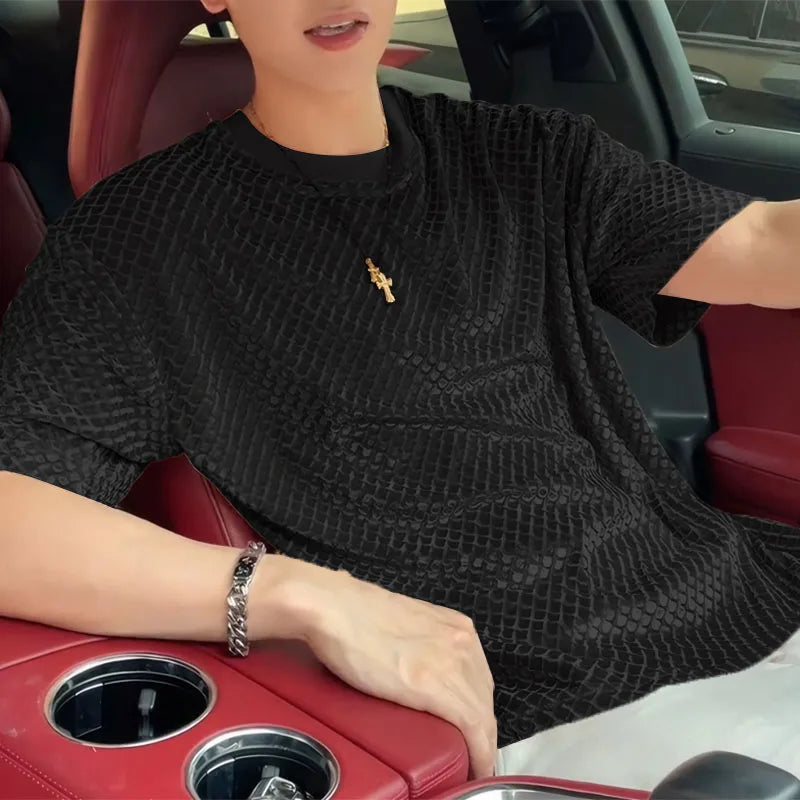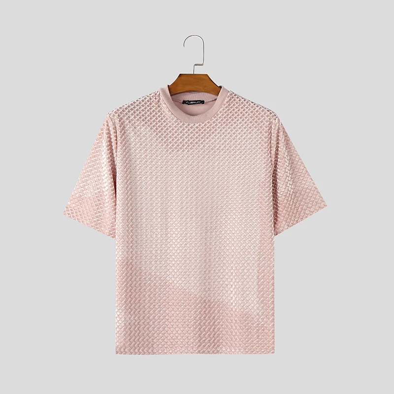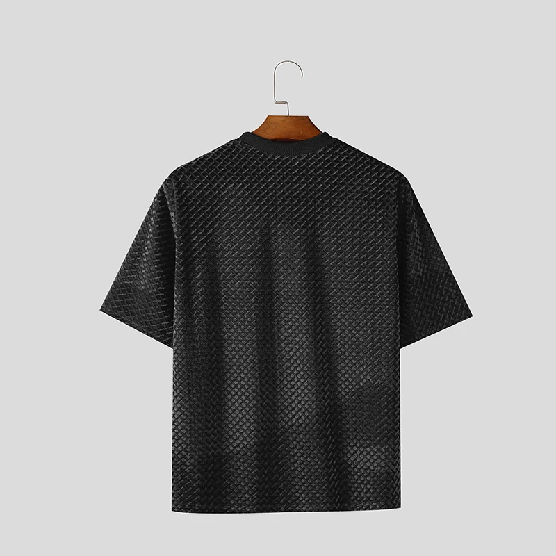 HEARUJOY - Men T Shirt Solid Color Velour O-neck Short Sleeve Summer Men Clothing Streetwear Korean Fashion Male Tee Tops