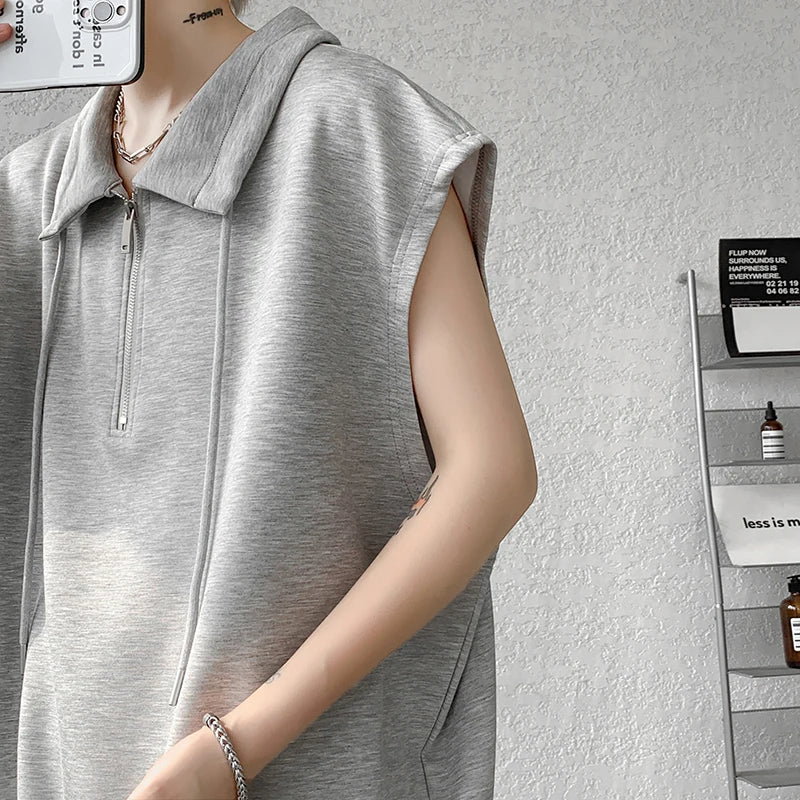 Hearujoy Men Turn-down Collar Tanks Drawstring Vest Summer Simple Loose Breathable Teenager Fashion Sleeveless Casual Tops Plus Size 2XL