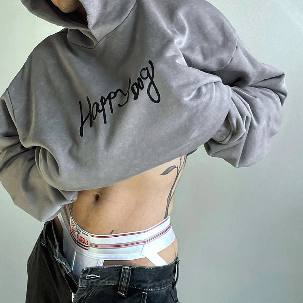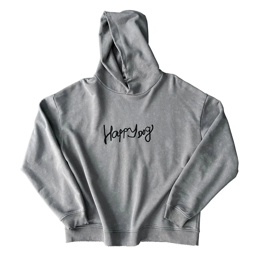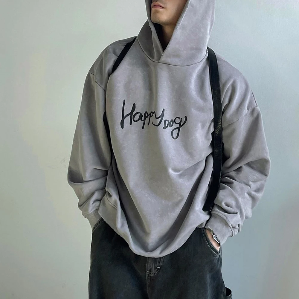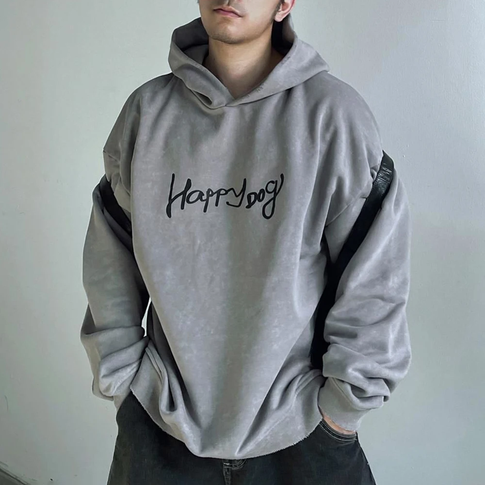 Hearujoy Mens Autumn Letter Printed Hoodie Fashion Distressed Essential Loose Simple Casual Solid Color Graffiti Jacket For Men
