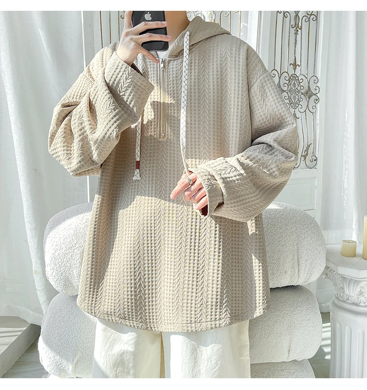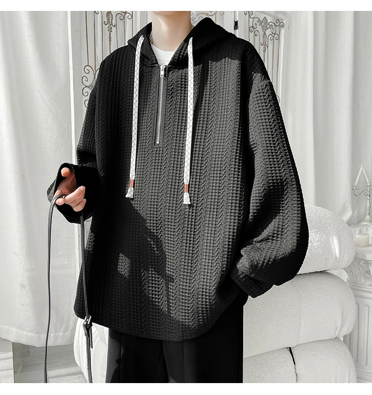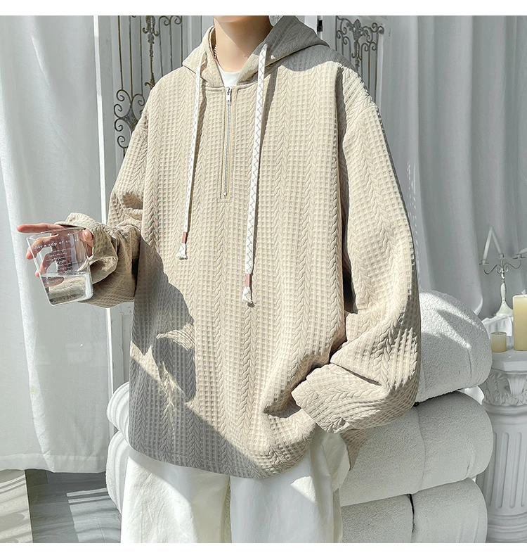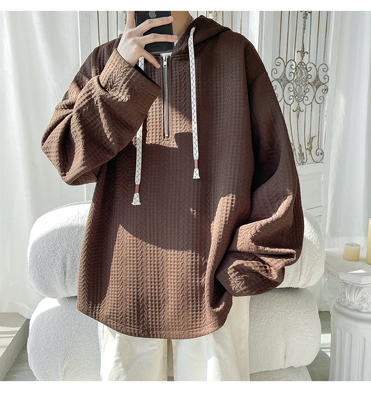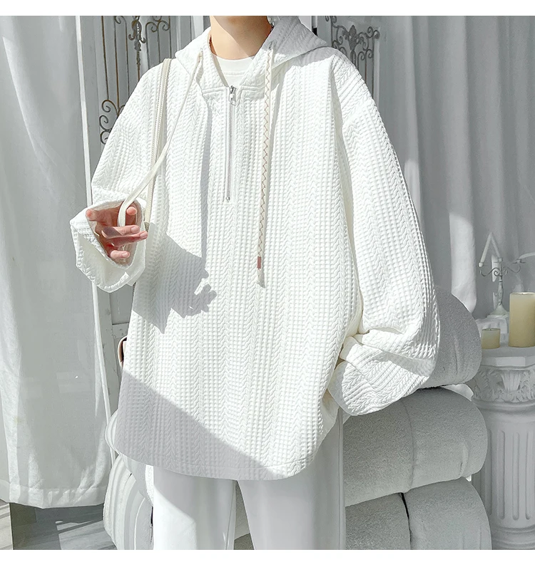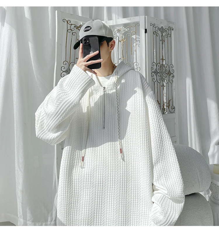 Hearujoy Men's Autumn Long Sleeve Jacquard Hoodie Sweatshirt Fashion Streetwear Casual Men's Loose Breathable Pullover Hoodies 4 Colors