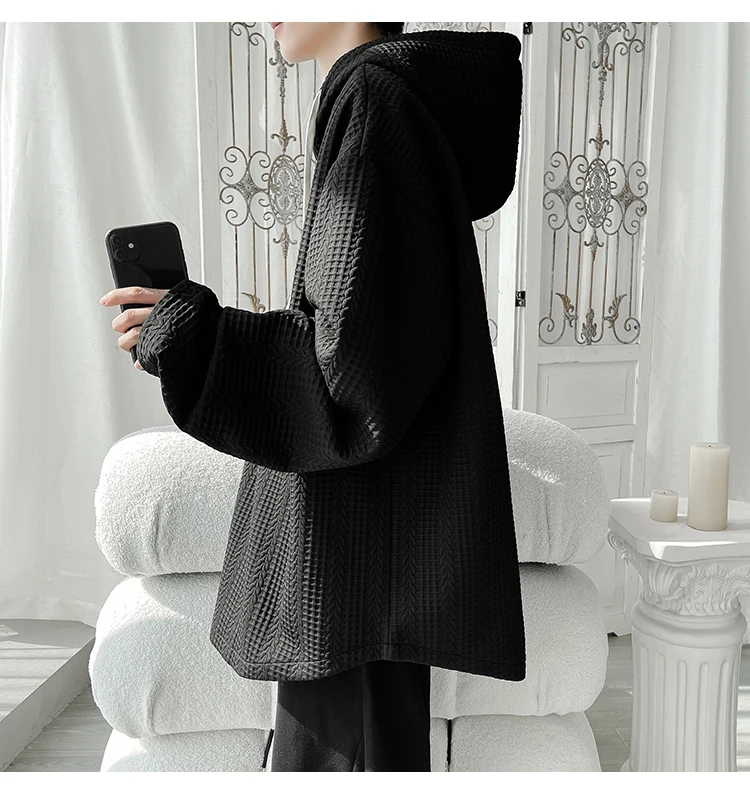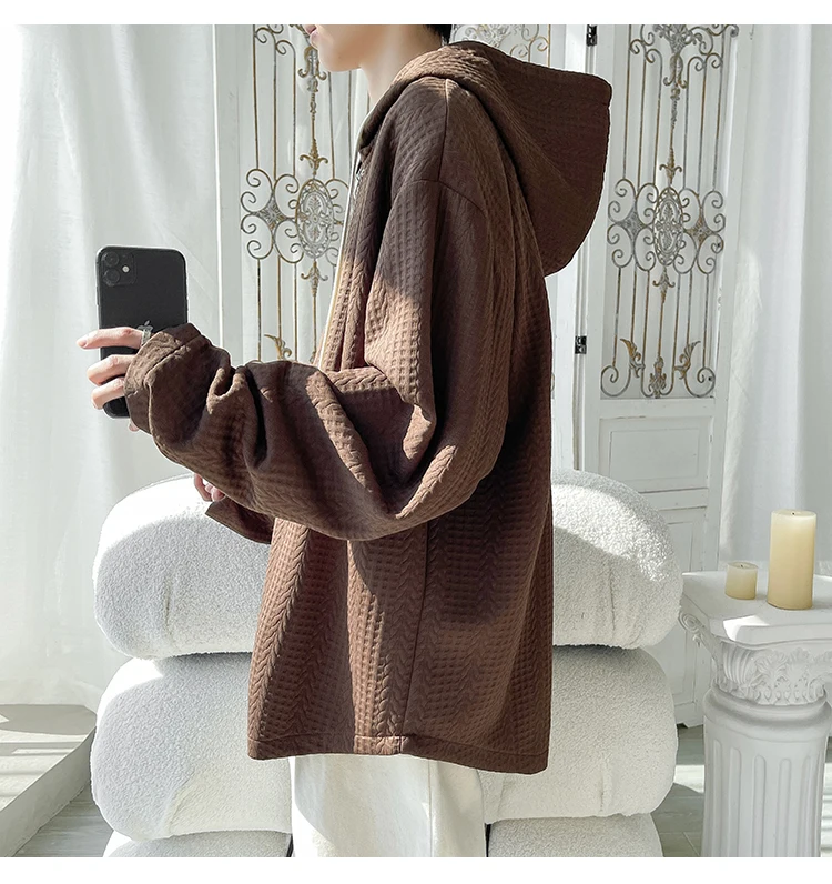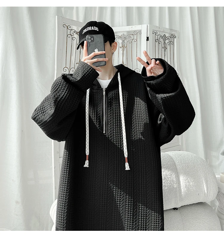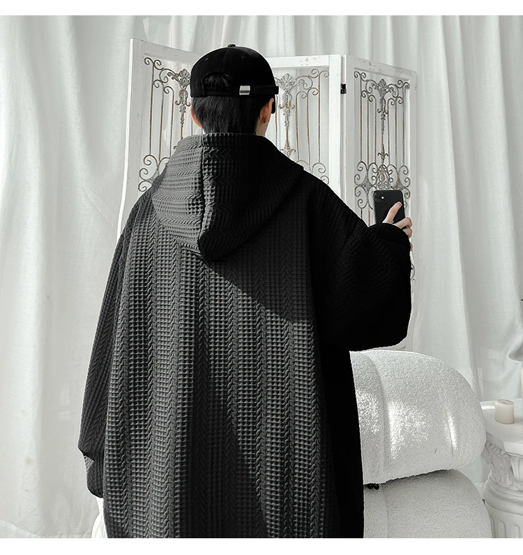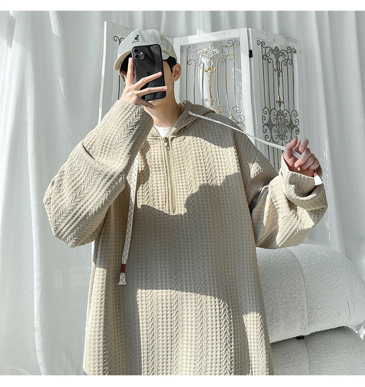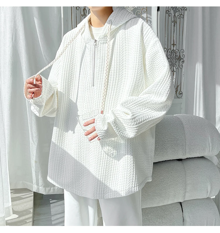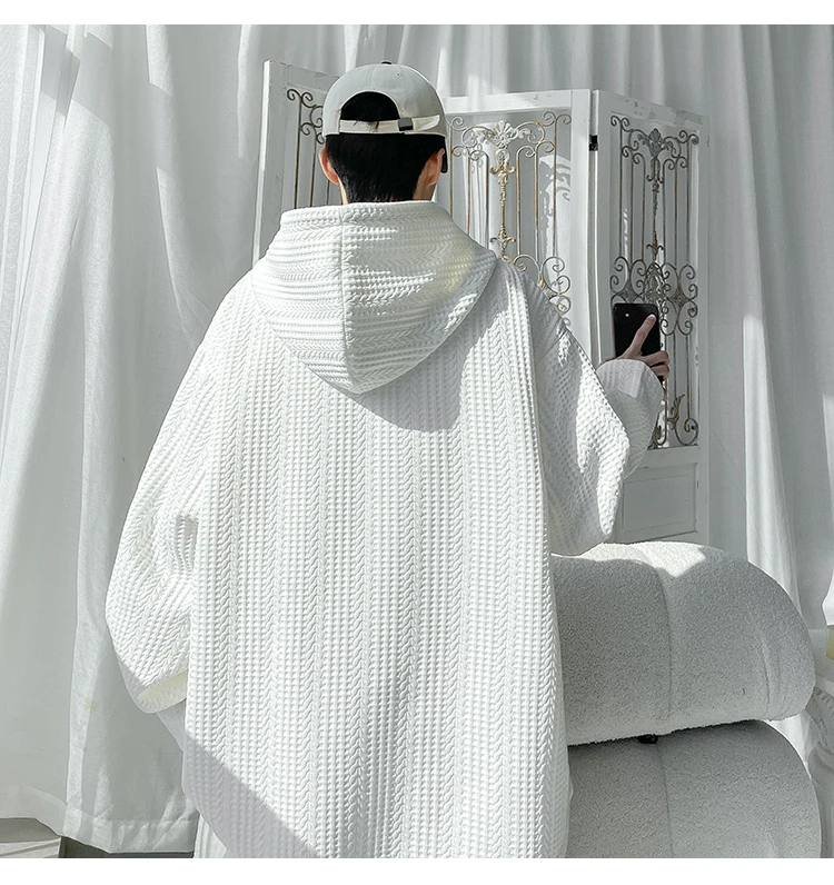 Hearujoy Men's Autumn Long Sleeve Jacquard Hoodie Sweatshirt Fashion Streetwear Casual Men's Loose Breathable Pullover Hoodies 4 Colors