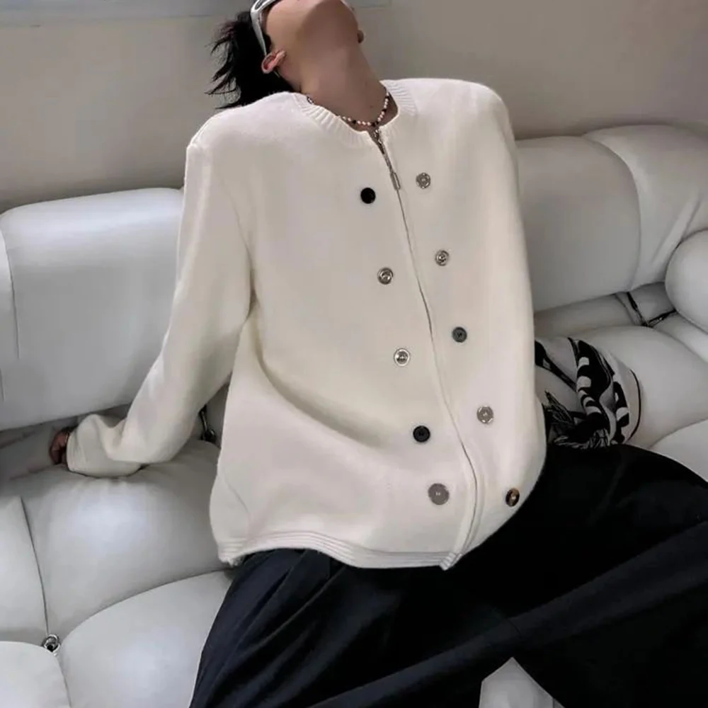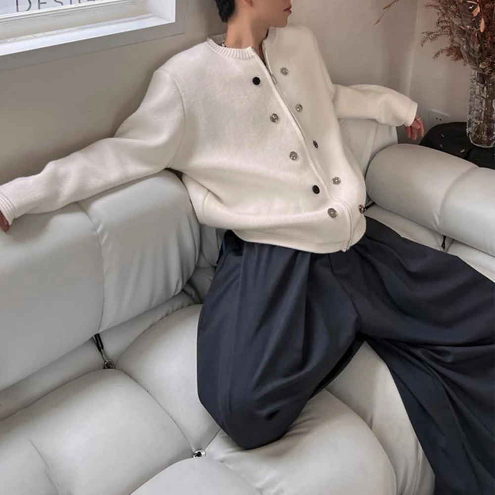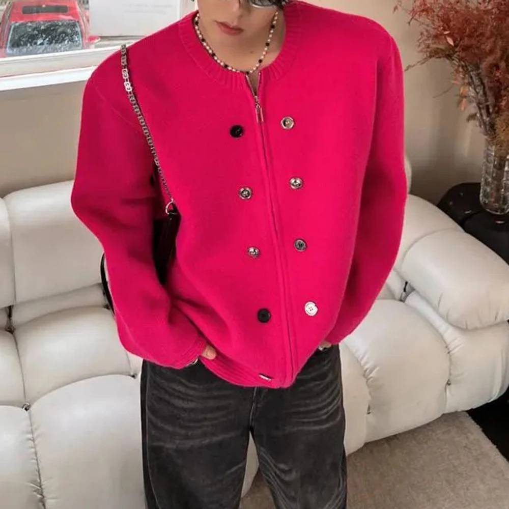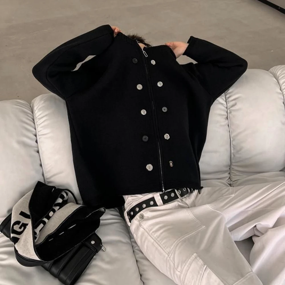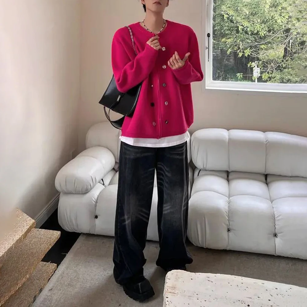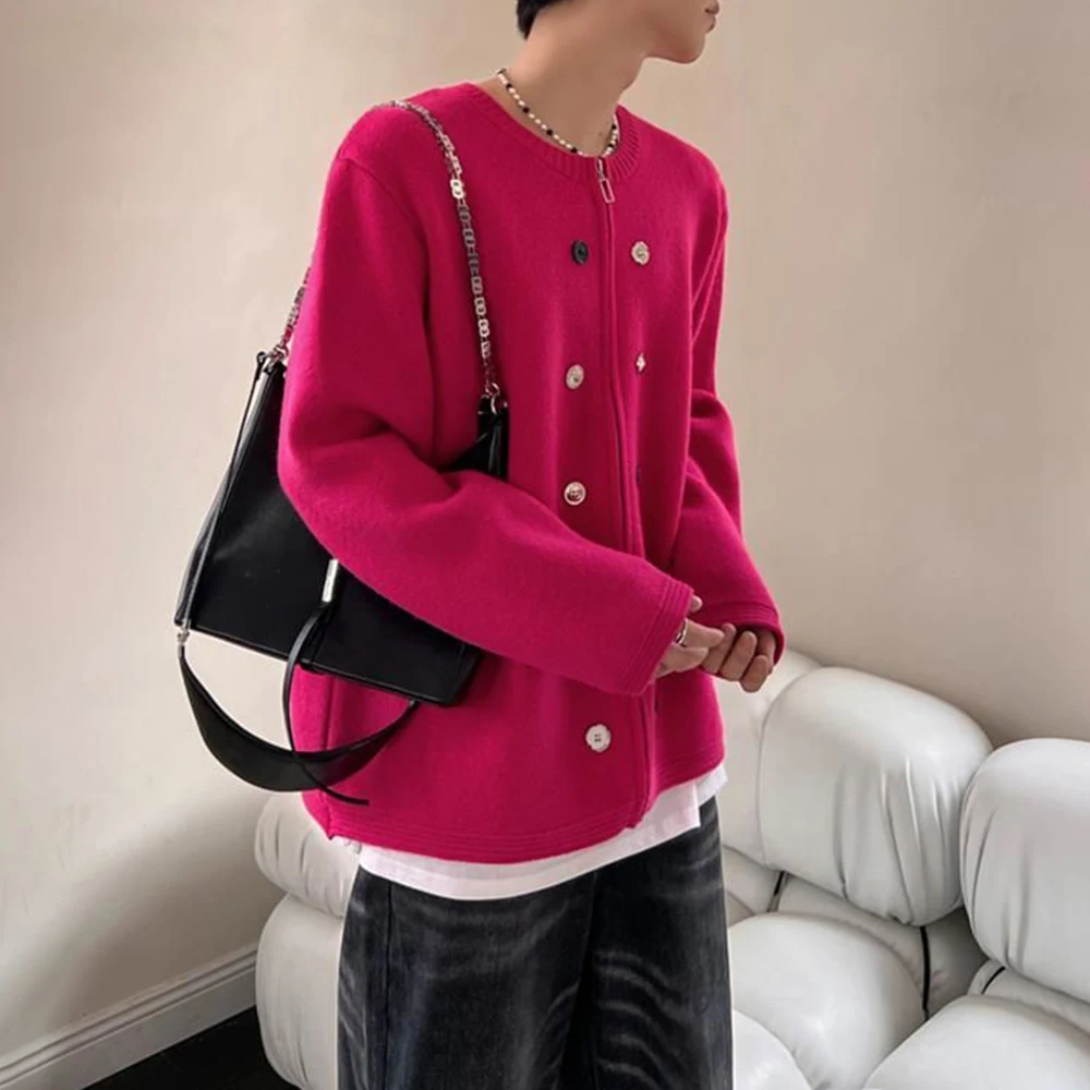 Hearujoy Mens Autumn Winter Niche Y2k Loose Knitted Sweater Essential Genderless Button Decoration Solid Color Casual Simple Sweater