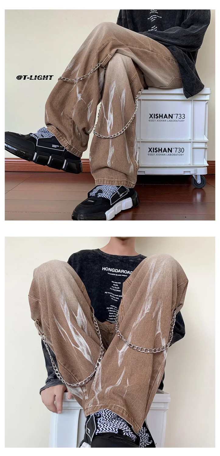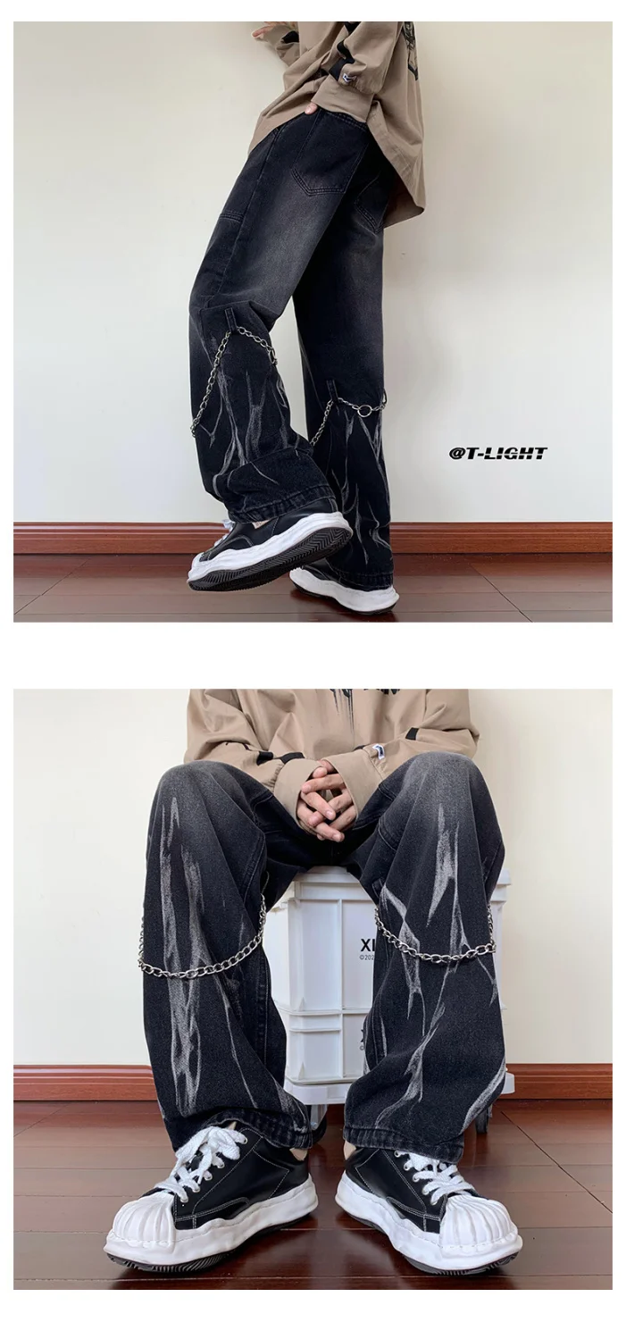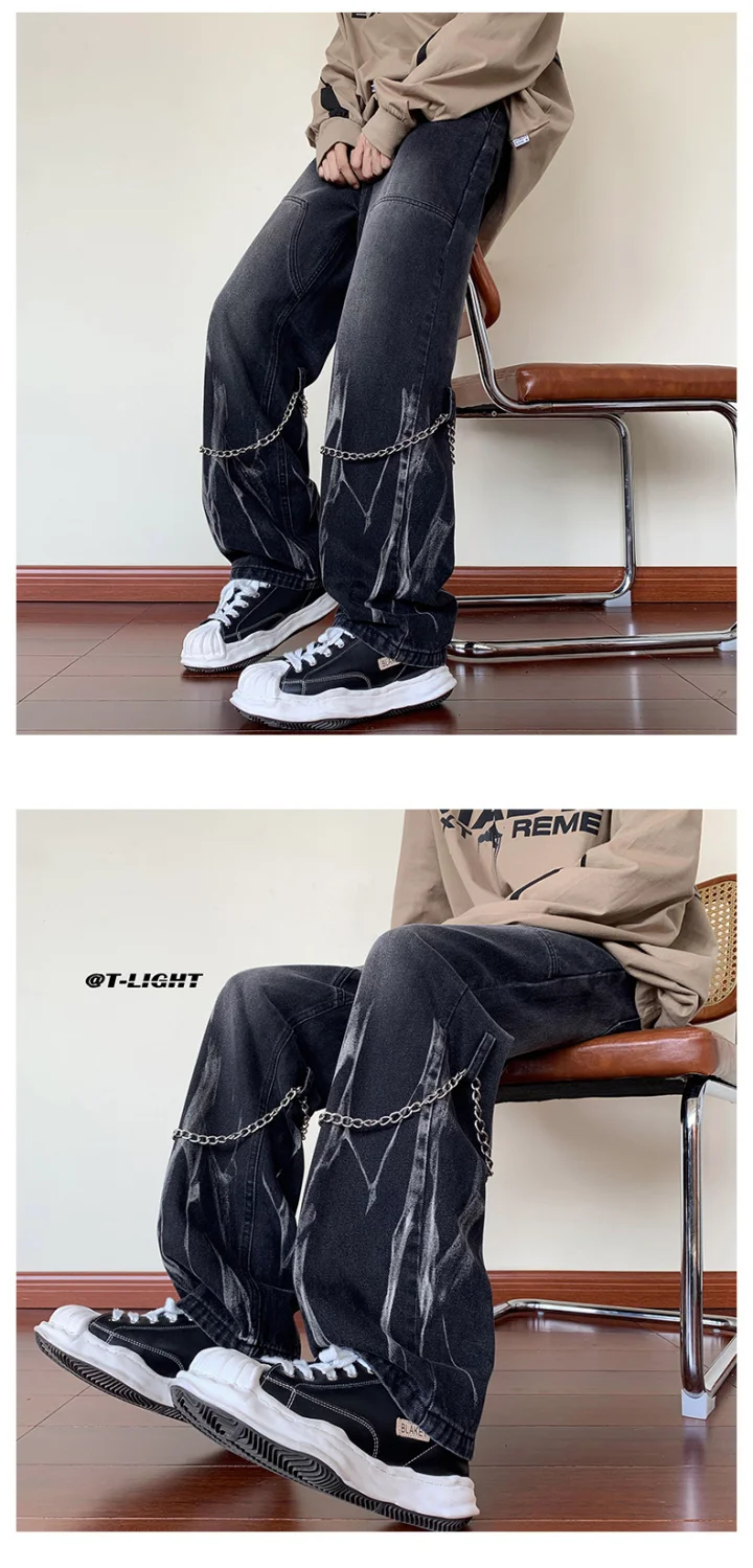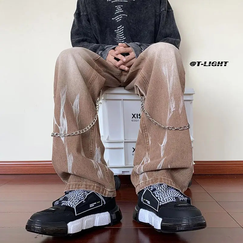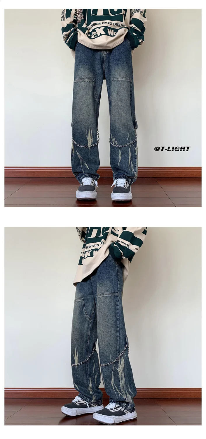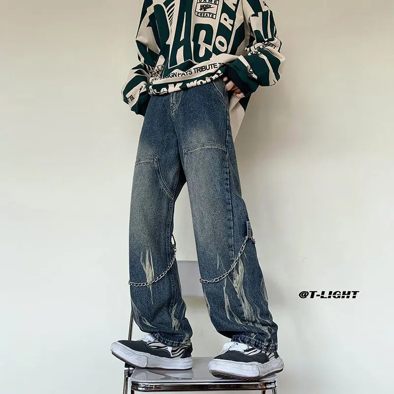 HEARUJOY - Men's Autumn Winter Trendy American Street Jeans Loose Straight-Leg Versatile Wide-Leg