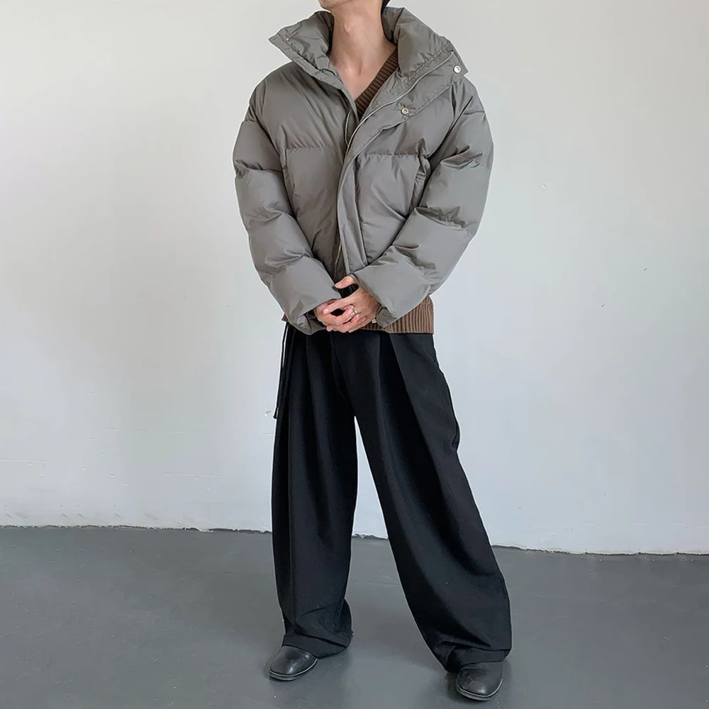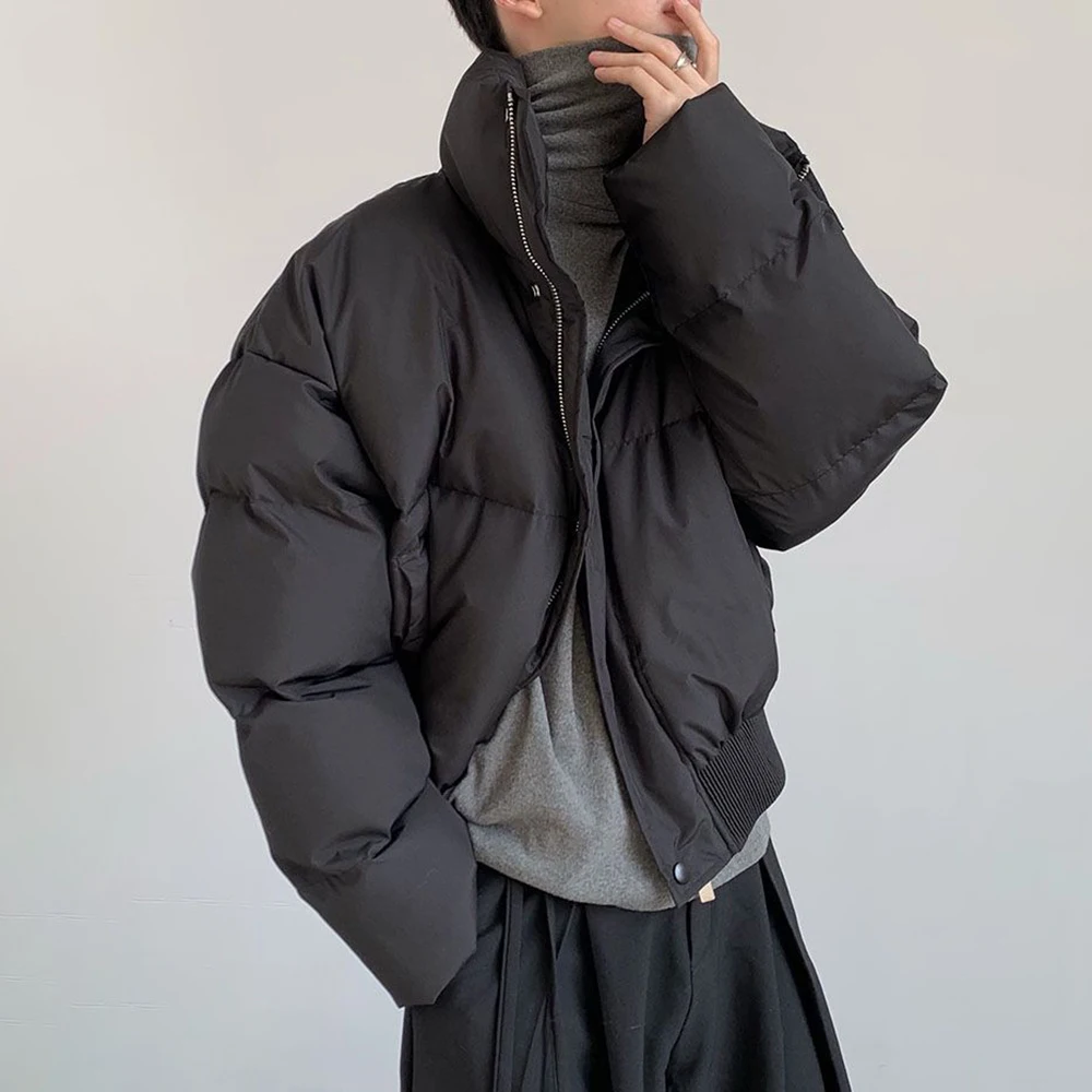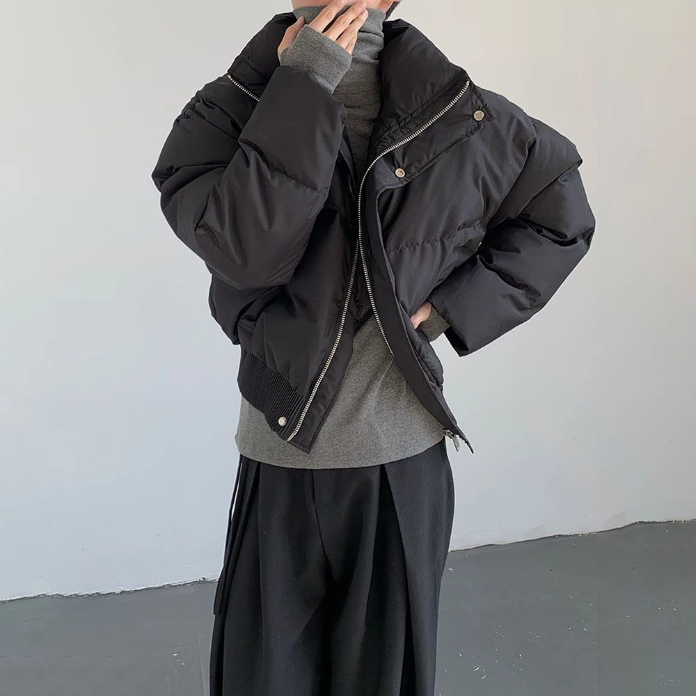 Hearujoy Mens Autumn Winter Y2k High Street Short Stand-Up Collar Warm Thickened Coat Genderless Fashion Trend Loose Casual Coat Unisex