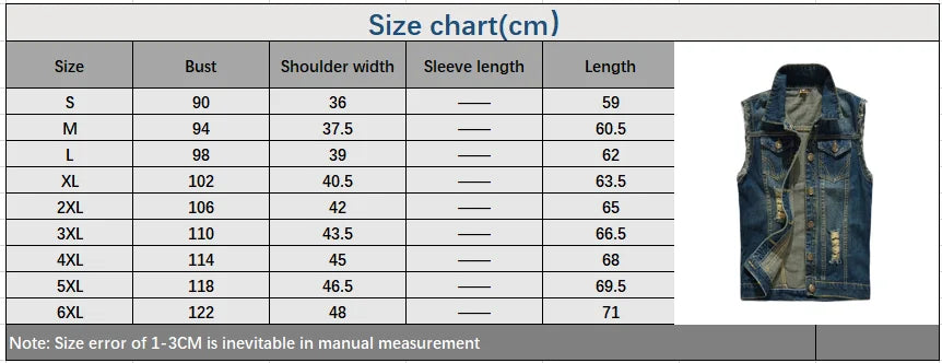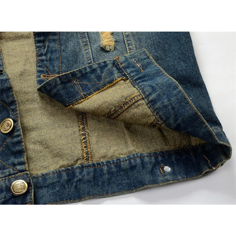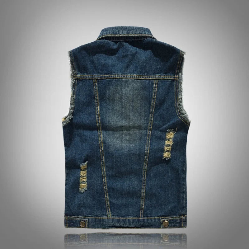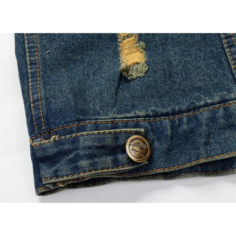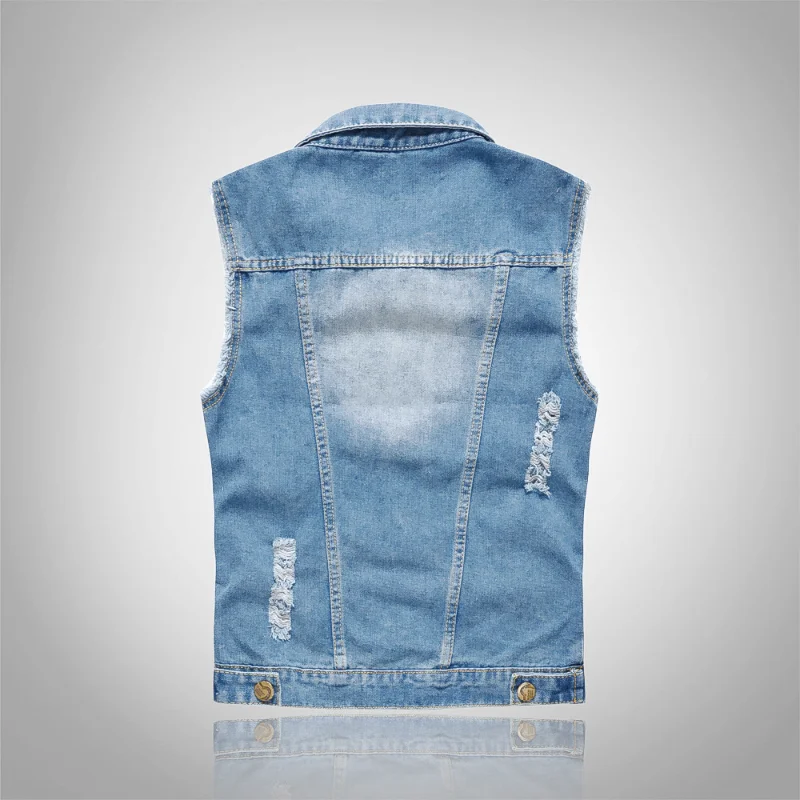 HEARUJOY - Men's Big Size New Slim-fit Denim Vest Vest with Ripped Lapel Single Breasted Denim Vest Coat