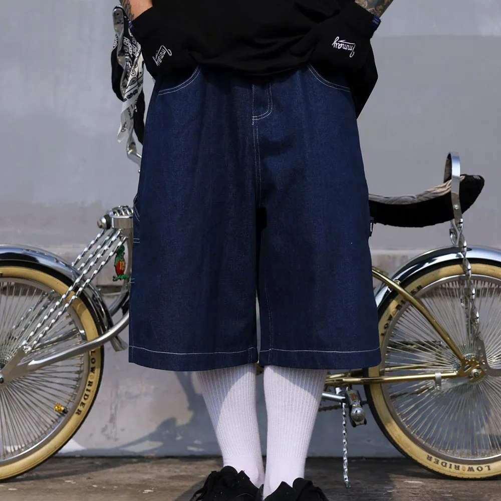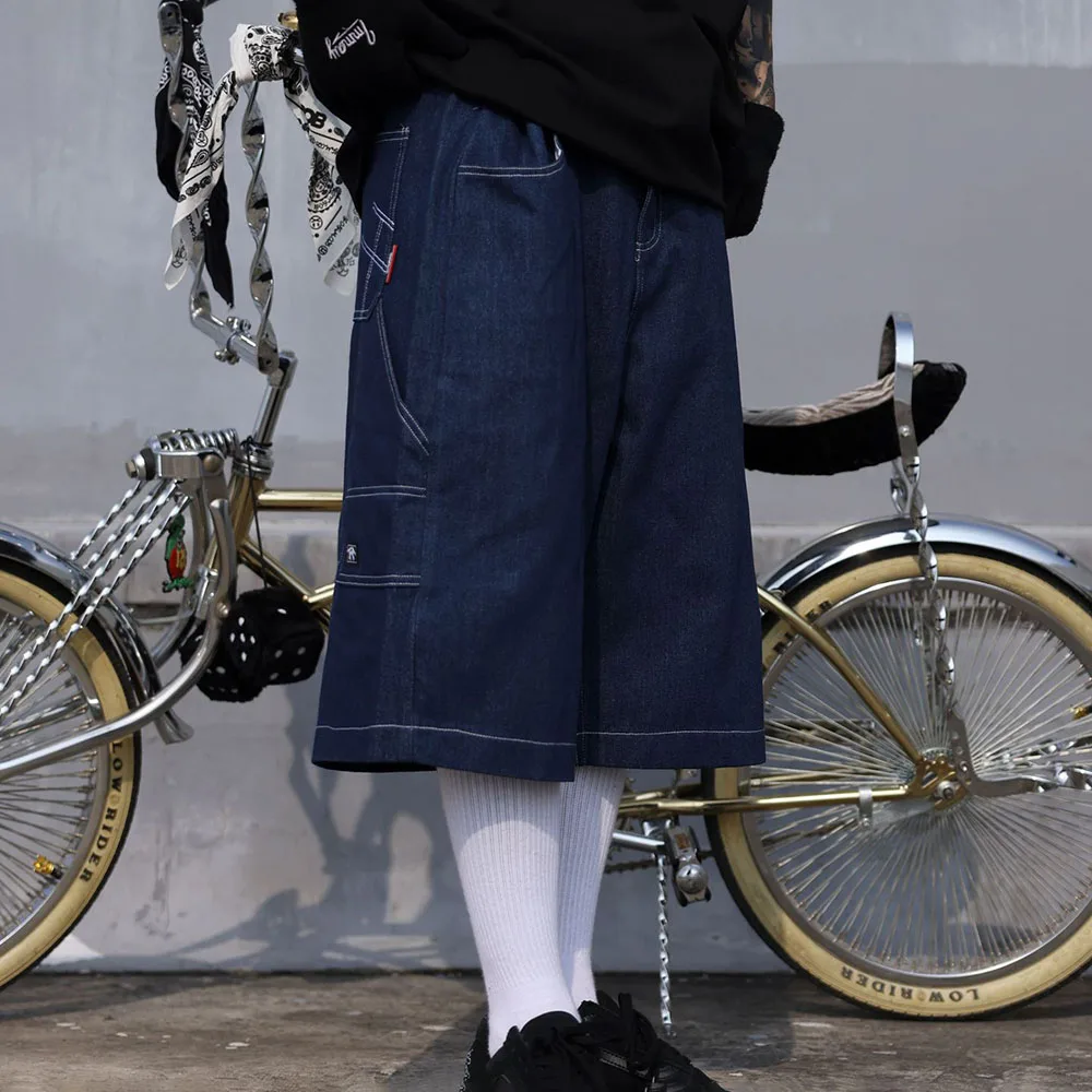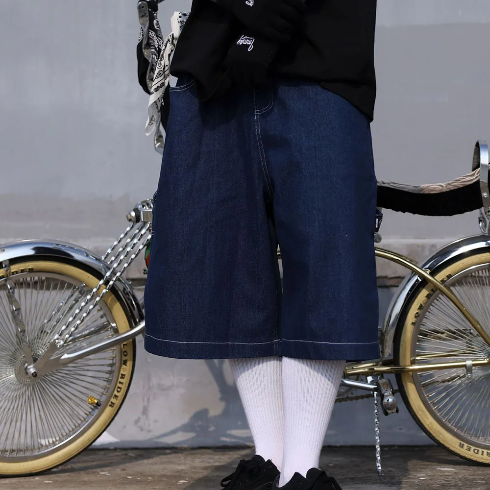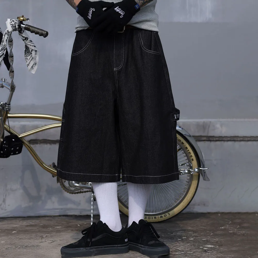 Hearujoy Mens Casual Cropped Pants American Street Retro Hiphop Hiphop Wide Leg Straight Over The Knee Original Color Jeans Summer